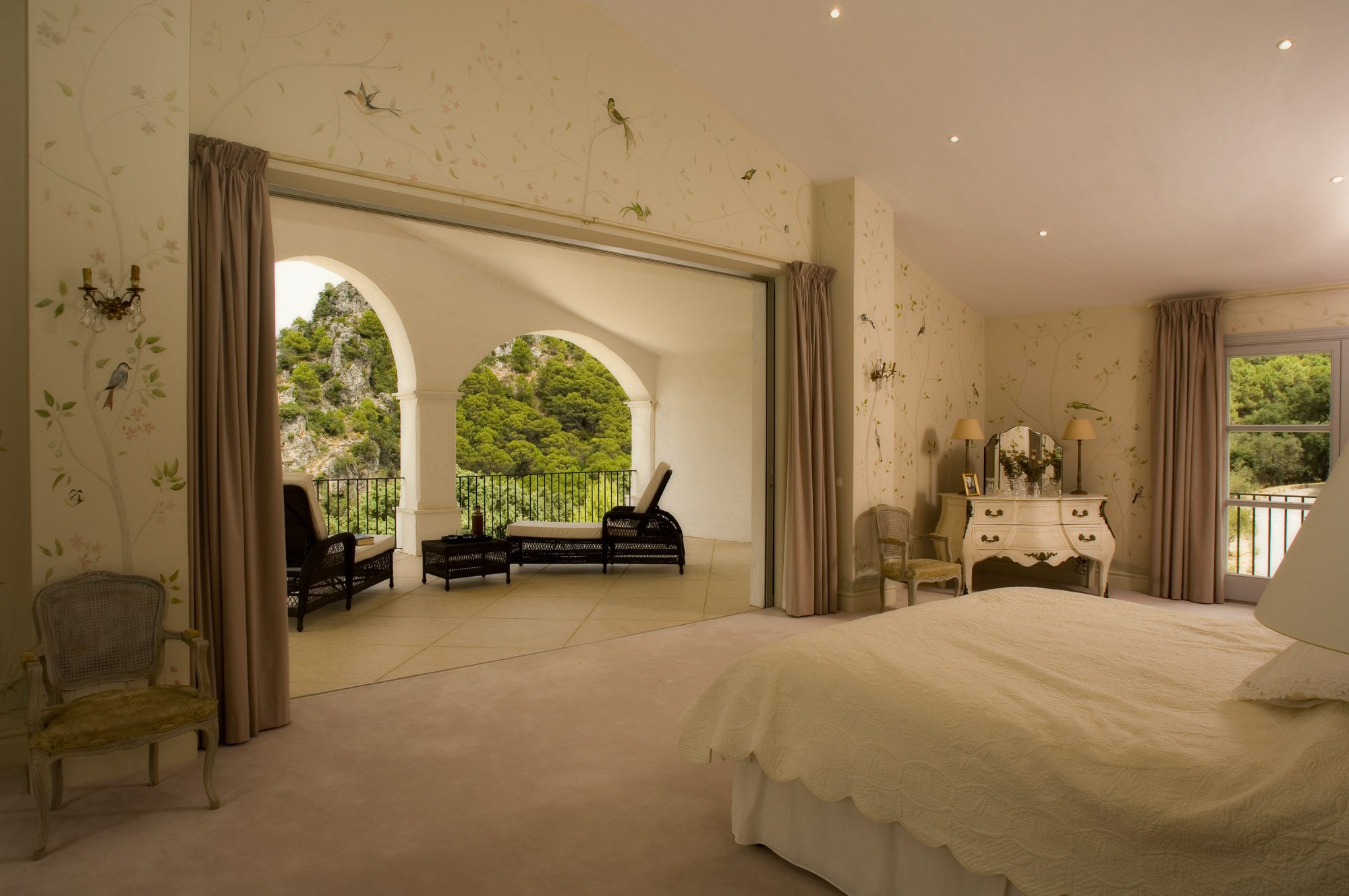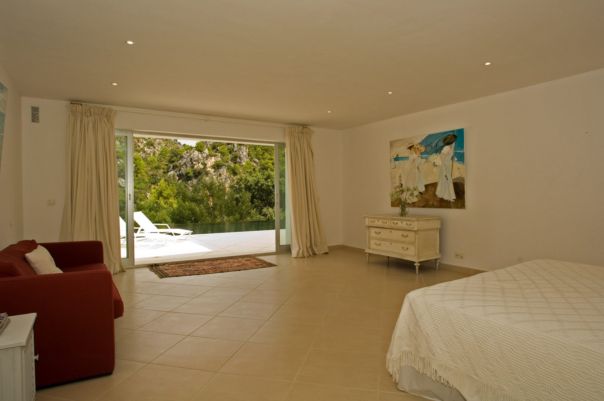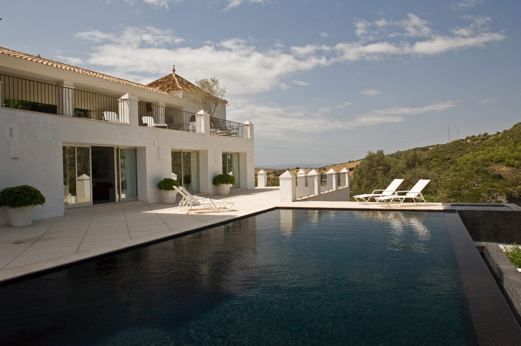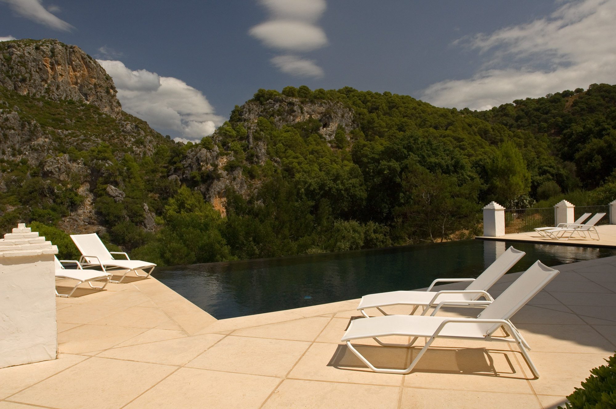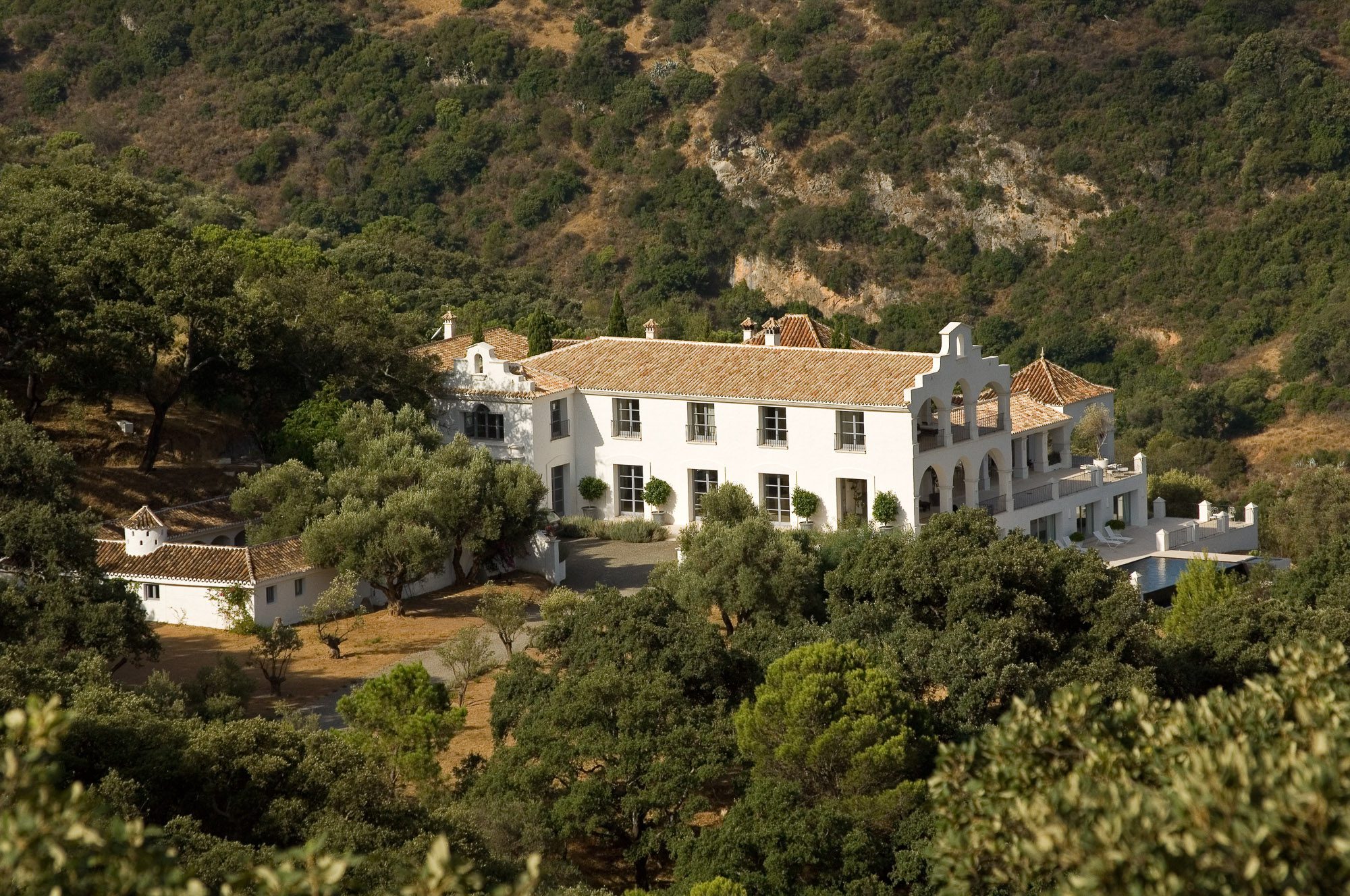 Conveniently located near the ancient white village of Cesares, it’s just a short drive to the nearest beach, several world-class golf courses, and excellent restaurants. The distinctive white main house overlooks a striking black infinity pool, with views of the surrounding olive trees, pines, cork oaks, and mountains. Birdwatchers will appreciate the sighting of eagles, bee-eaters, and golden orioles in the area.