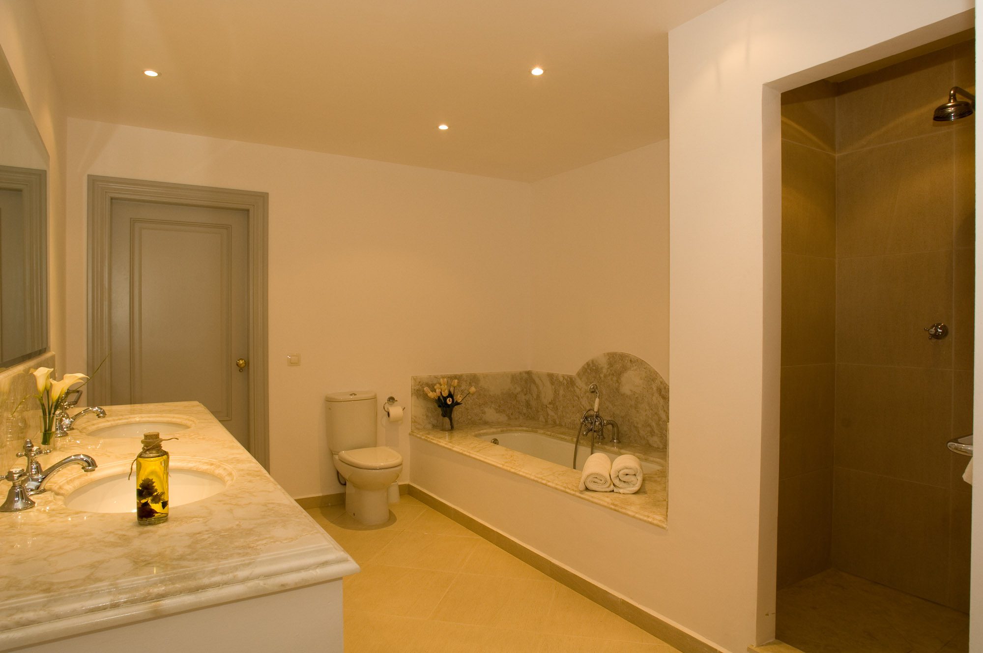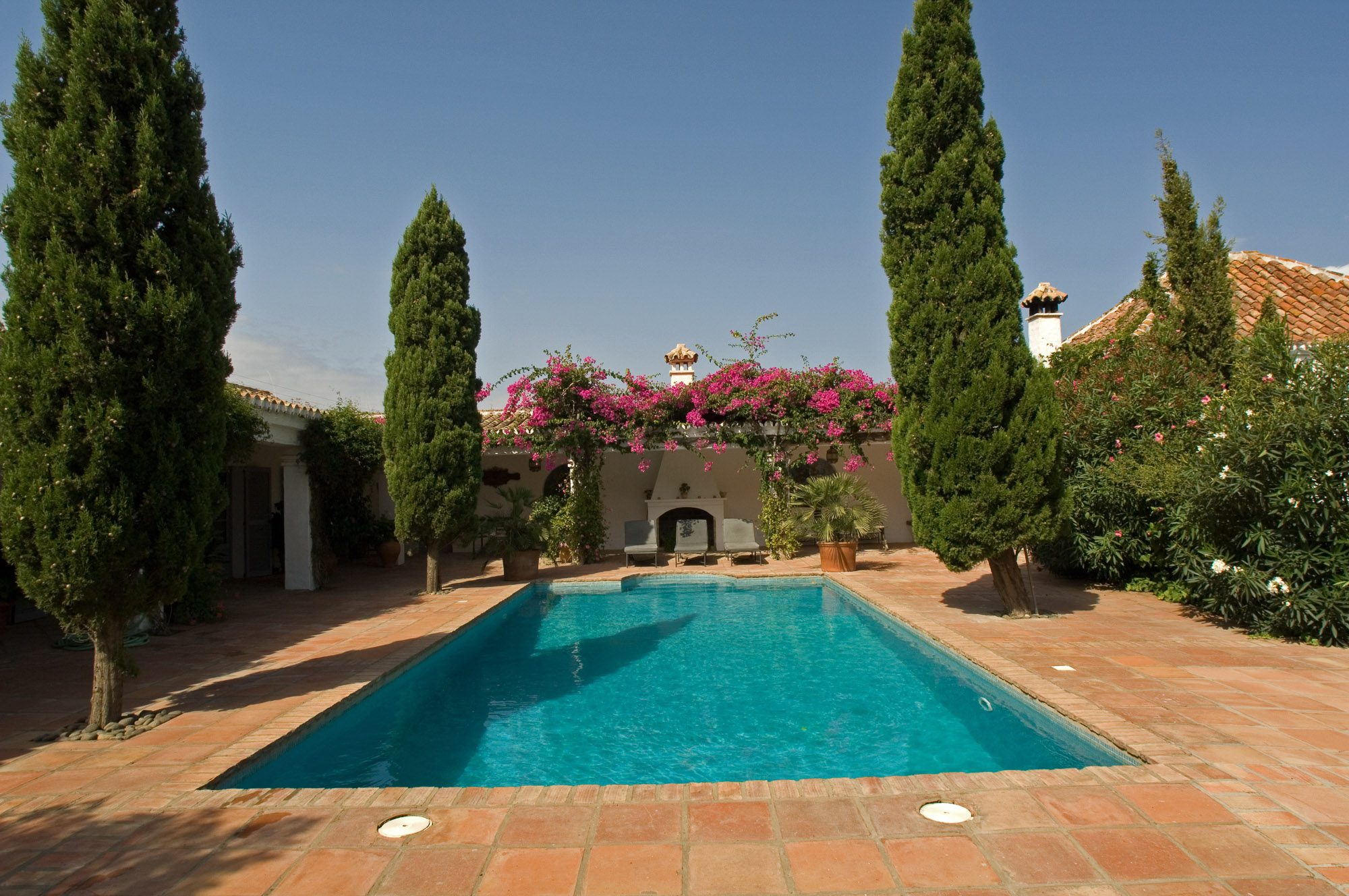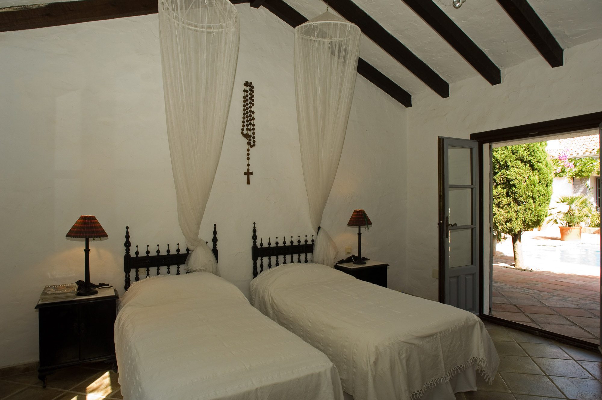 There’s also a games room with a pool table and table tennis. The six spacious bedrooms all have en-suite marble bathrooms; the master bedroom features a large terrace. Two of the cottages are located near the main house, while the other two are approximately 1 km away down a private road. These secluded cottages are ideal for guests seeking a bit of extra privacy. Each of the four cottages has two double bedrooms; three also have sitting and dining rooms and kitchens. One cottage, in particular, retains many original rustic features, and the two furthest away each have a private dining terrace and swimming pool.