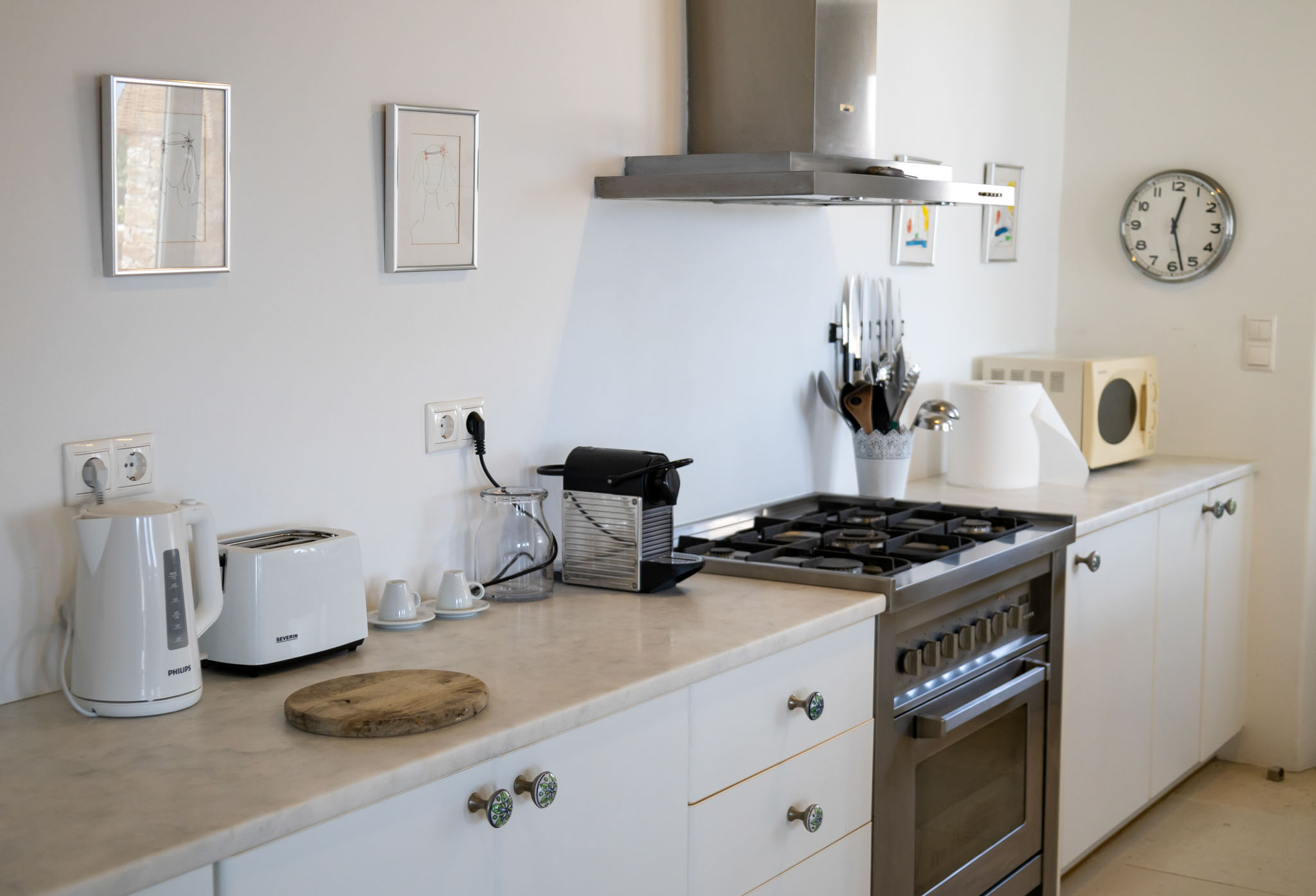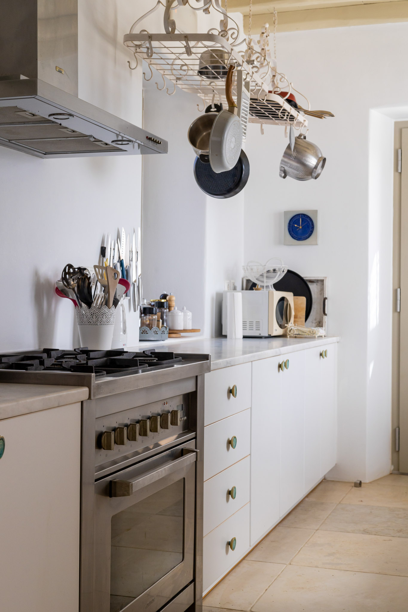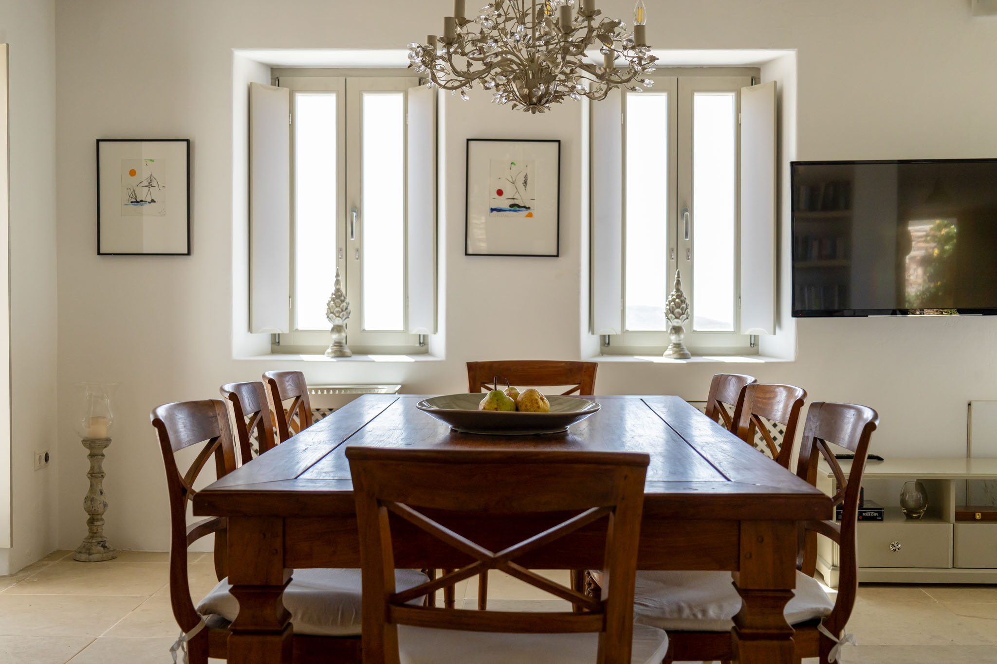 Each villa spans three floors, featuring spacious living and dining areas and open-plan kitchens that encourage a relaxed, sociable atmosphere. Every room opens onto a private terrace, allowing light and sea breezes to flow freely throughout. The décor combines comfortable furnishings and refined details, creating a welcoming ambiance that feels effortlessly luxurious. The Guest House provides additional privacy, with one double bedroom, a living room with two single sofa beds, and a fully equipped kitchenette, perfect for couples or small families.