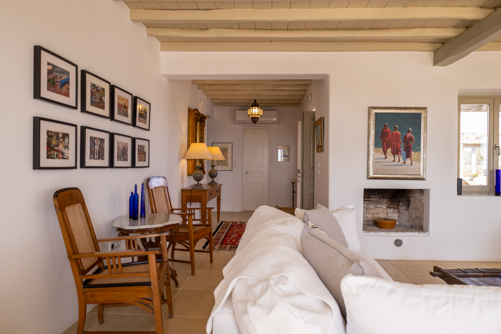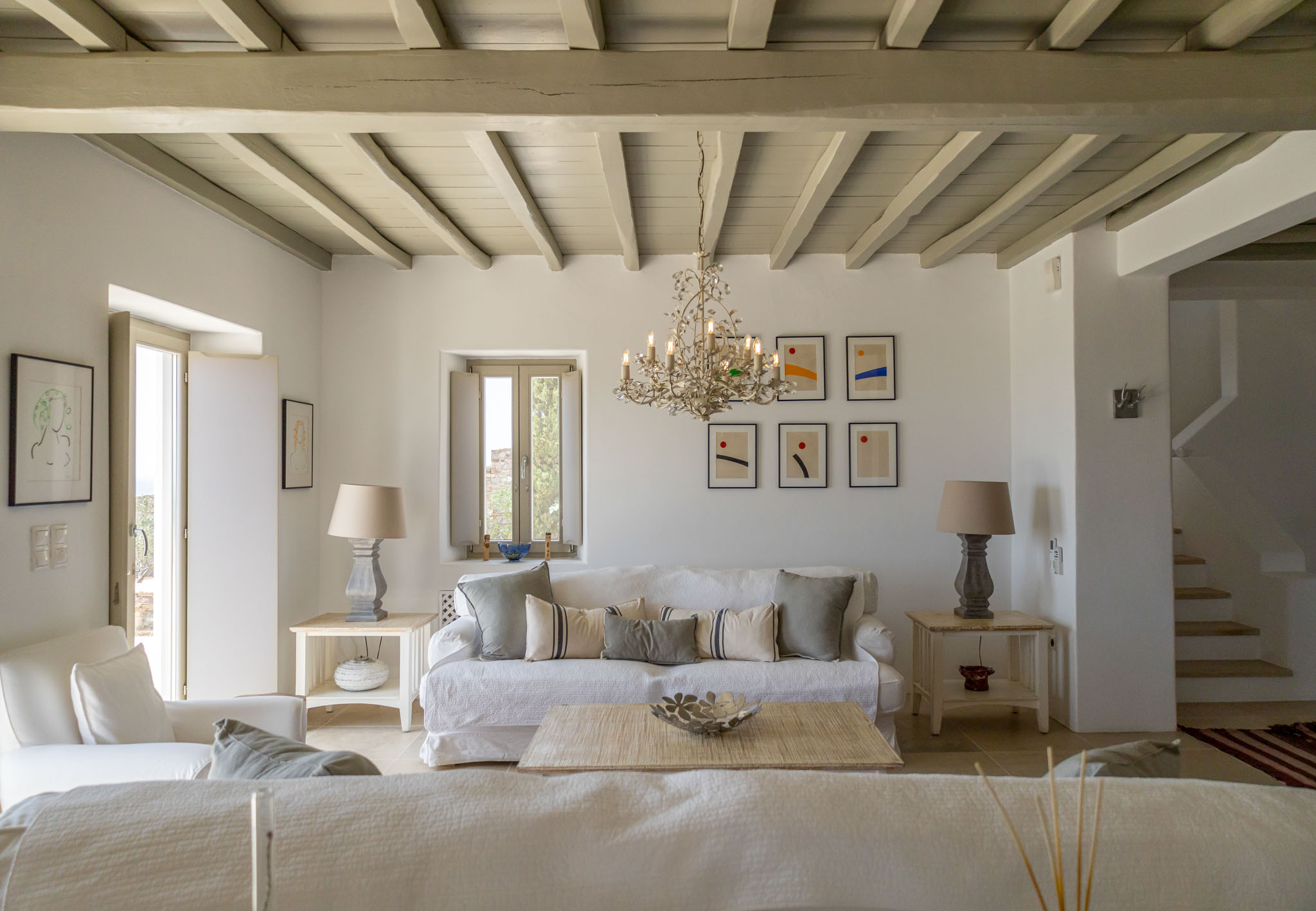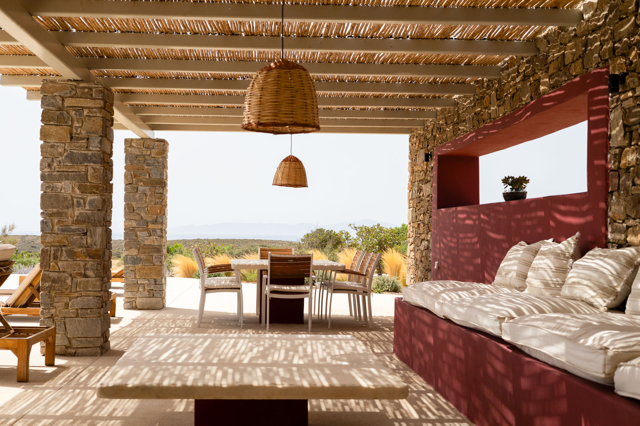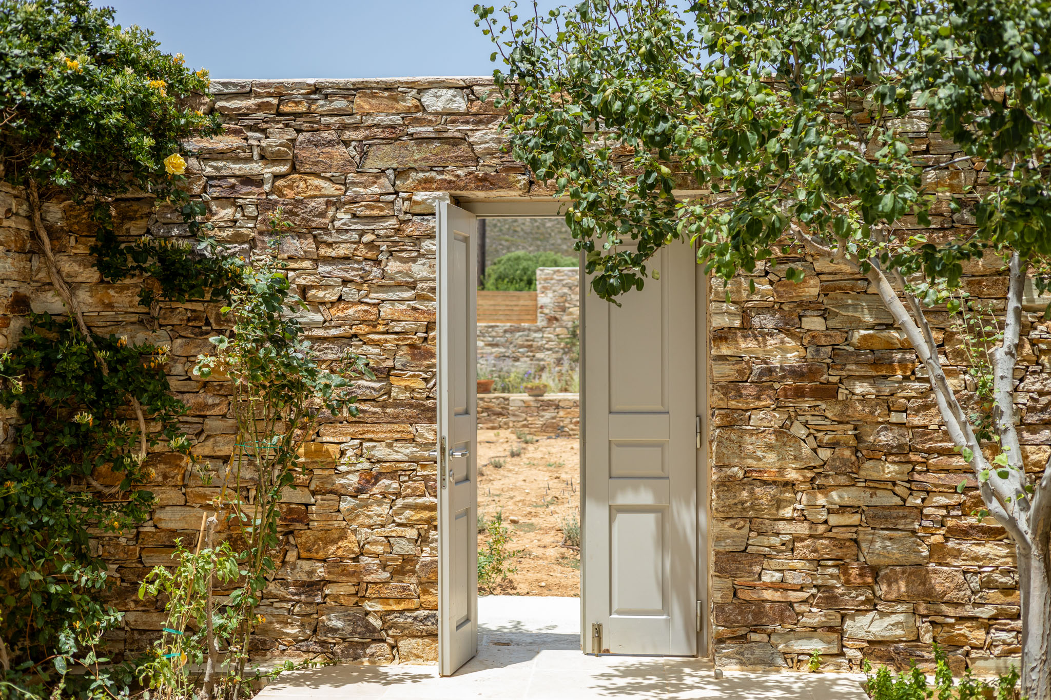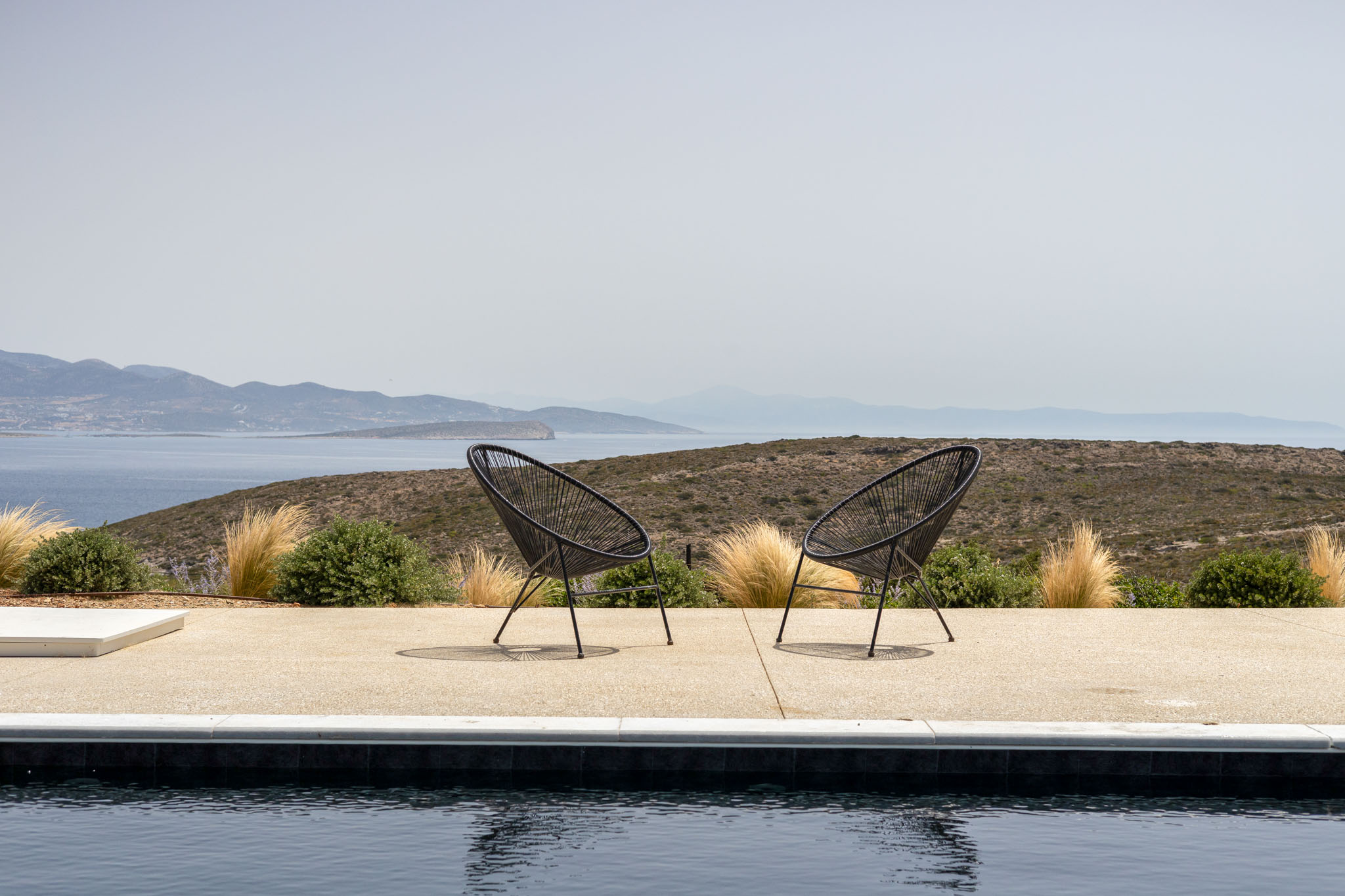 The infinity pool and sea views offer a stunning backdrop for sun-drenched days and golden island sunsets. Surrounded by natural vegetation and panoramic views, the estate’s grounds lead directly to two secluded beaches, where guests can swim, snorkel, or simply enjoy the gentle rhythm of the Aegean.