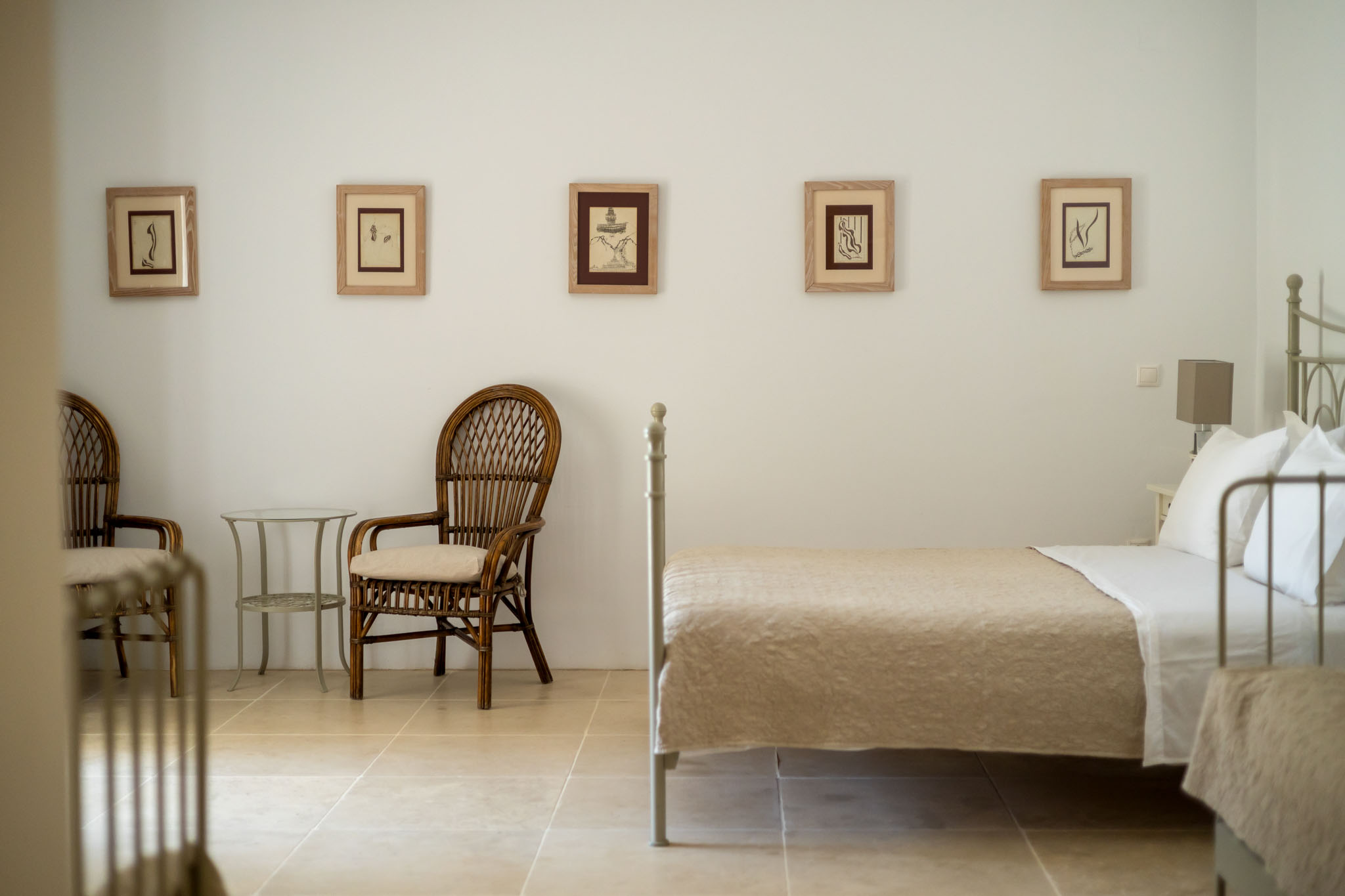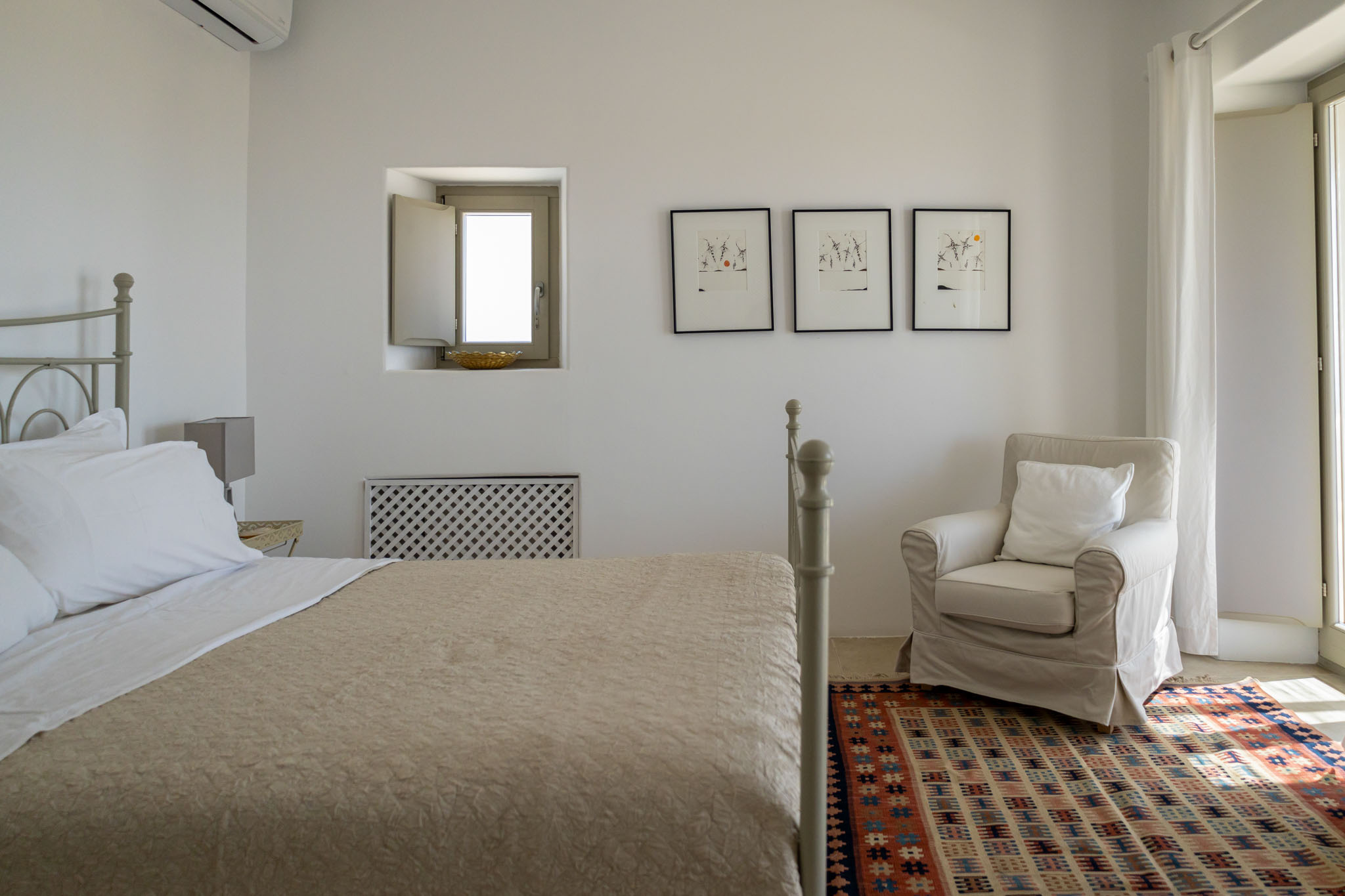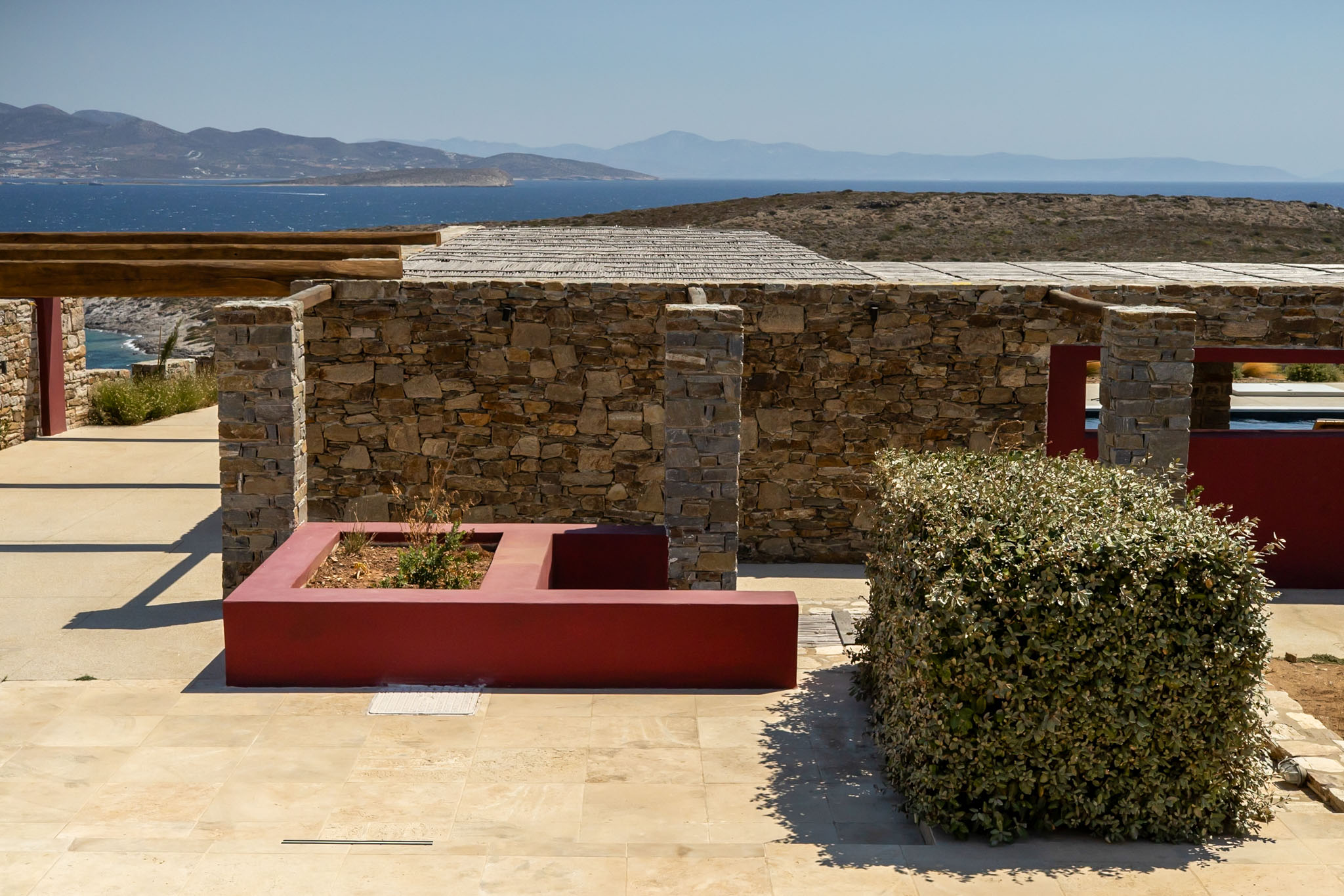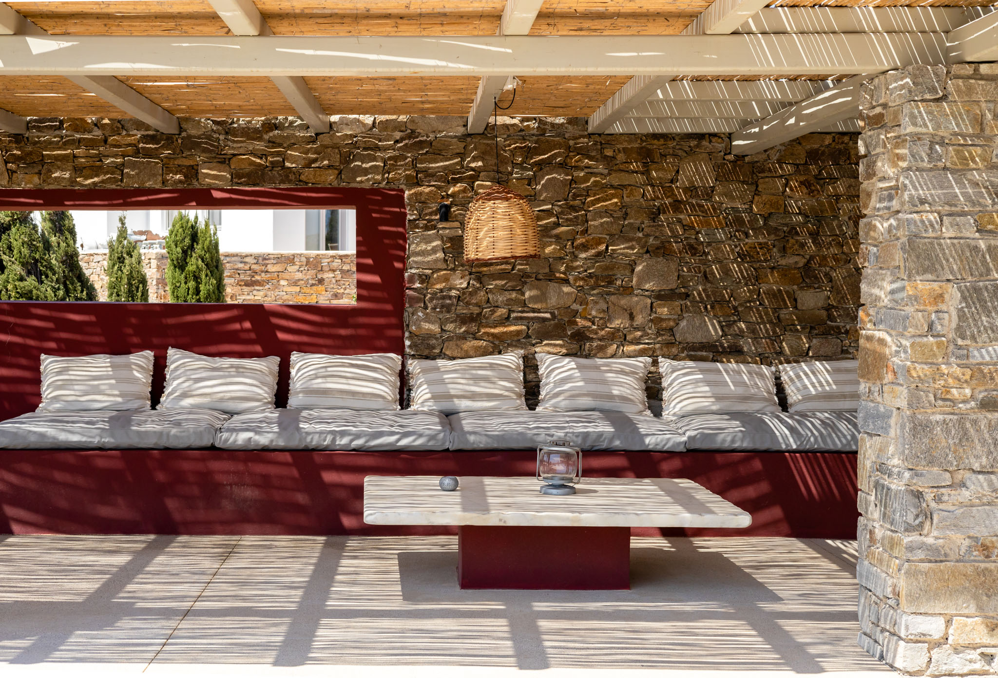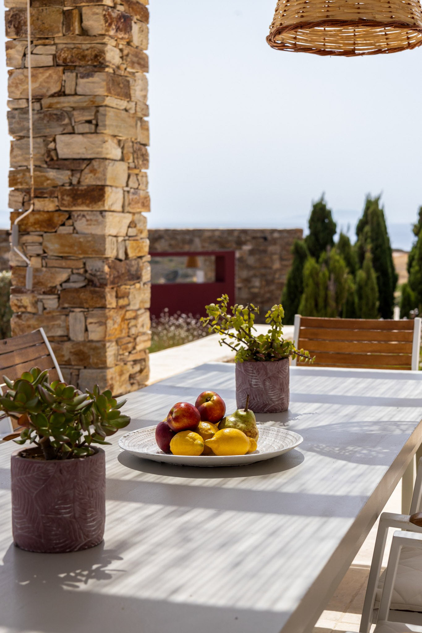 The infinity pool and sea views offer a stunning backdrop for sun-drenched days and golden island sunsets. Surrounded by natural vegetation and panoramic views, the estate’s grounds lead directly to two secluded beaches, where guests can swim, snorkel, or simply enjoy the gentle rhythm of the Aegean.