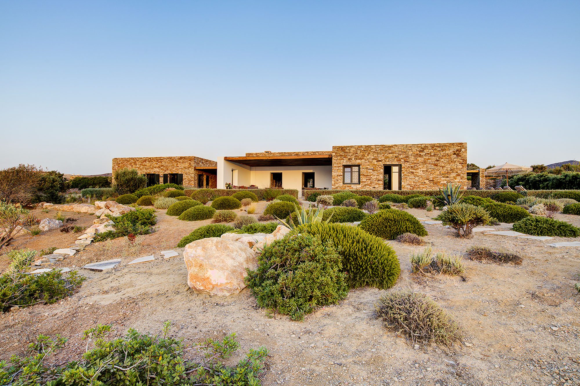 A recently built, honeyed-stone house, Villa Anthea captures the understated, Bohemian chic that draws visitors to tiny Antiparos.