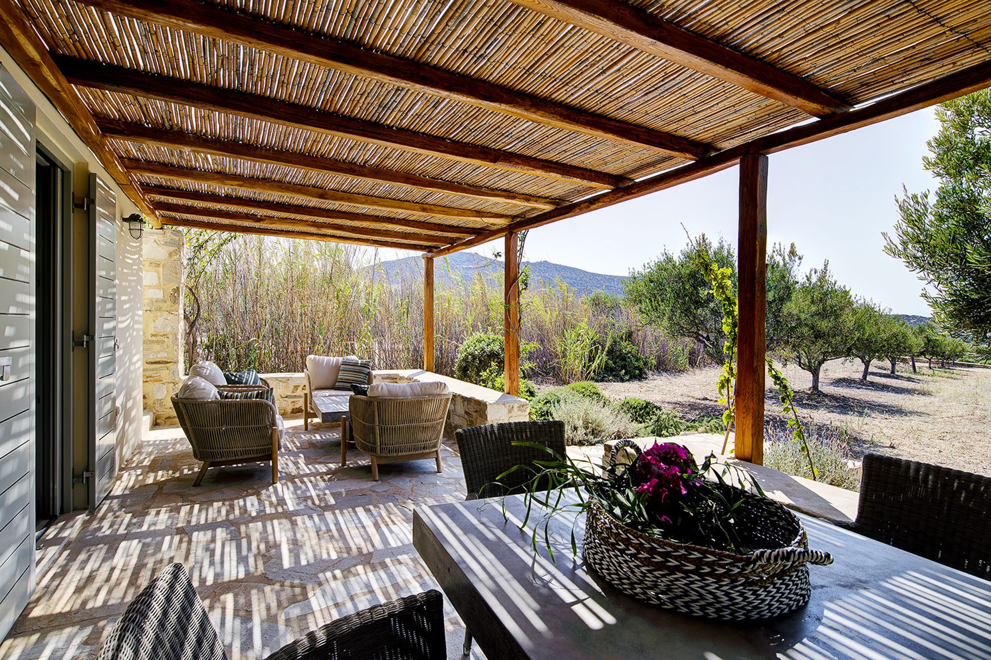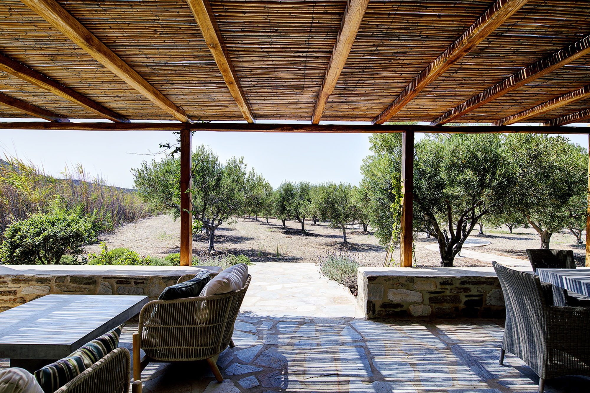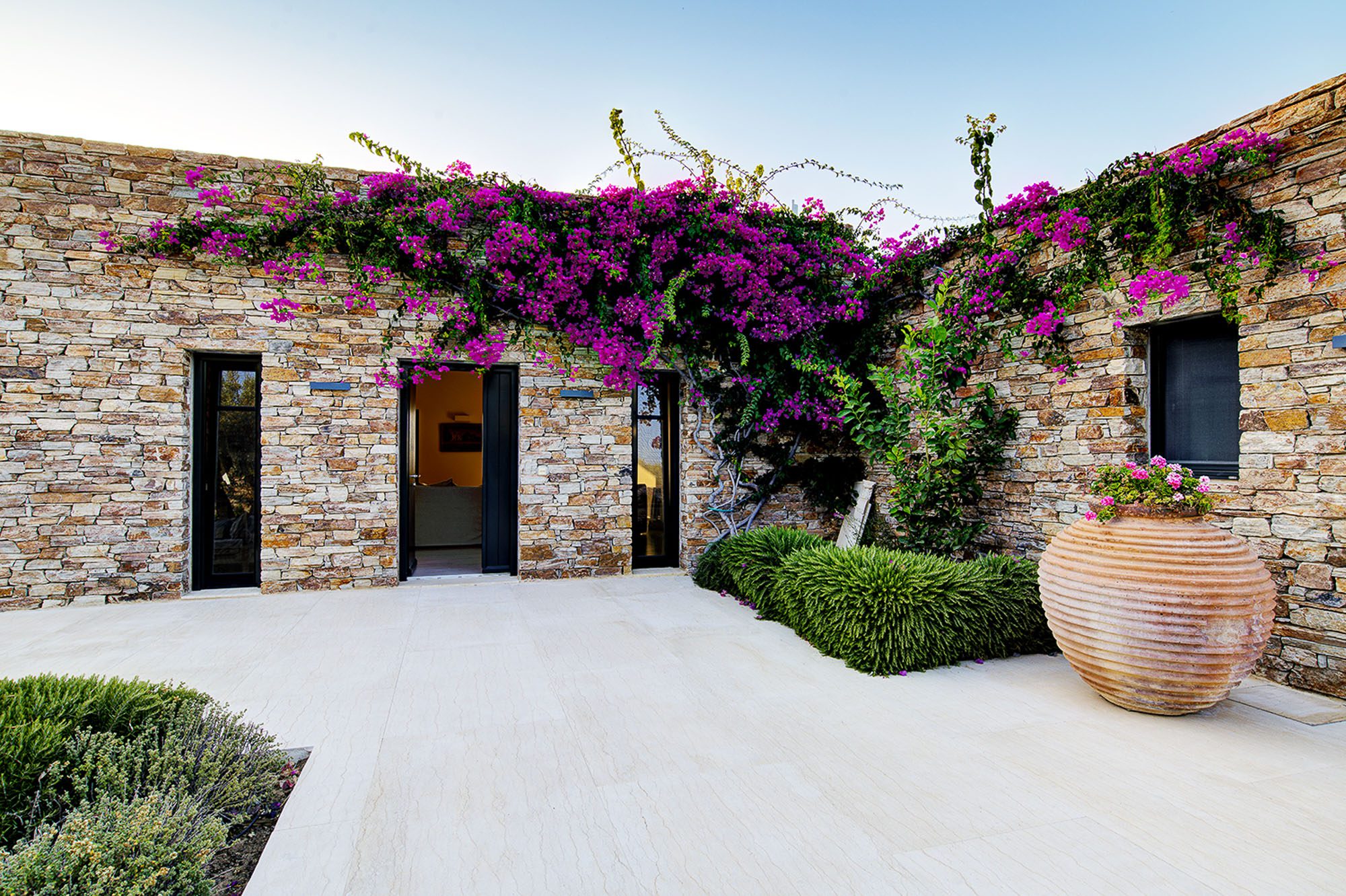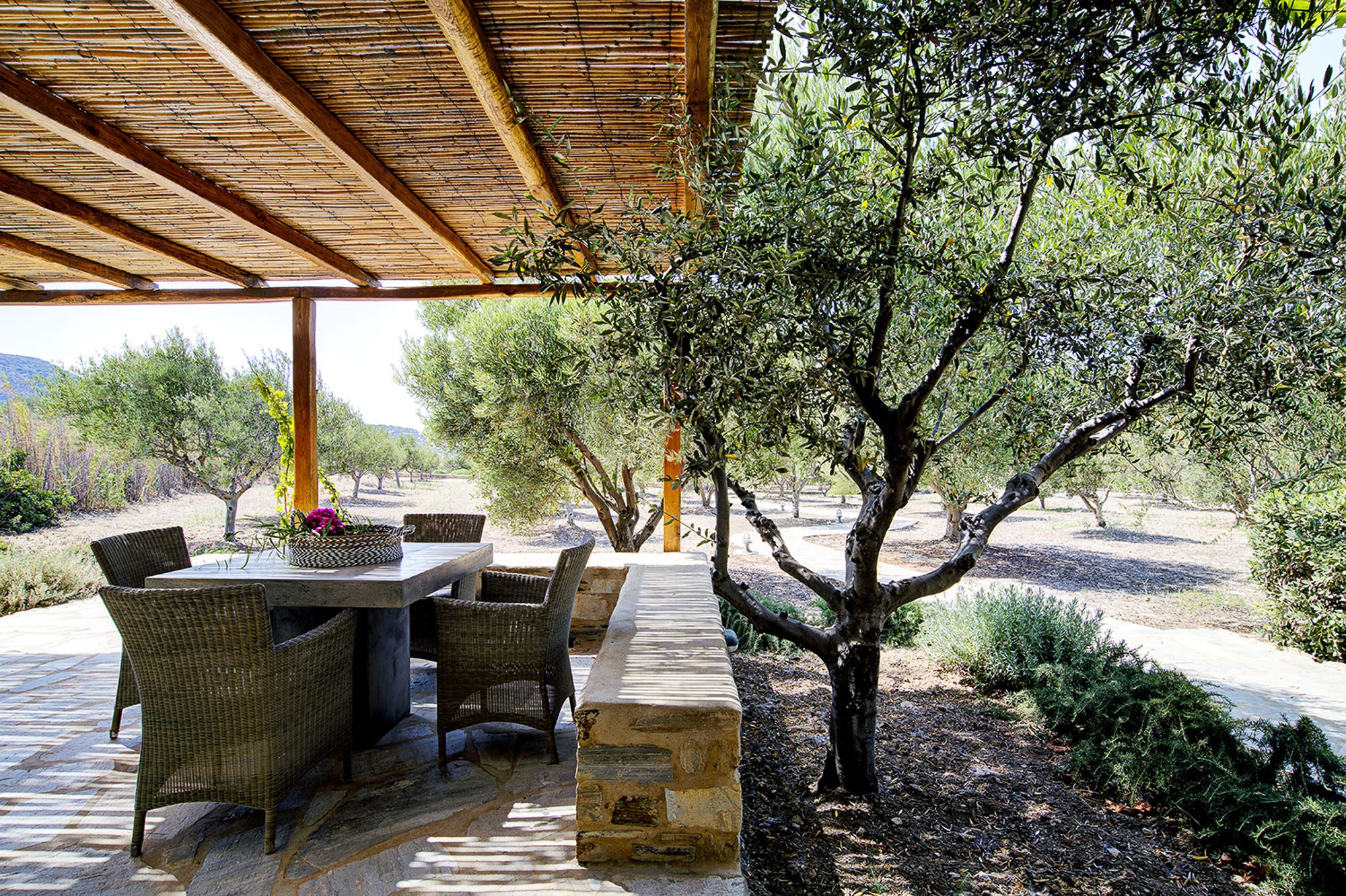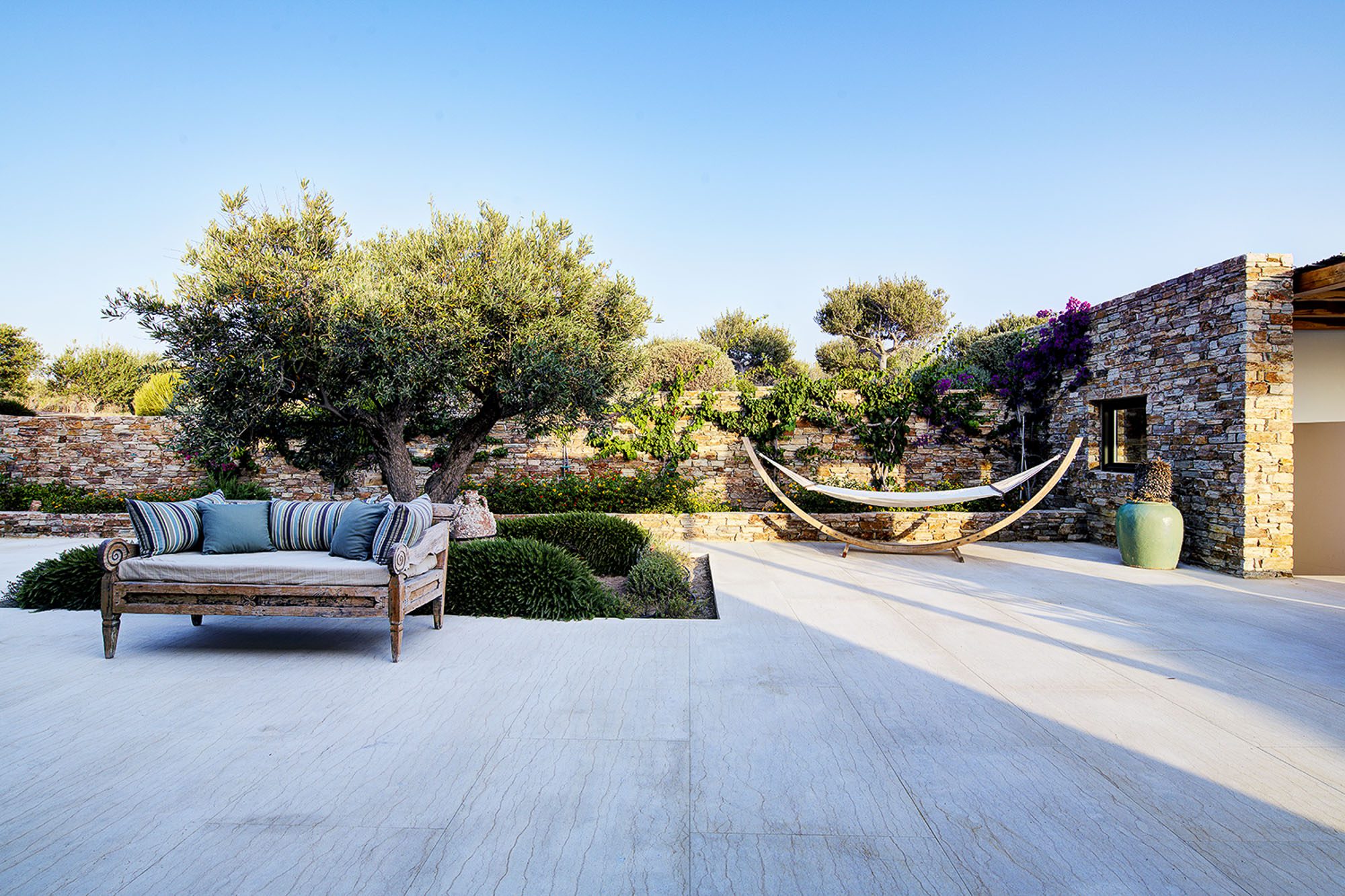 Spacious terraces, softened with olive trees and bougainvillaea, provide plenty of opportunities to relax outside.