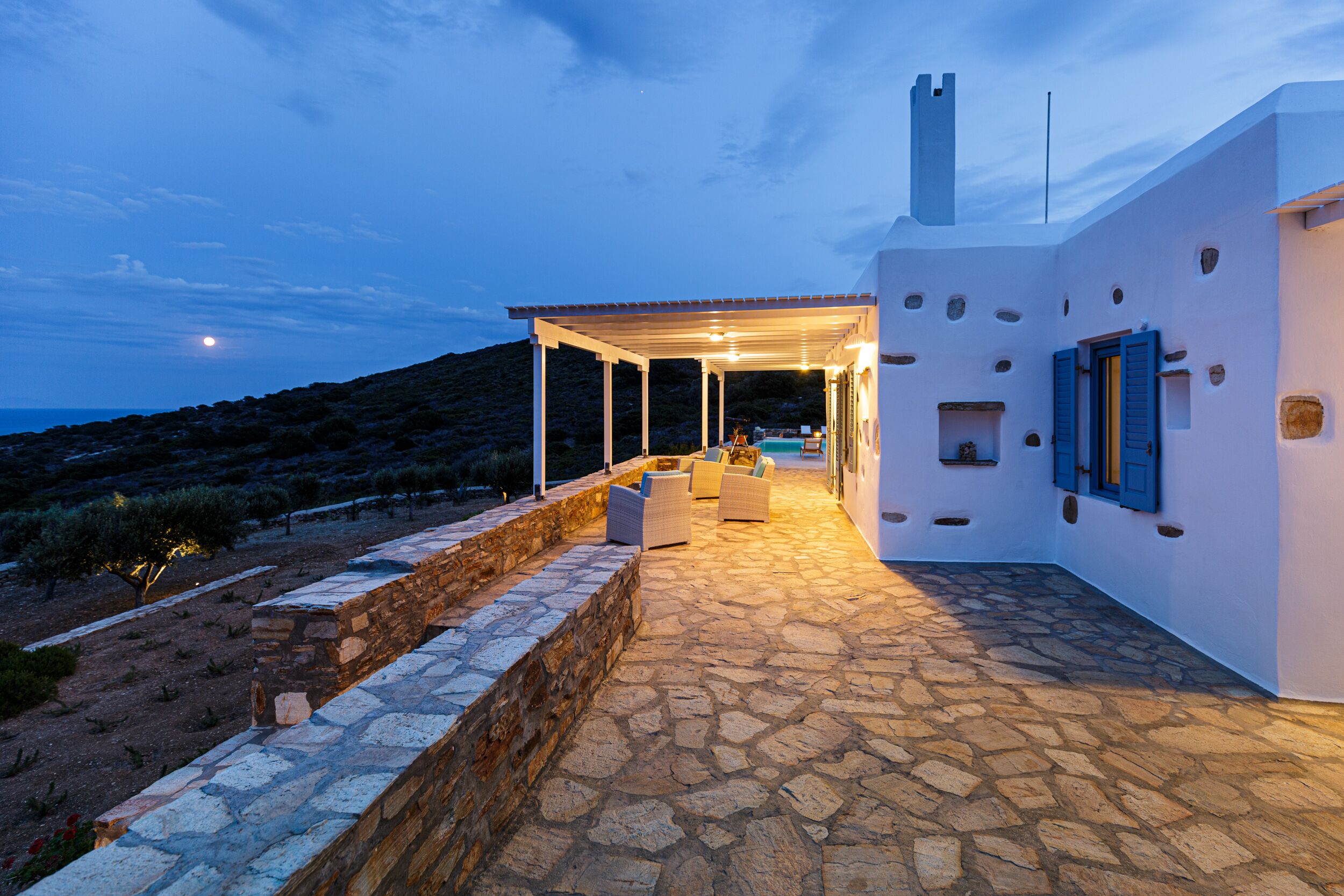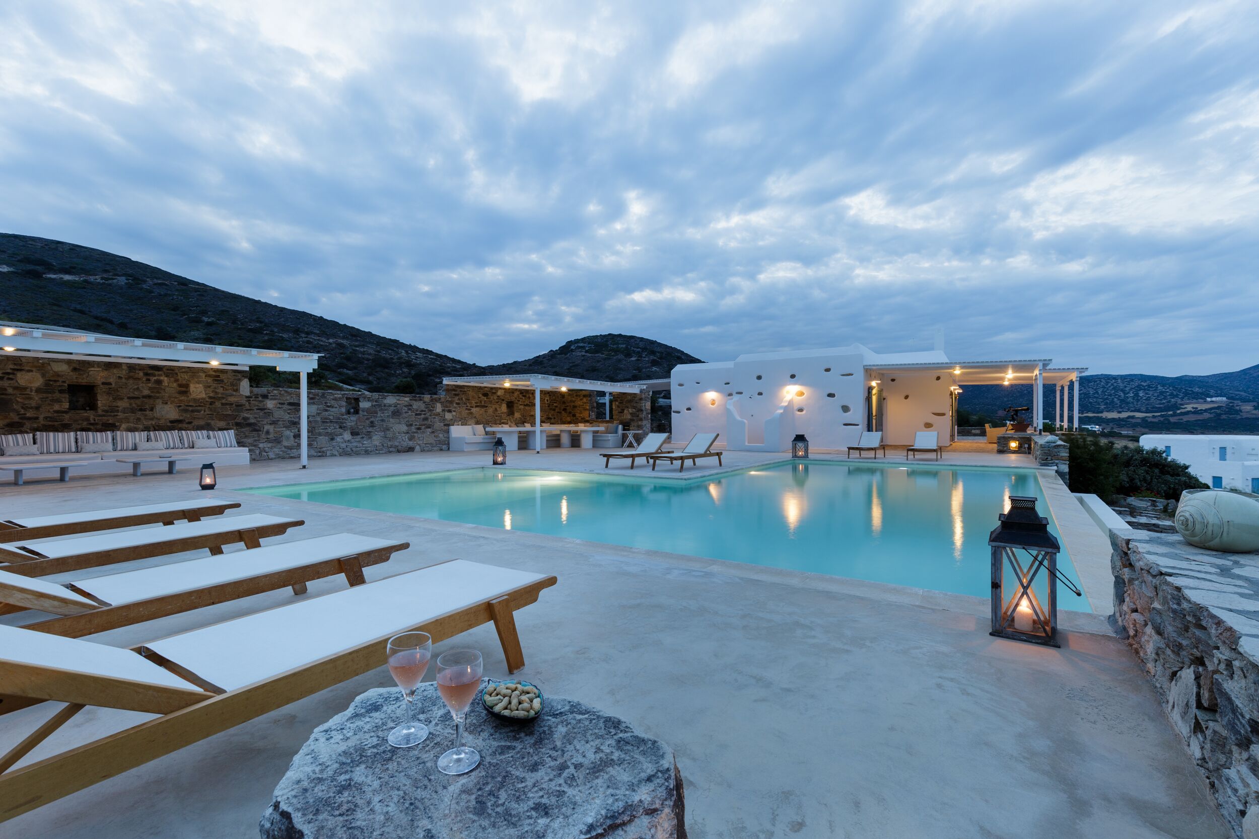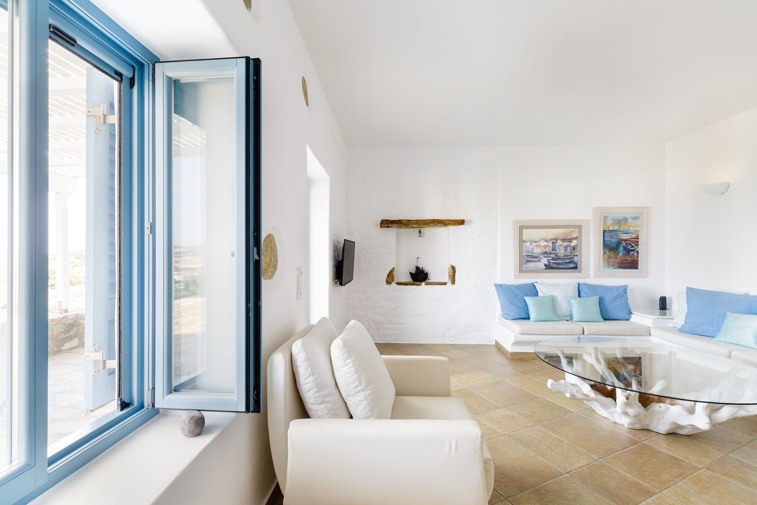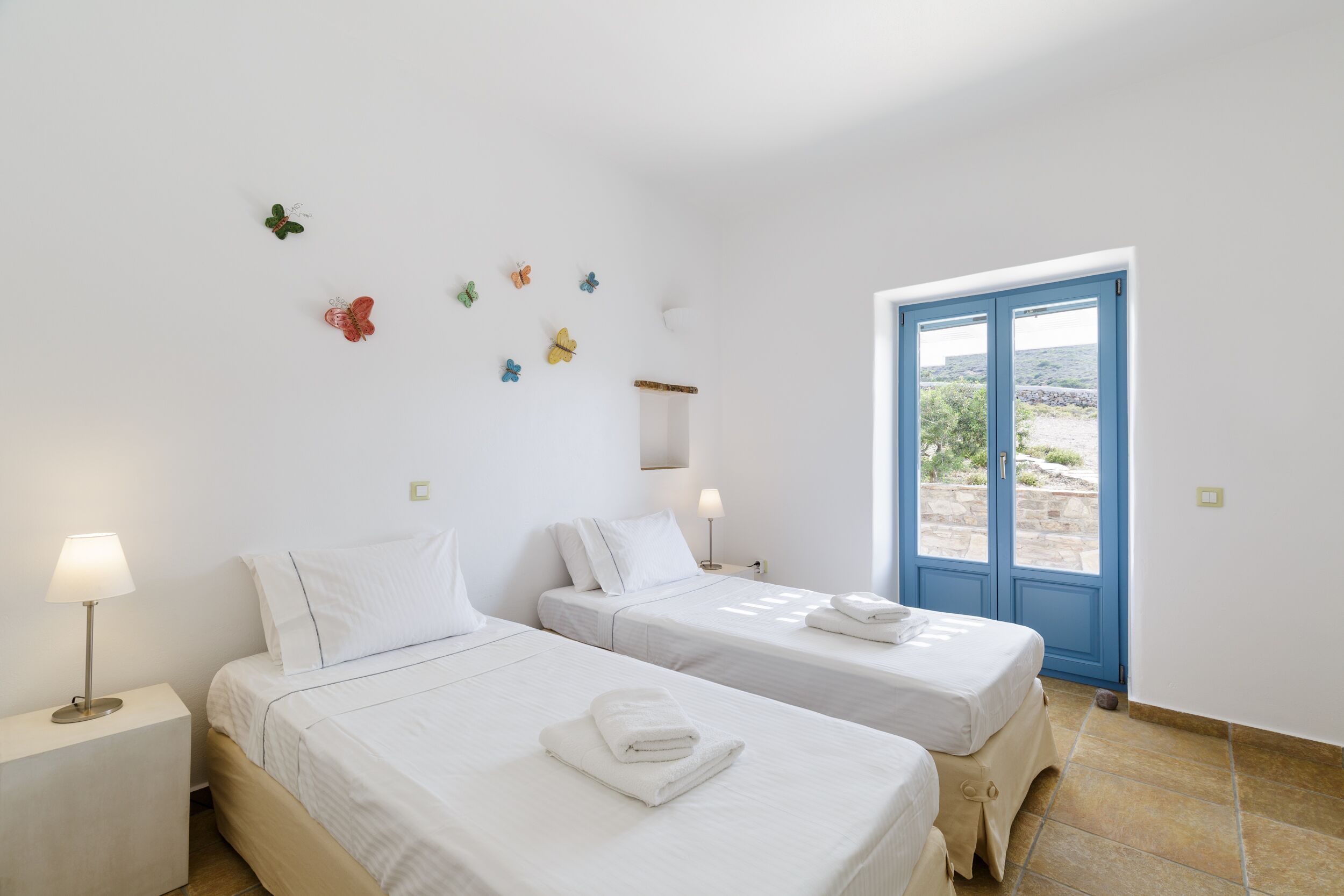 Native trees surround it, and within walking distance of one of the loveliest beaches on the island - Soros. From its elevated position, there are super views of the Aegean and several nearby islands. Both pretty Antiparos town and a helipad are a short drive away.