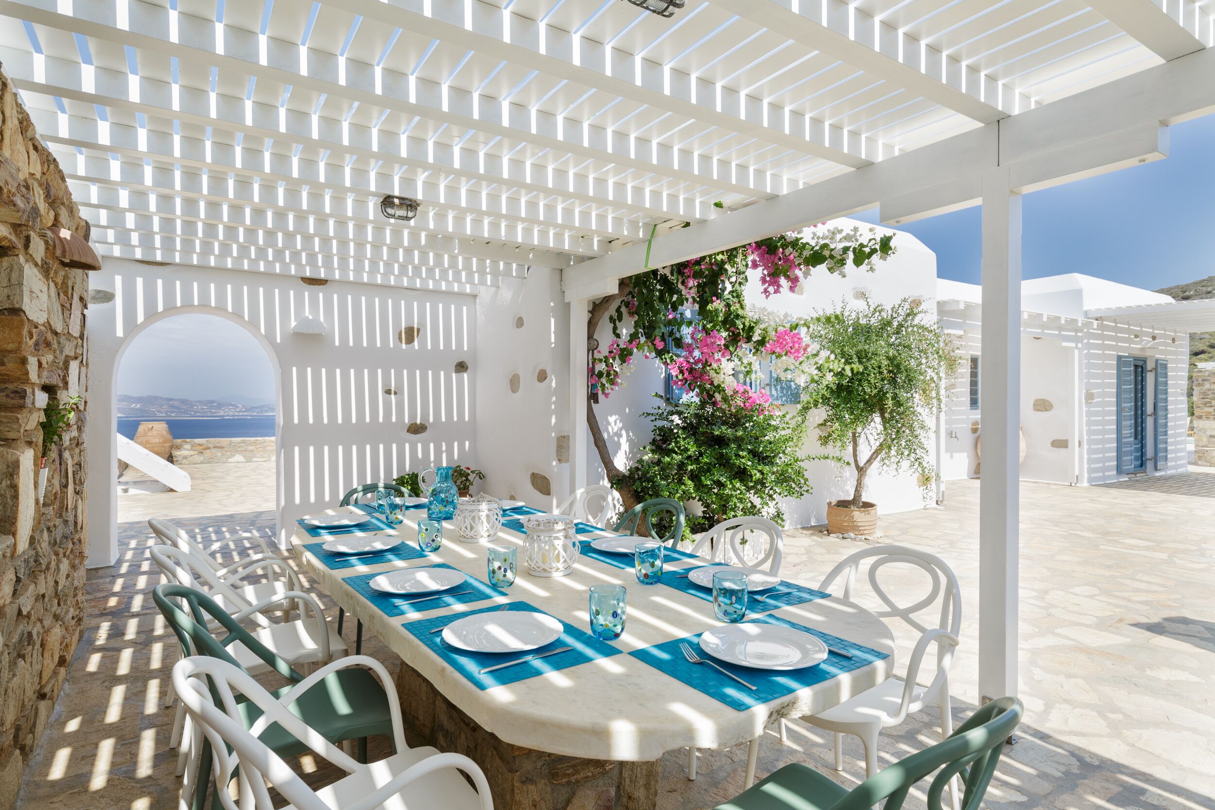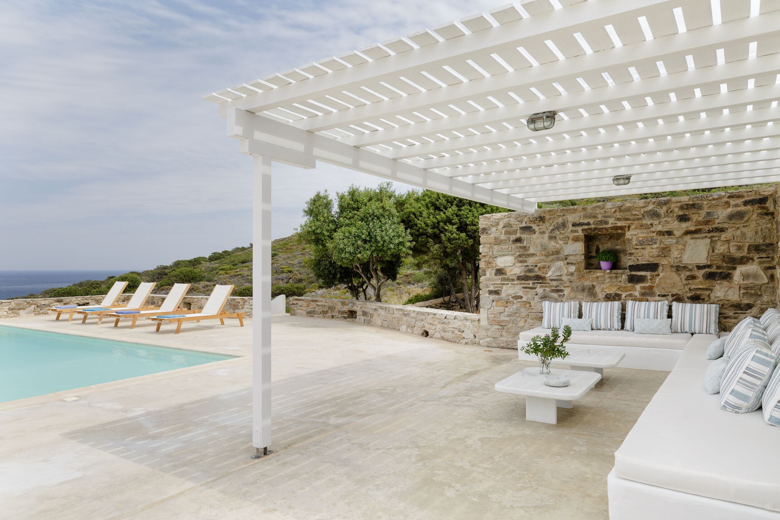 All rooms have direct access to pergola-shaded terraces, which are ideal for lounging, dining, and enjoying the sea and landscape view.