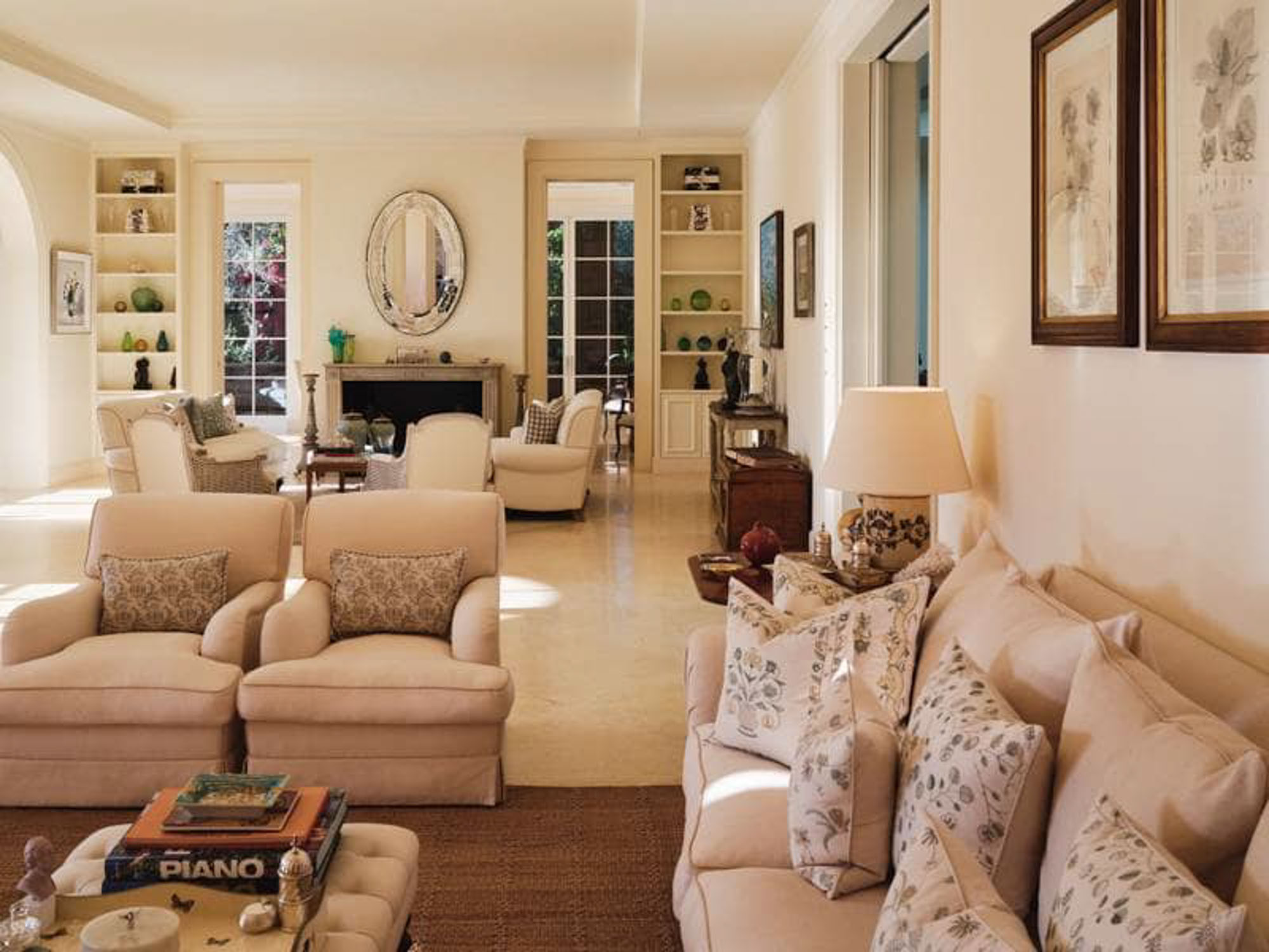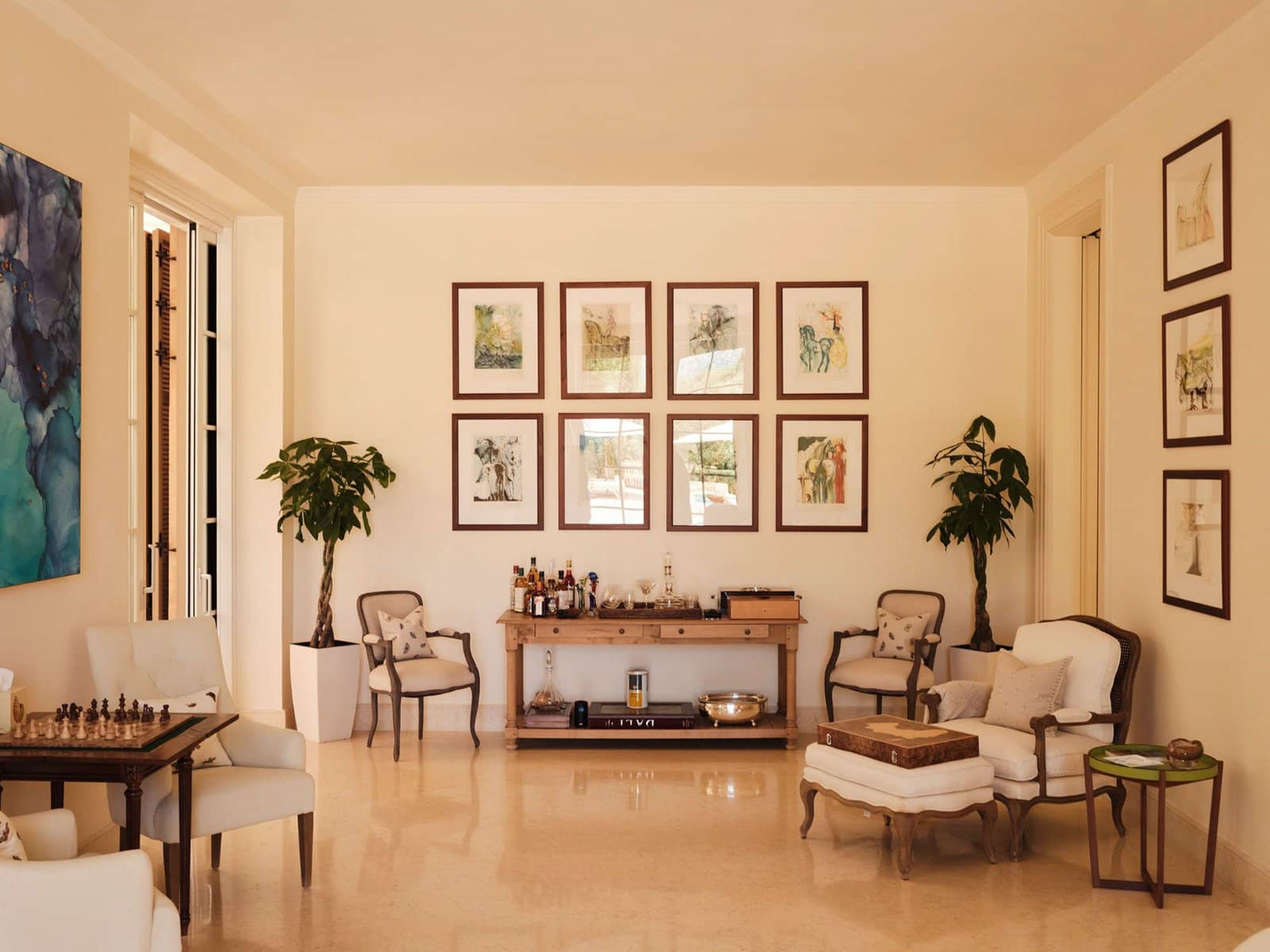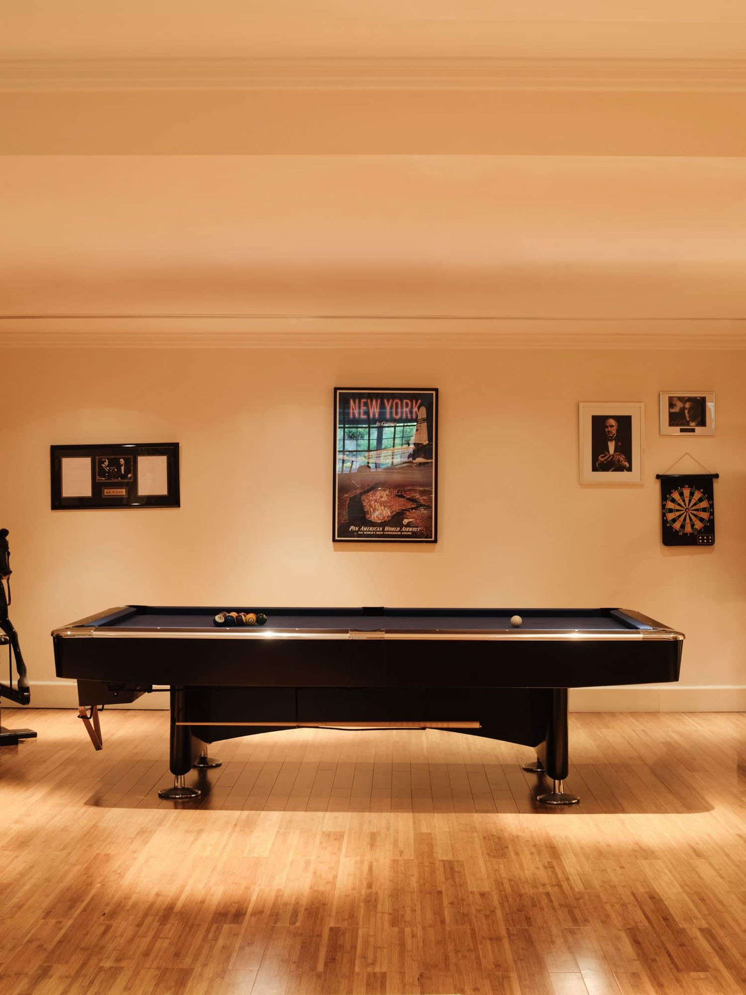 The ground floor is dedicated to generous living and entertaining spaces designed for both relaxation and social gatherings. Interiors are refined yet welcoming, combining classic architectural details with contemporary finishes. Guests can enjoy a fully equipped gym, treatment room, study, bar, and multiple lounging areas. Entertainment continues indoors with a playroom featuring table tennis, a pool table, and air hockey, ensuring all ages are effortlessly catered for. The guest house adds three further en suite bedrooms, offering additional privacy and flexibility for extended family or staff.