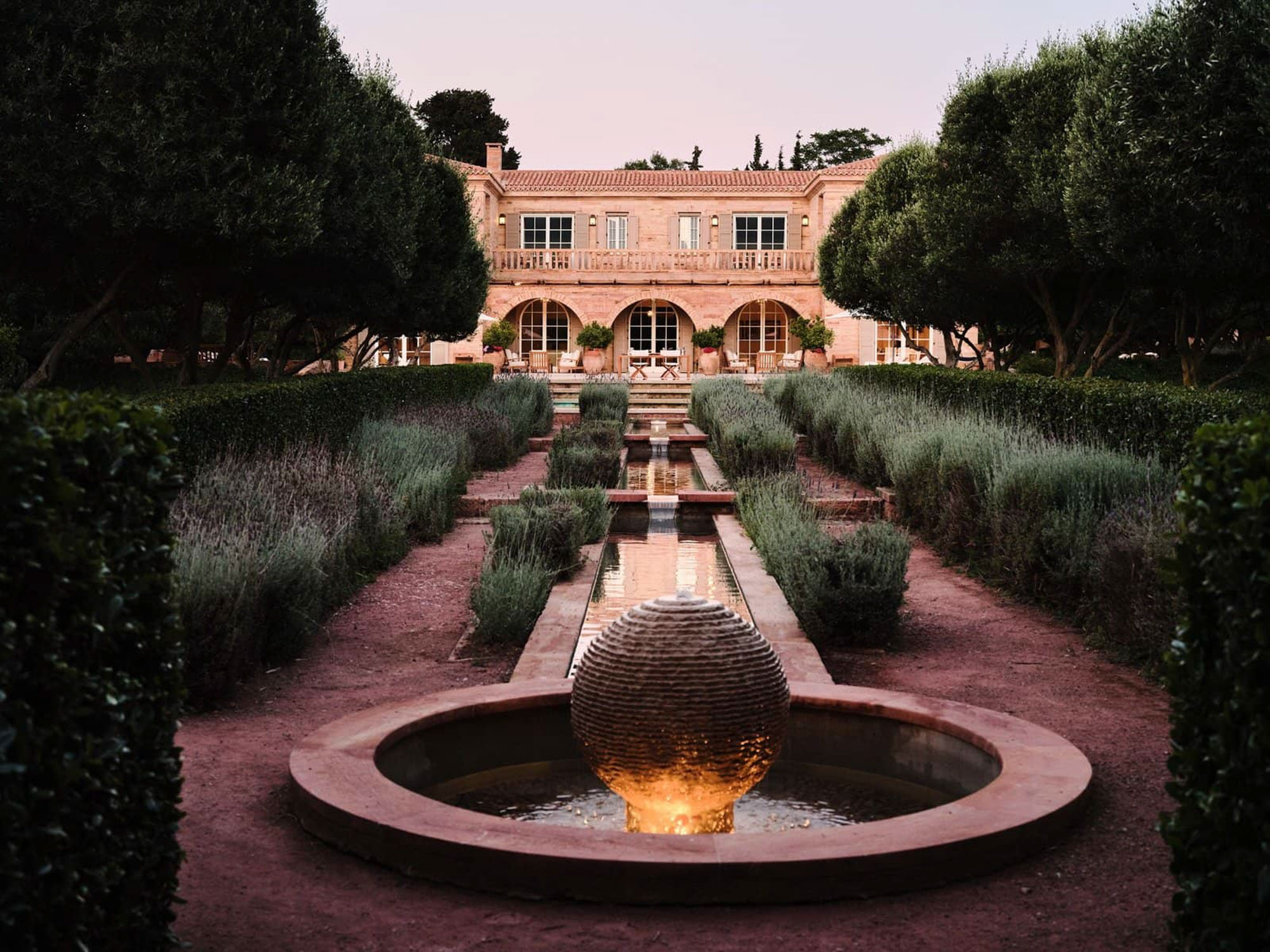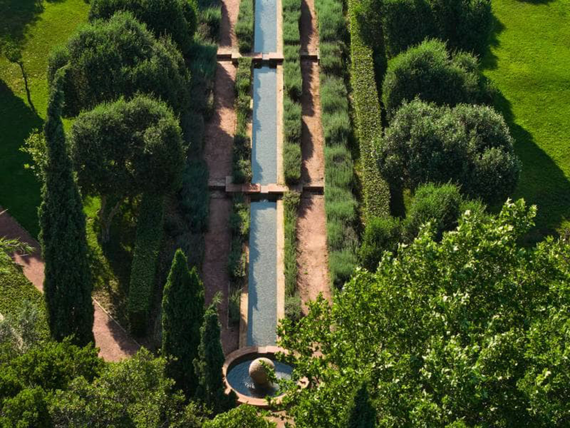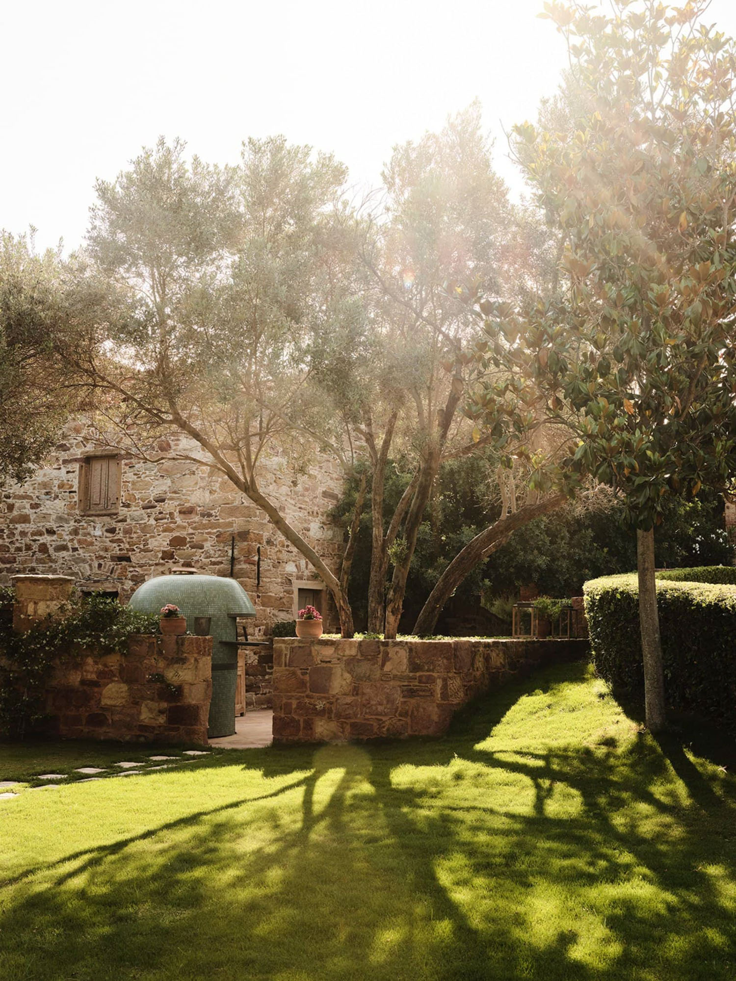 Large landscaped gardens unfold into courtyards and orchards, creating a series of tranquil spaces for dining, relaxing, and exploring. The swimming pool is complemented by a stylish pool bar and surrounding seating areas, while an outdoor cinema provides unforgettable evenings under the stars. Active guests are well catered for with a basketball hoop, playground with trampoline, and ample space for games and leisure, all set within beautifully maintained grounds.