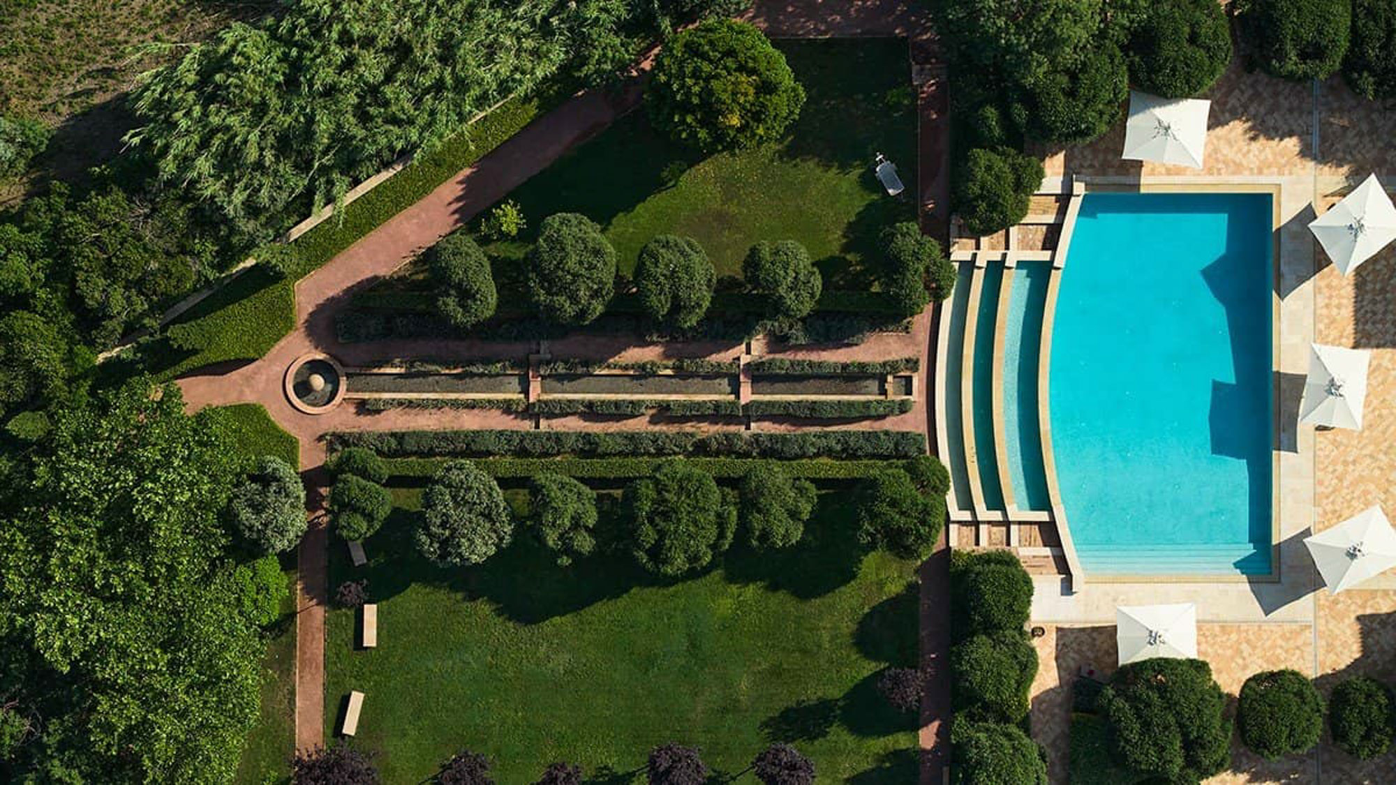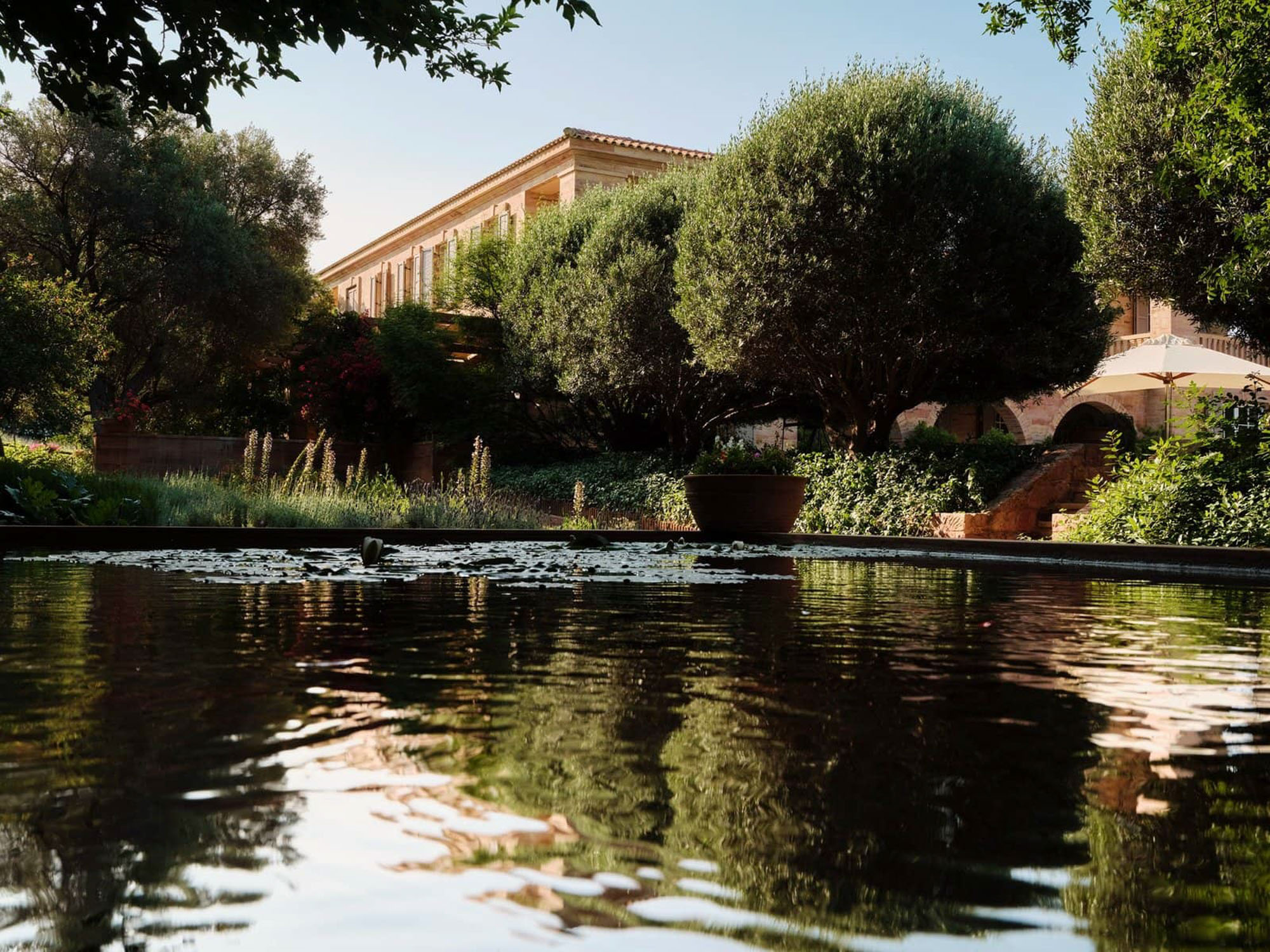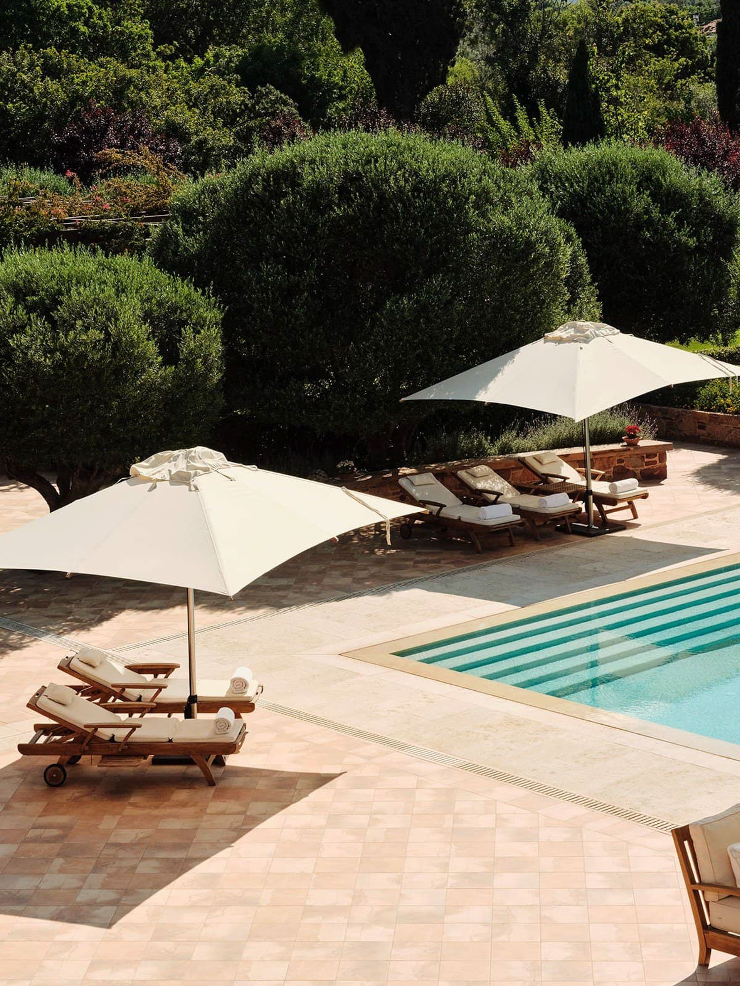 Large landscaped gardens unfold into courtyards and orchards, creating a series of tranquil spaces for dining, relaxing, and exploring. The swimming pool is complemented by a stylish pool bar and surrounding seating areas, while an outdoor cinema provides unforgettable evenings under the stars. Active guests are well catered for with a basketball hoop, playground with trampoline, and ample space for games and leisure, all set within beautifully maintained grounds.