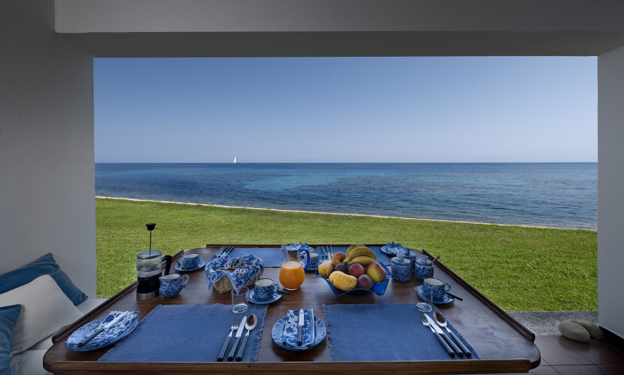 Lawns separate the houses, interspersed with brick-paved dining and lounging areas that provide a variety of settings for sun worship, chilling out, or sunset drinks. It’s particularly magical to dine by the water’s edge with the candles and lanterns lit up as the sun goes down. There’s a little pebble beach below the house, a swimming pool close to the tennis court, to the rear, and table tennis in the shade of the trees. It’s a very family-friendly property with something for every generation.