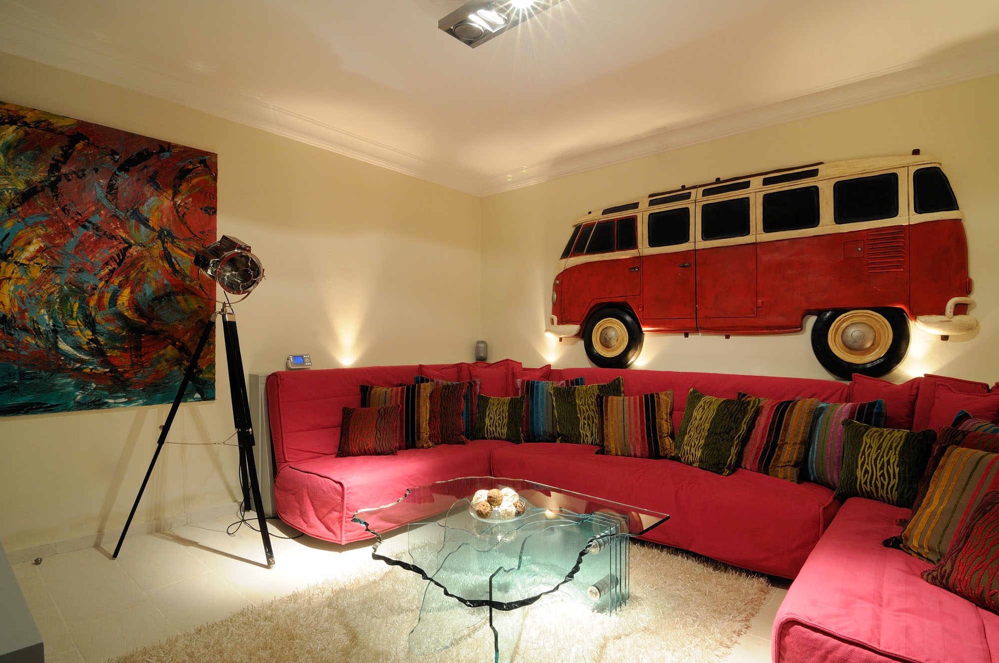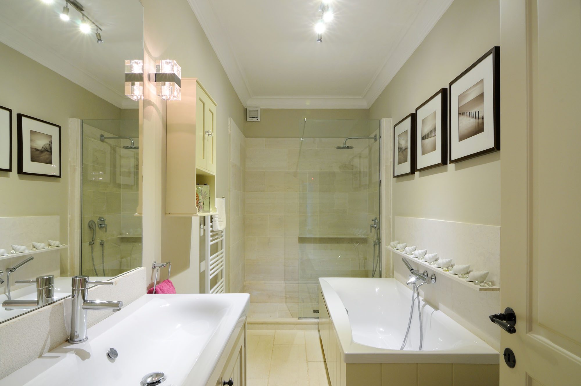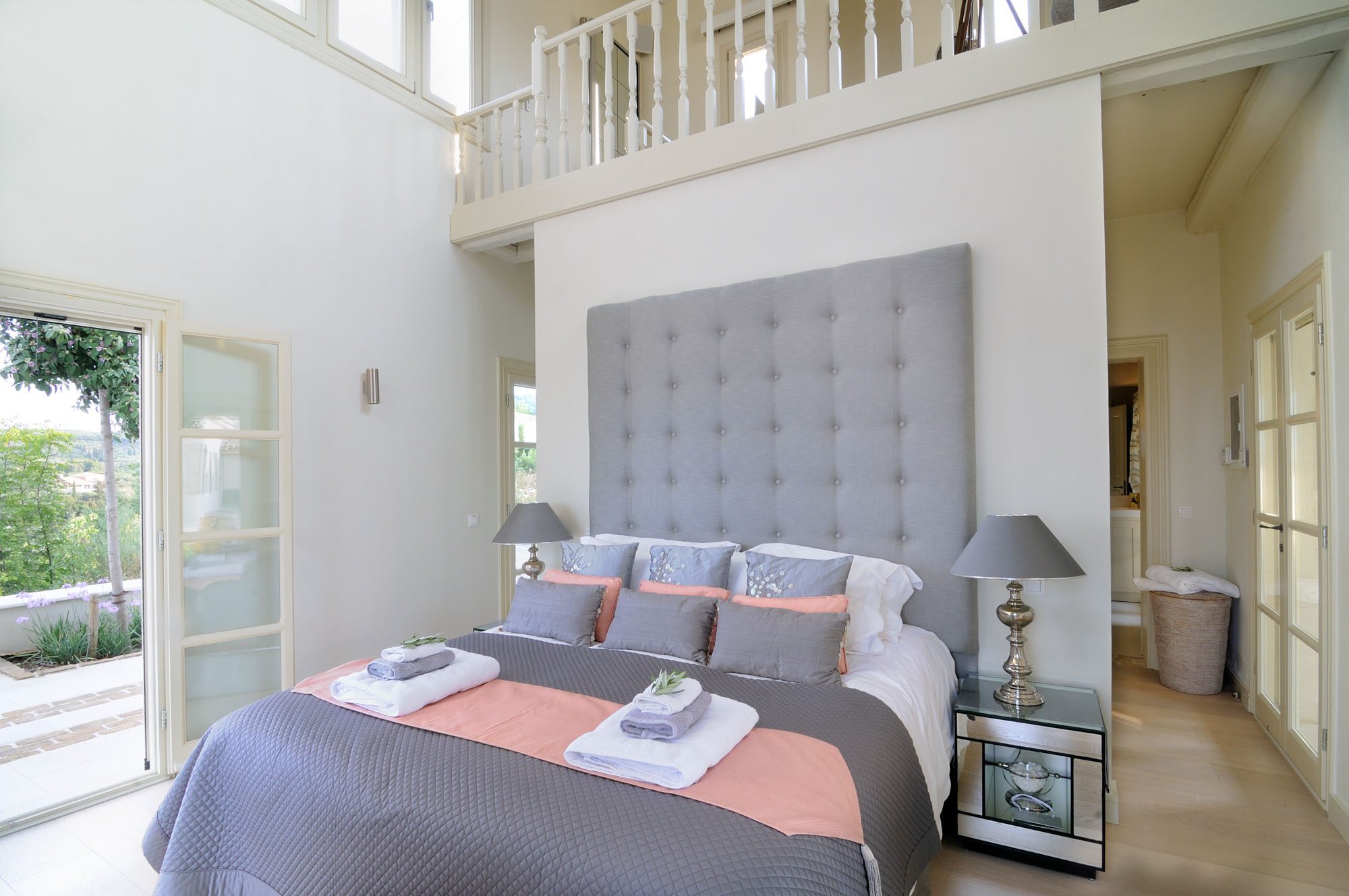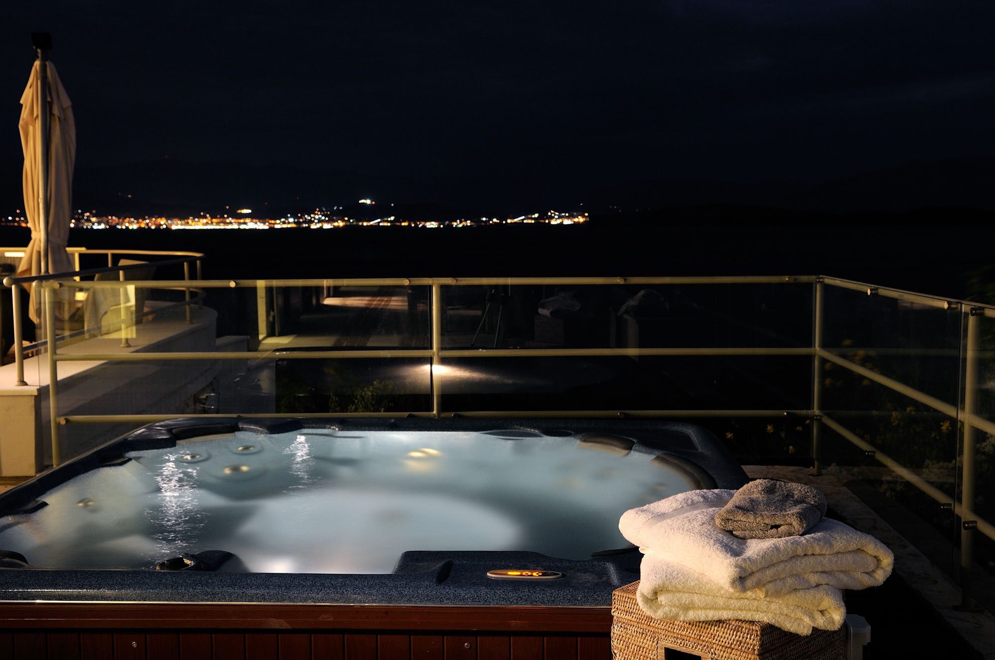 The bedrooms are spread over two floors, with the master suite having a private terrace. The large, open-plan sitting room has stone floors, open stone Corfiot fireplaces at either end, comfortable white sofas, and nine sets of French doors to maximise light. There's also a cinema room, a small gym, table tennis, and a sauna.