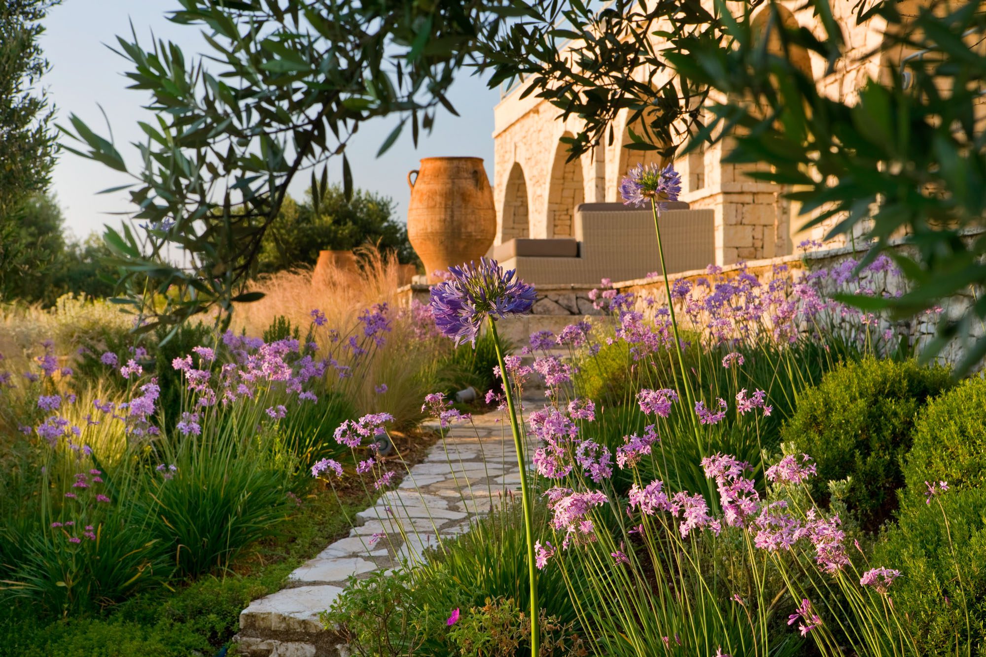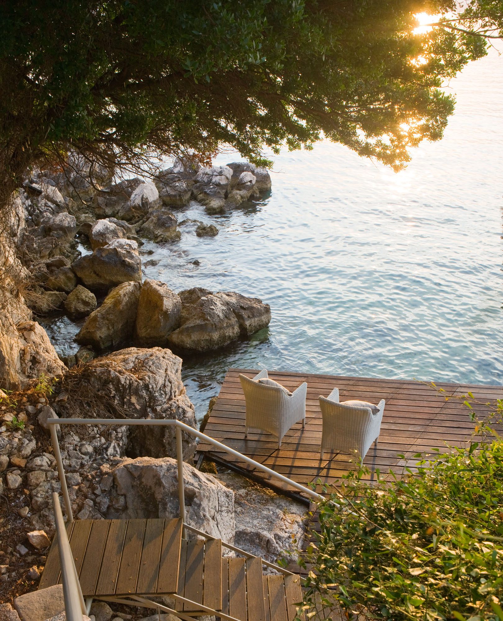 Follow the steps below the house to the pool area, where you will find a 20-meter saltwater infinity pool (with a swim jet exerciser) and a smaller pool suitable for children. The large stone pool house has a well-equipped kitchen, barbecue, seating, and changing room. There's also a boules court and beautiful grounds with secluded seating areas and paths winding down to the little beach and jetty.