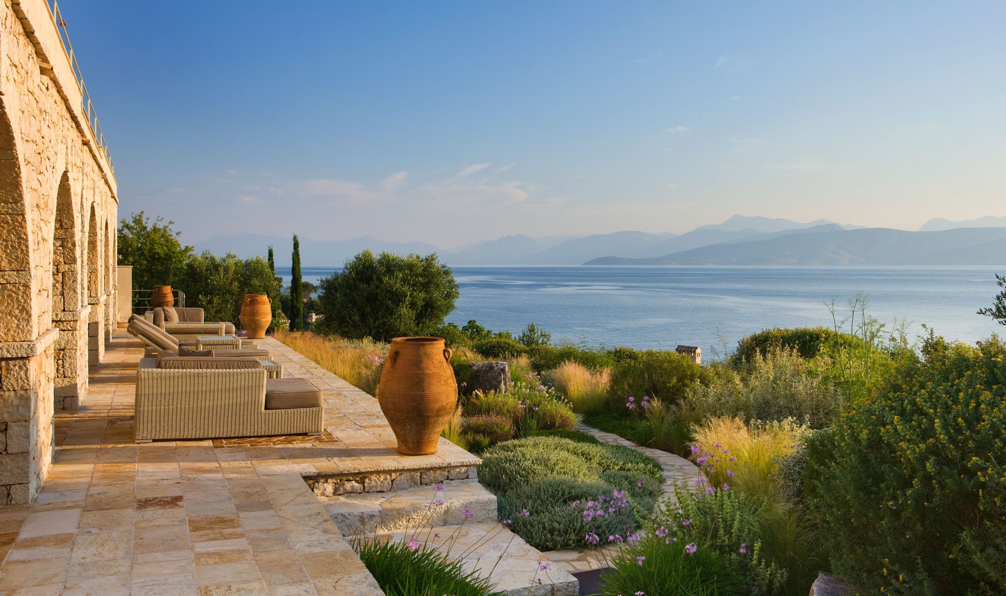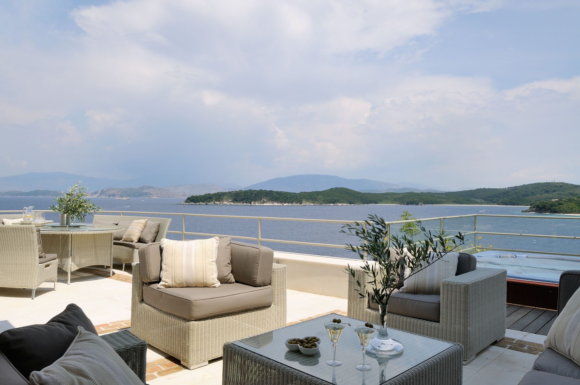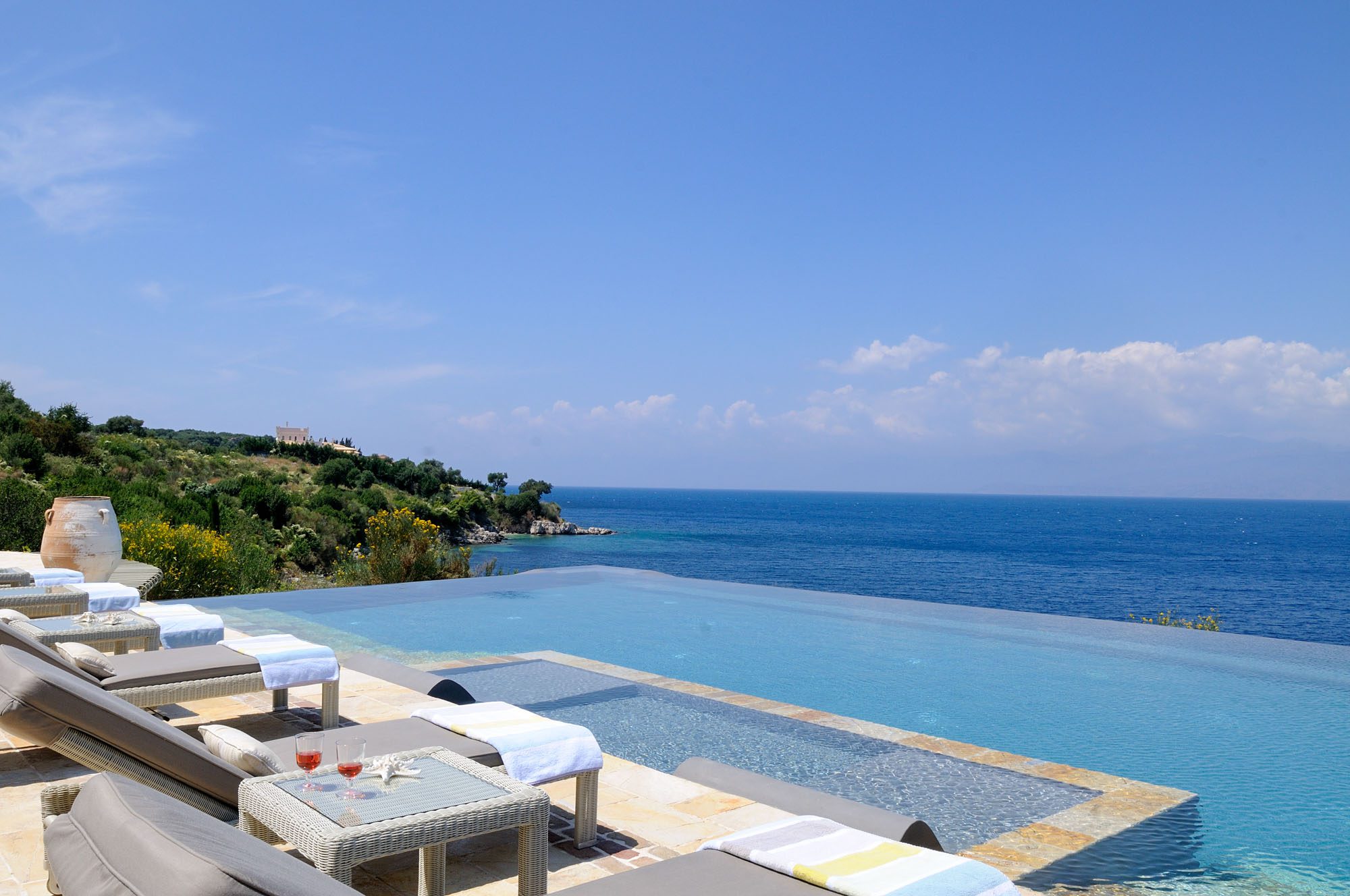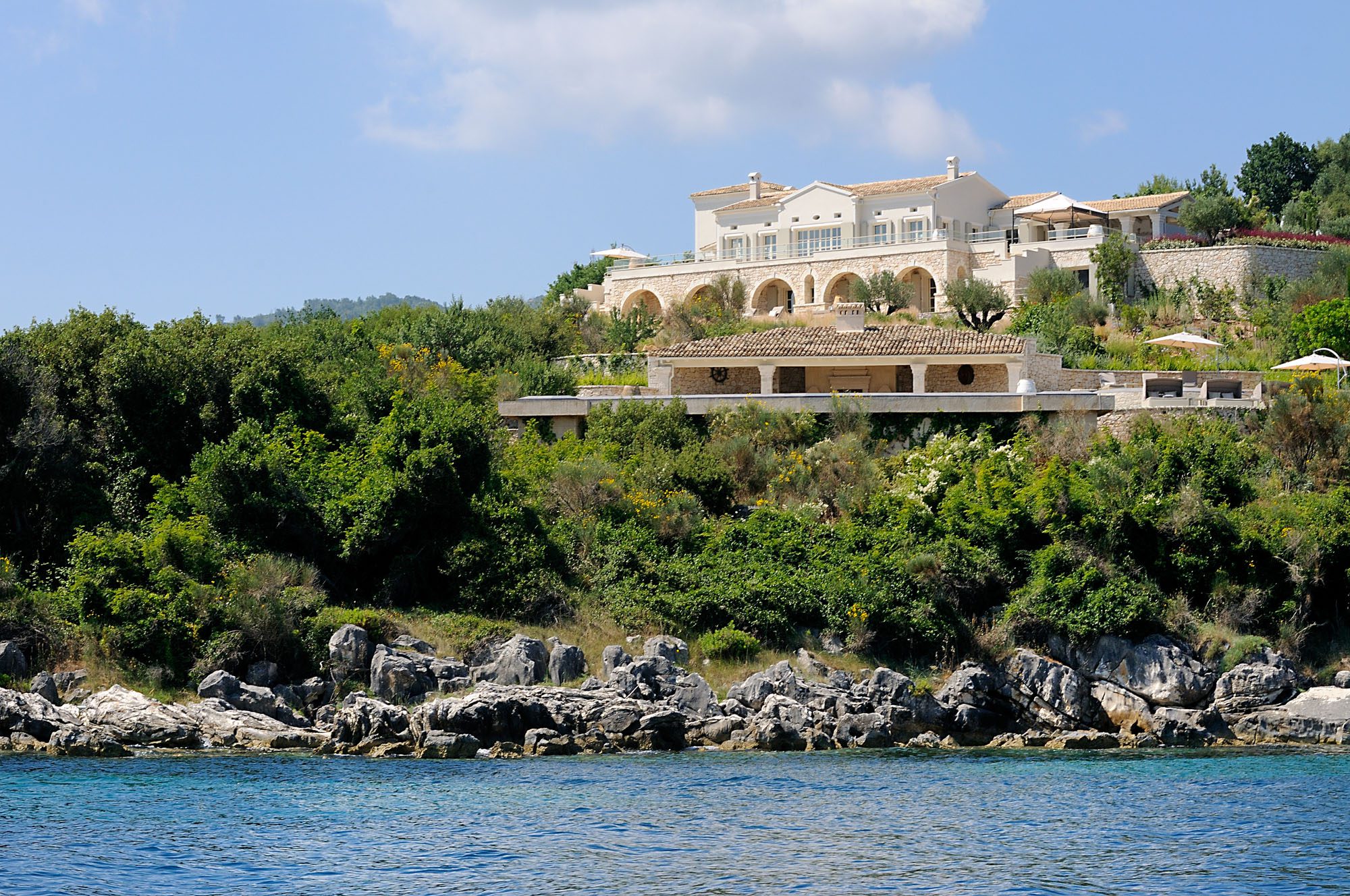 The two properties share access to a secluded pebble beach and a jetty. With superb views of the Ionian Sea and five acres of privacy, this villa accommodates up to 14 people in style and is fully catered in July and August. It's a very peaceful location, with wonderful views of the sea, Kaperelli Island, and Albania, and it's only a short walk to the village and harbour of Kassiopi.