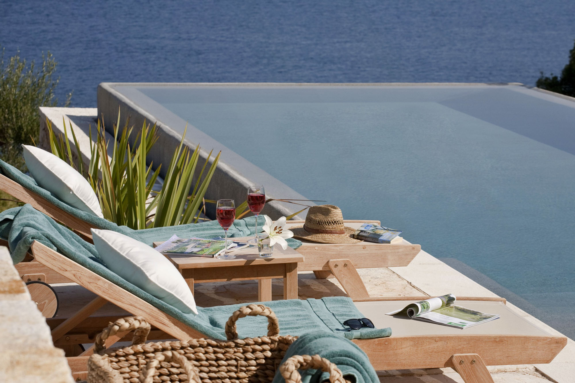 The villa has the feel of a private boutique hotel, with each bedroom being independent. Each villa has four spacious bedrooms with soft linens, safes, regularly replenished toiletries, outside access and a turndown service provided. There are enough communal spaces for everyone to get together or to spread out. In one, there’s also a fitness/yoga/massage room and a well-stocked wine cellar. Both have incredible wrap-around views and flow beautifully from inside to out.