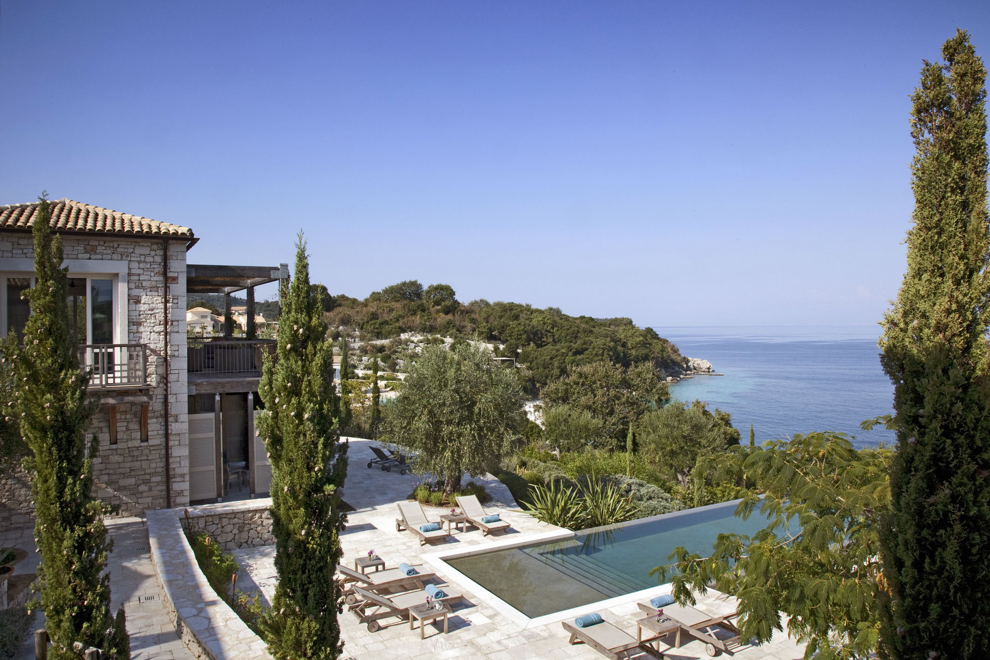 Cavo Aryatis is in a superb position on Corfu’s glorious north-east coast, a 5-minute stroll from Avlaki beach and with a short path accessing a little secluded beach. Consisting of two adjacent villas, each with a swimming pool, it’s a fantastic property for a large group, with an exceptional range of facilities on offer.