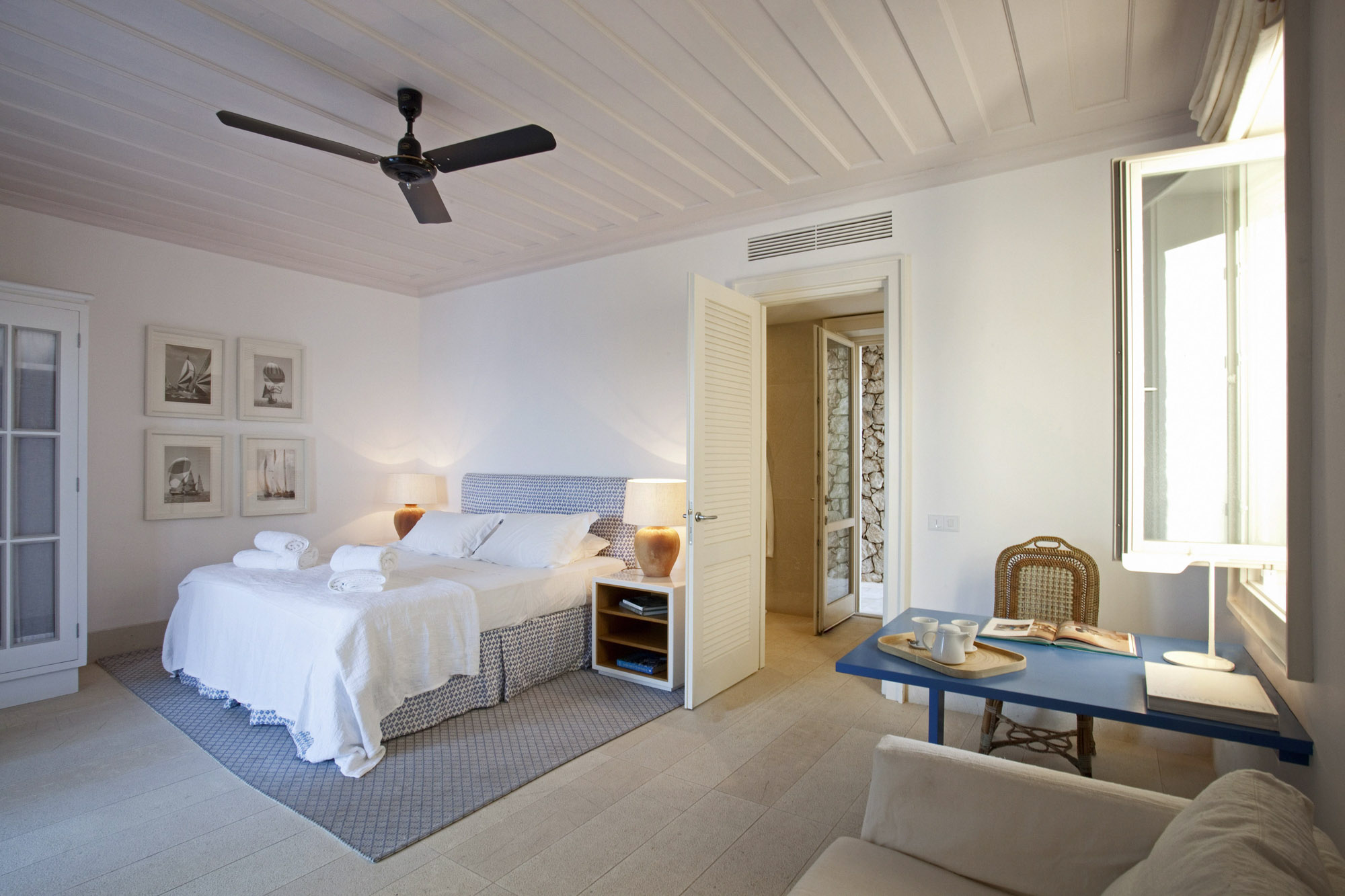 There are so many places to relax and take in the most amazing views, with lots of lovingly tended greenery to define the different spaces and give that stamp of Mediterranean style. Al fresco dining is a must with dining areas for up to 30 outside one villa, and up to 20 outside the other. There are two gleaming swimming pools, each with a 4-poster day bed alongside, and lots of sun beds, outdoor sofas and chairs. In addition to the tennis court, there’s a table tennis court and a boules area. You can walk the path to the sea in a couple of minutes and take a dip in the sea or have a boat delivered to the jetty for a day’s adventuring along the coast.