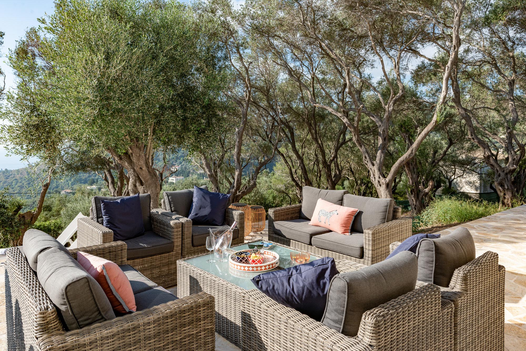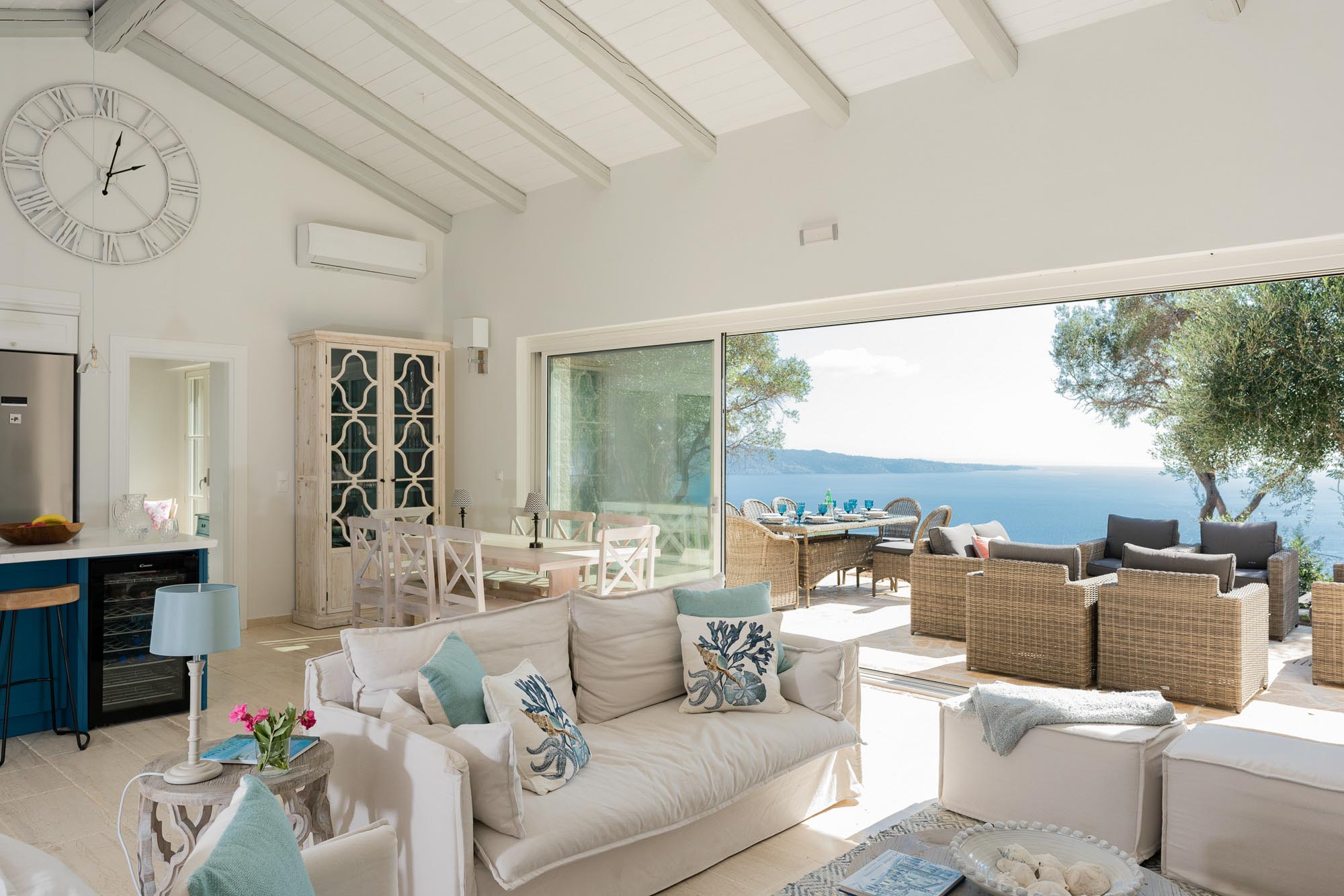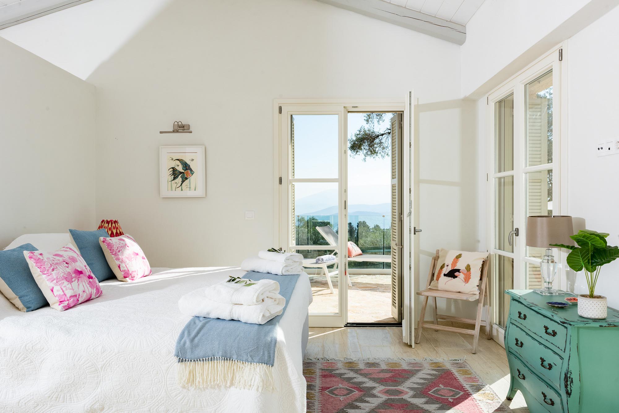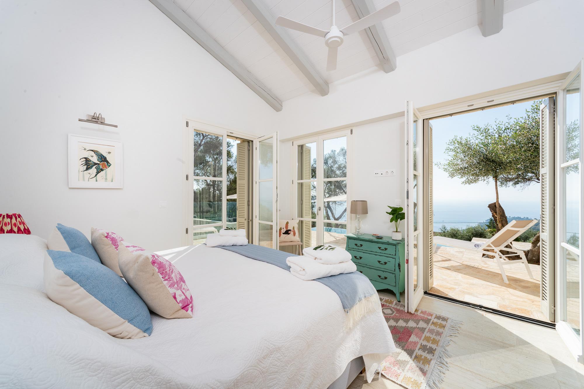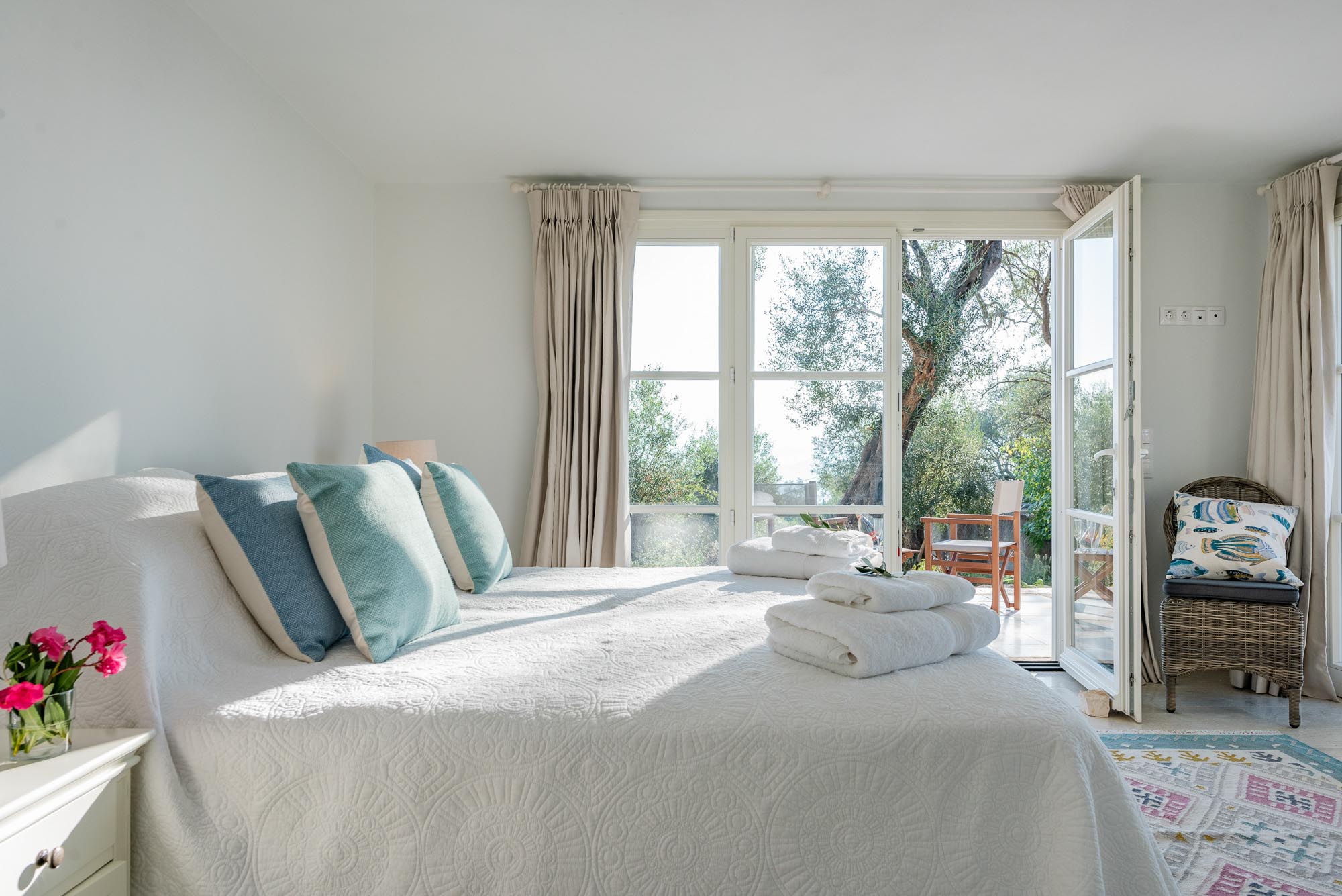 The large living space has doors that open onto the terrace, letting in lots of light and framing the stunning sea views. It contains a comfortable lounge area, breakfast bar, and dining area for eight. There are four airy bedrooms, all with super king-size beds; three are in the main house, and one is in a separate garden suite with a sitting room/TV area.