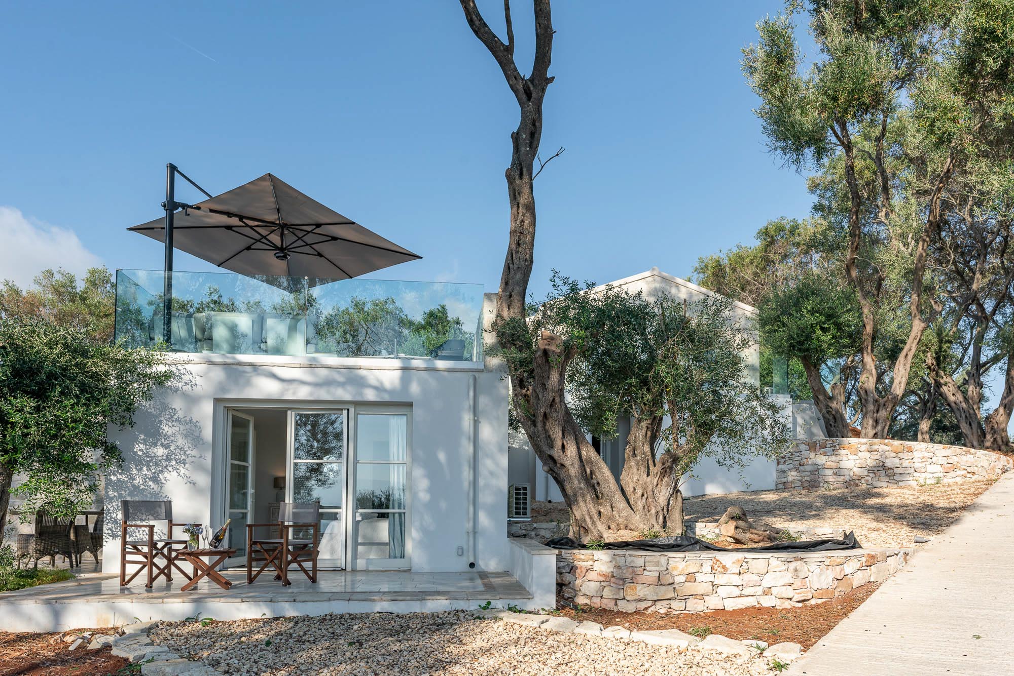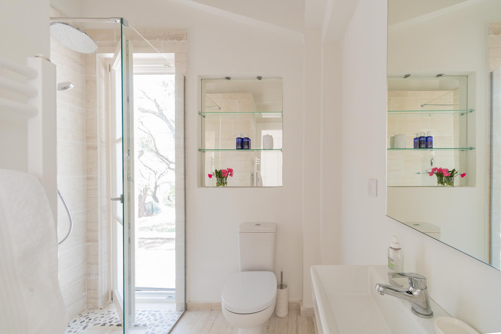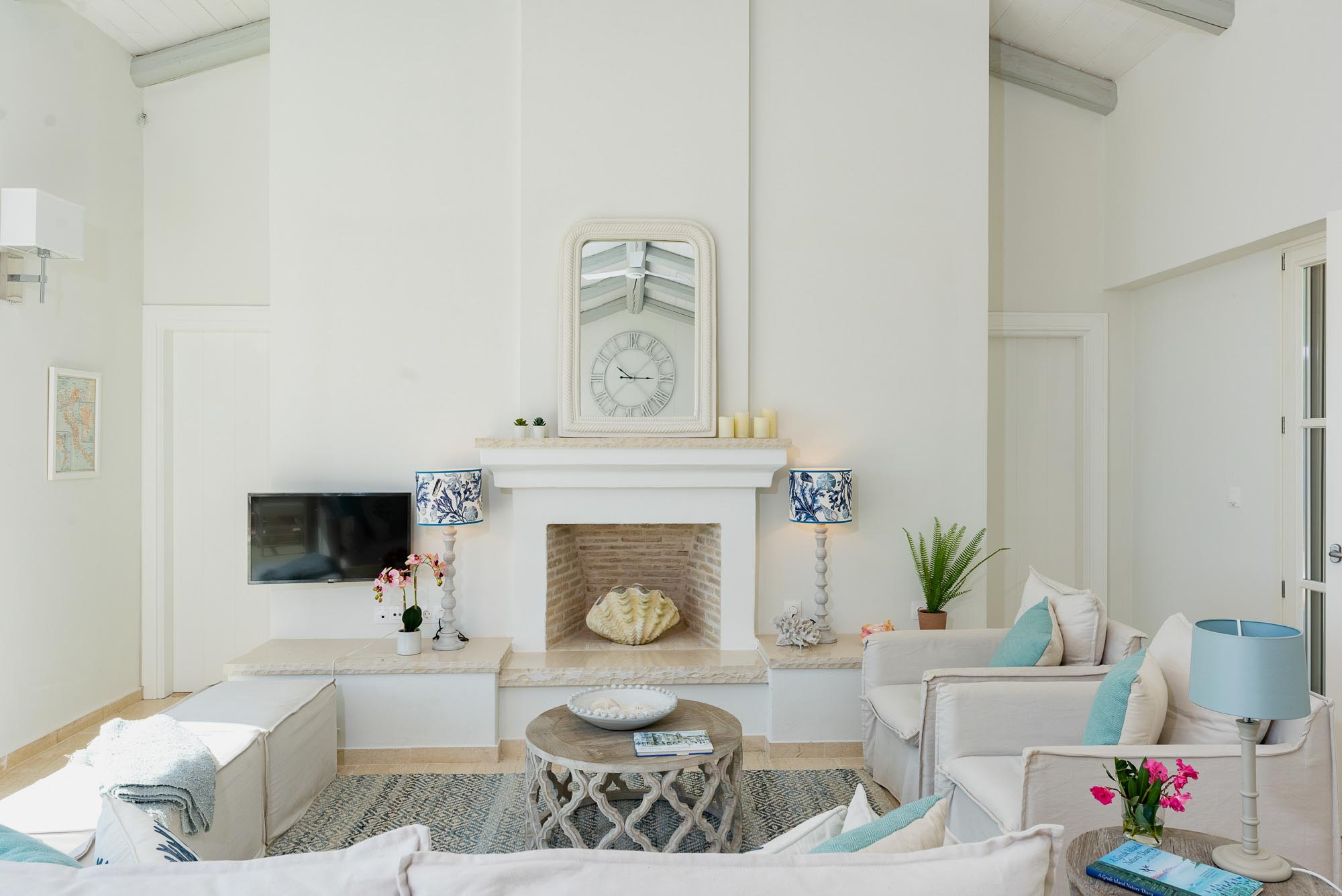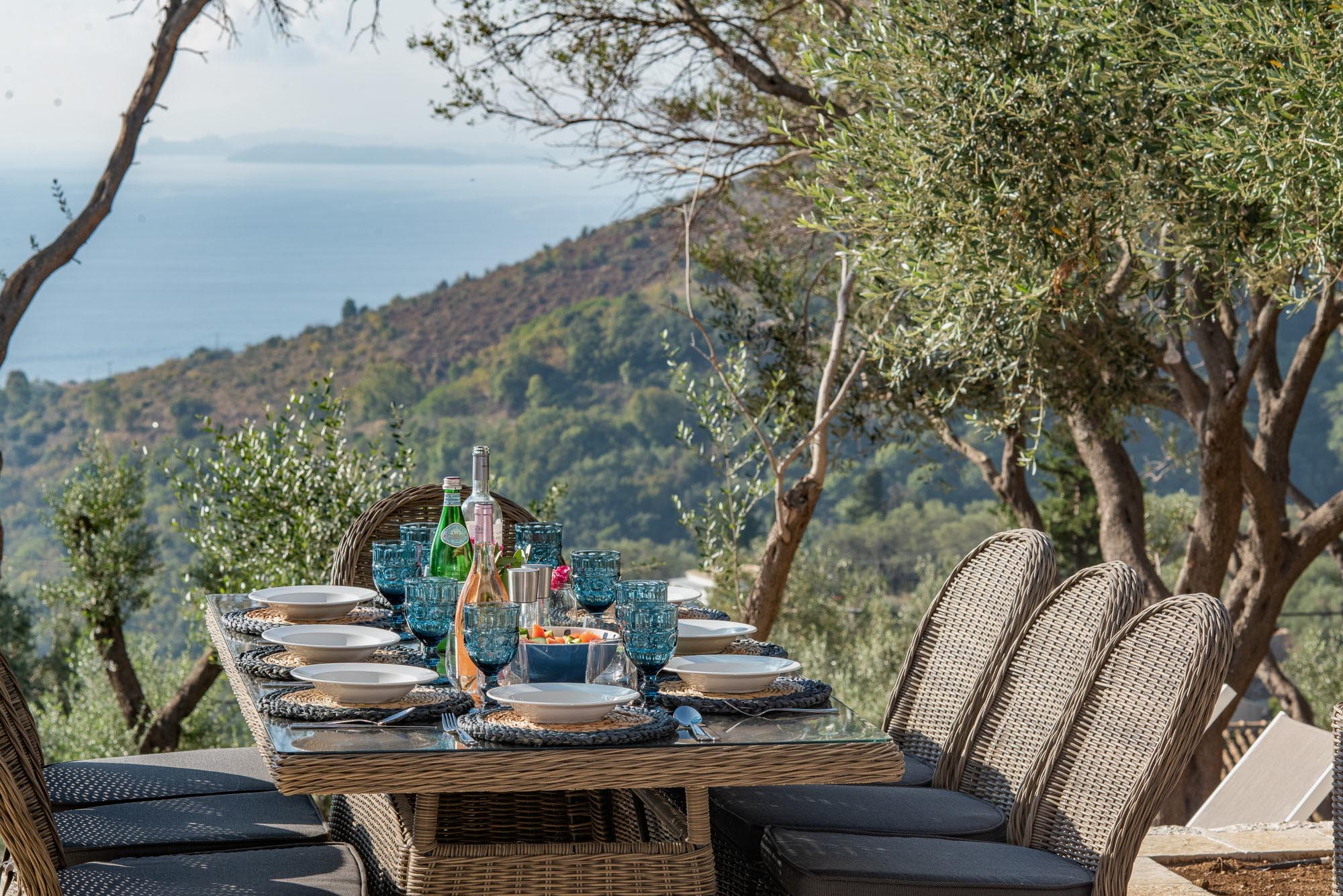 The large living space has doors that open onto the terrace, letting in lots of light and framing the stunning sea views. It contains a comfortable lounge area, breakfast bar, and dining area for eight. There are four airy bedrooms, all with super king-size beds; three are in the main house, and one is in a separate garden suite with a sitting room/TV area.