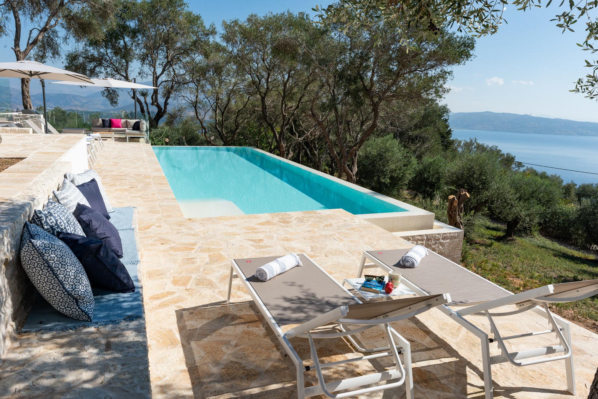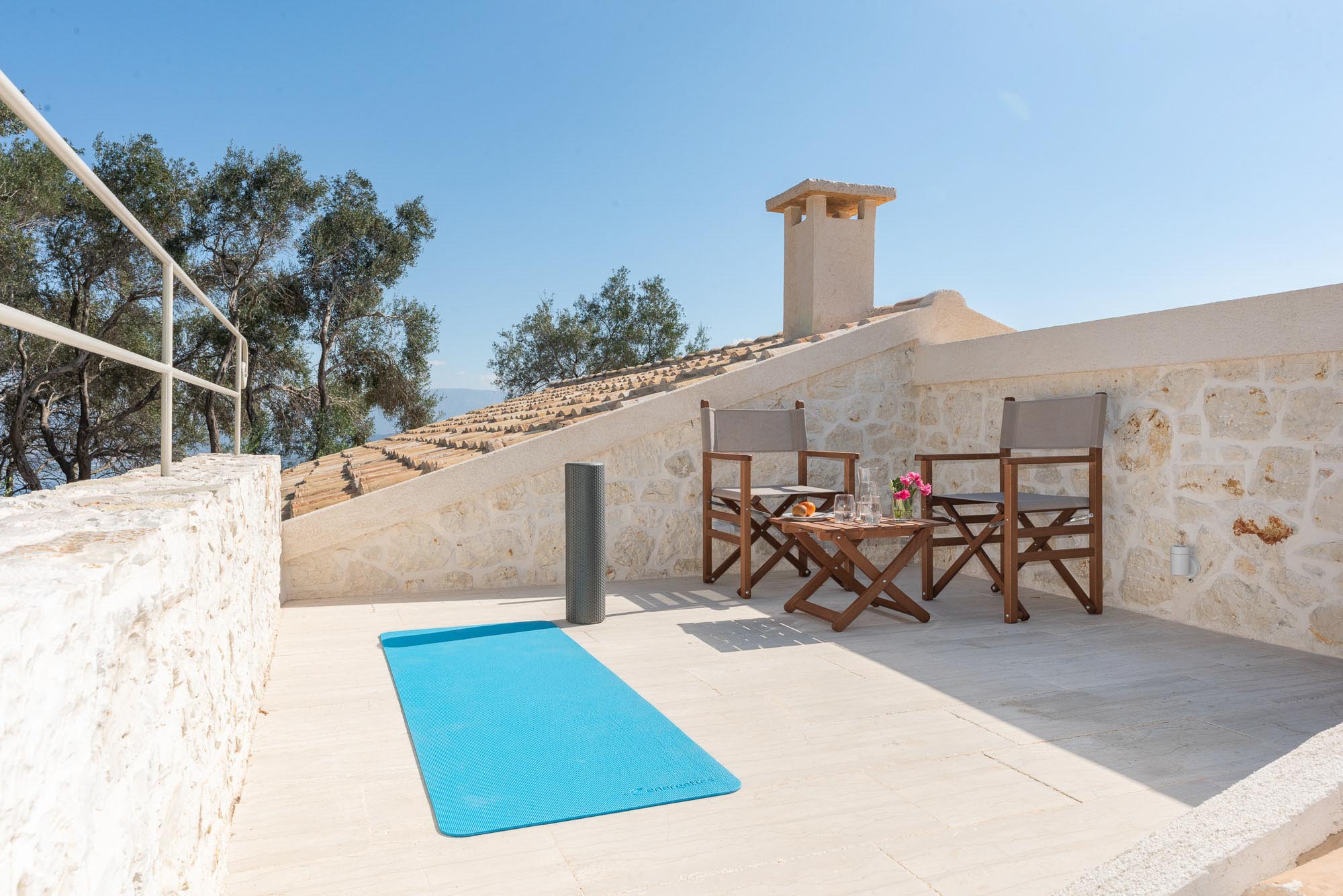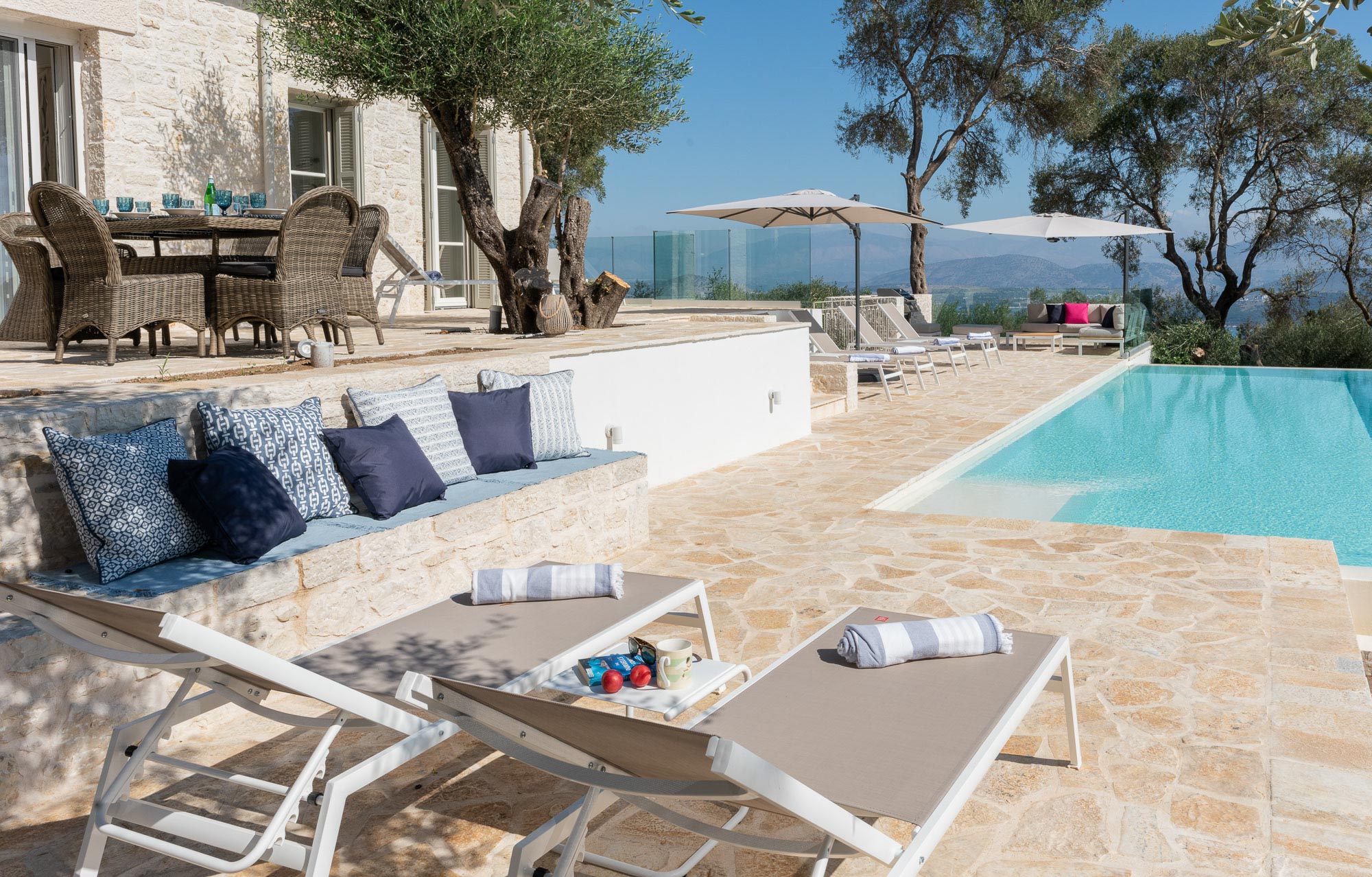 The nearby village of Sinies with a bakery, patisserie, grocery shop and fishmonger is walking distance away, and the popular harbour village of San Stephanos is a short drive away or a 20-minute walk down via a track. There are also the beautiful beaches of Kerasia and Avlaki close by.