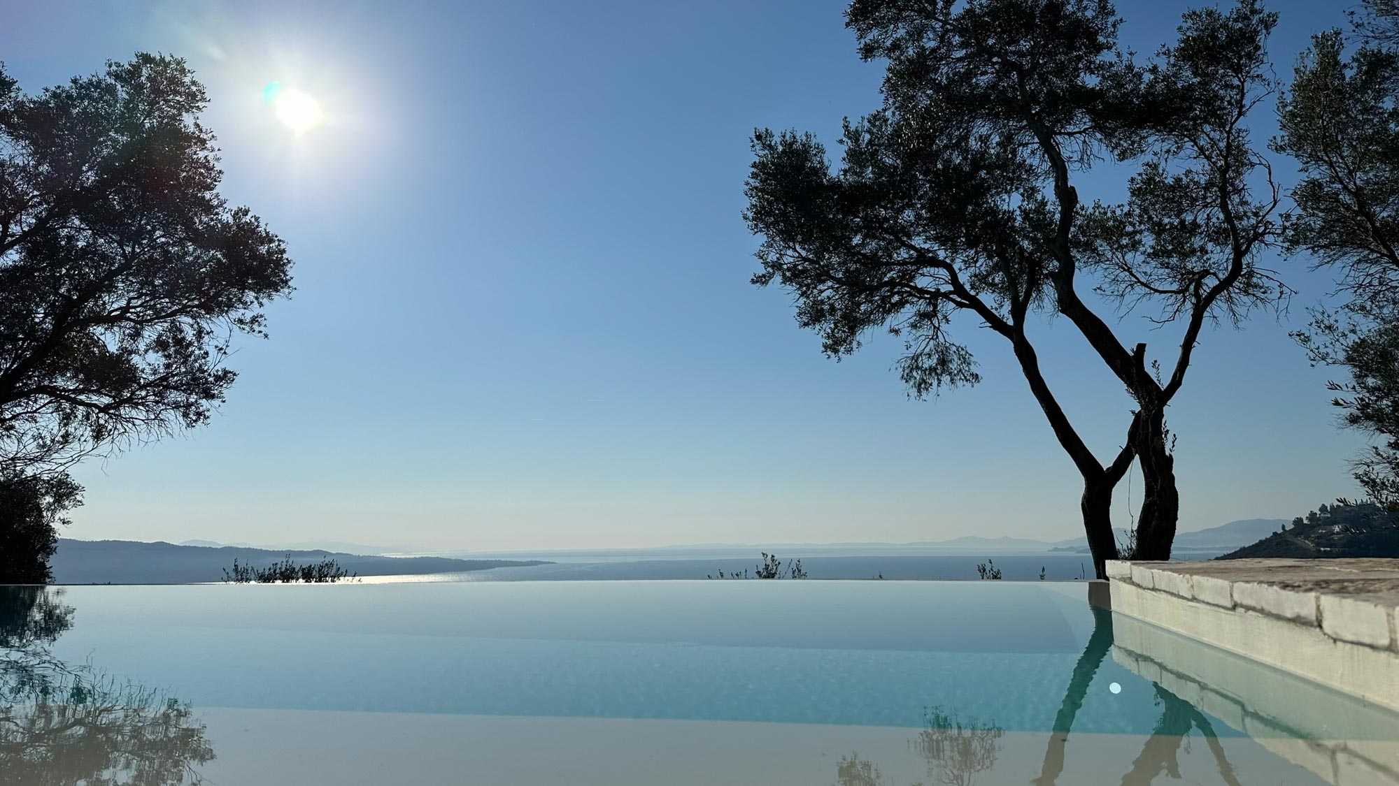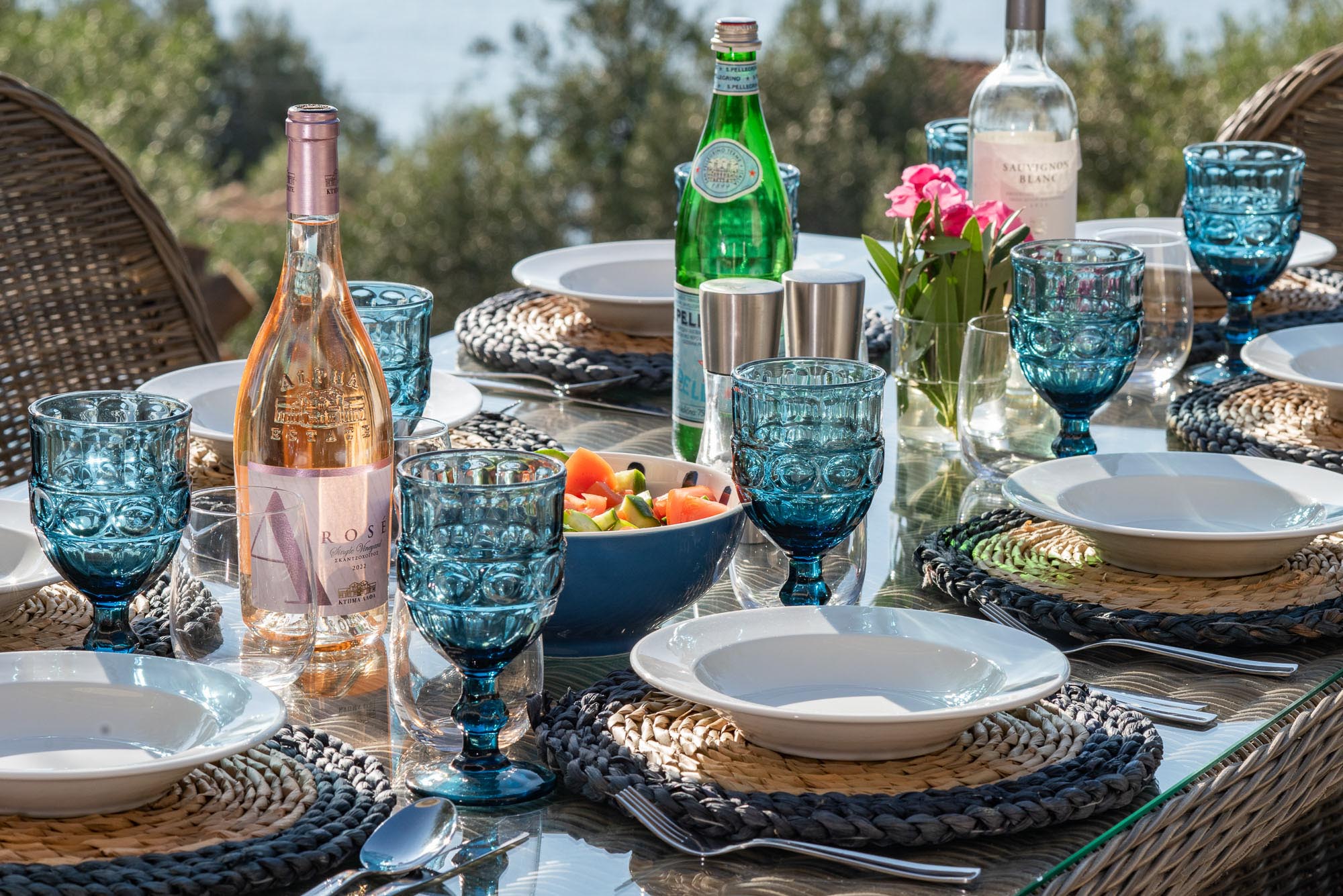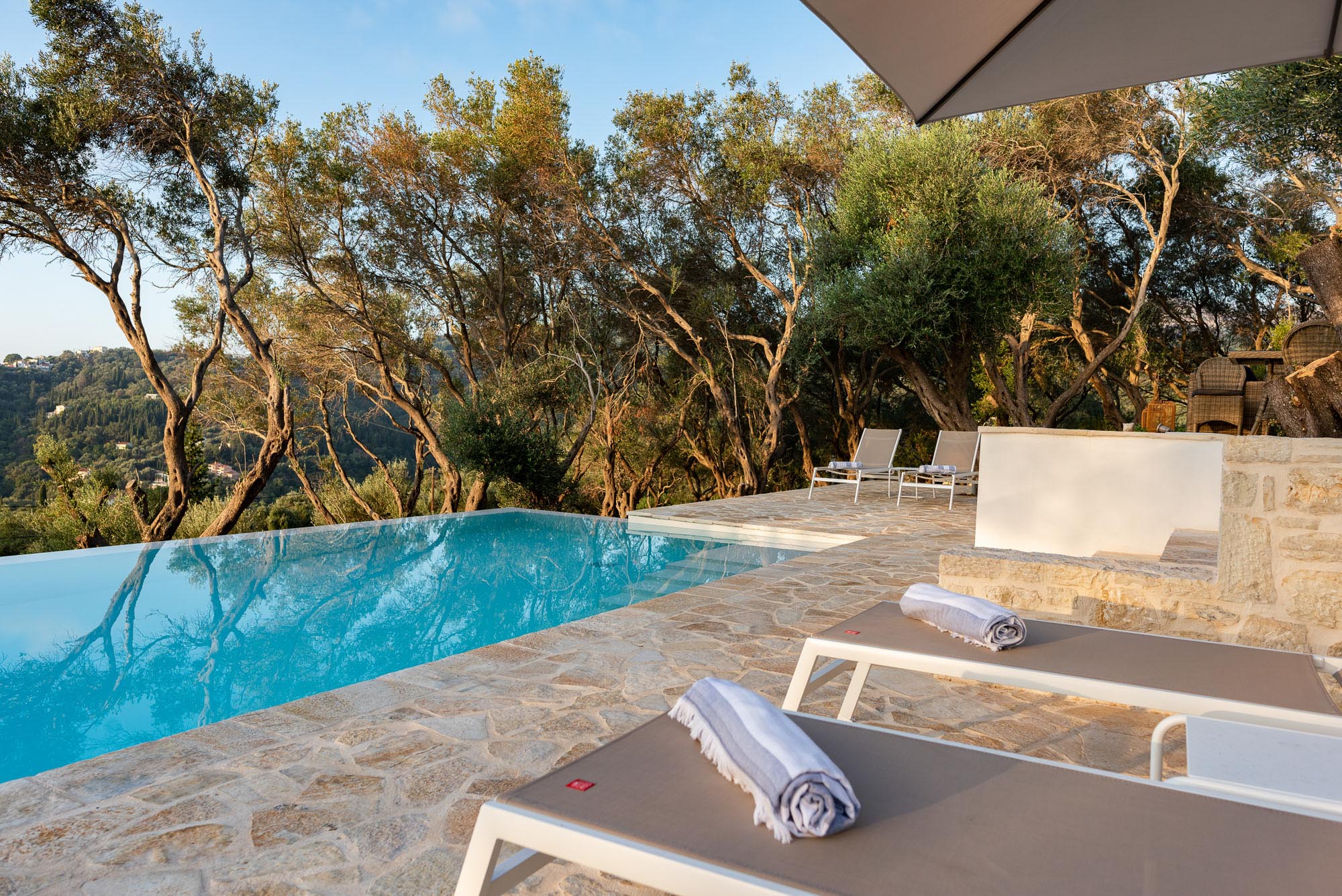 The nearby village of Sinies with a bakery, patisserie, grocery shop and fishmonger is walking distance away, and the popular harbour village of San Stephanos is a short drive away or a 20-minute walk down via a track. There are also the beautiful beaches of Kerasia and Avlaki close by.