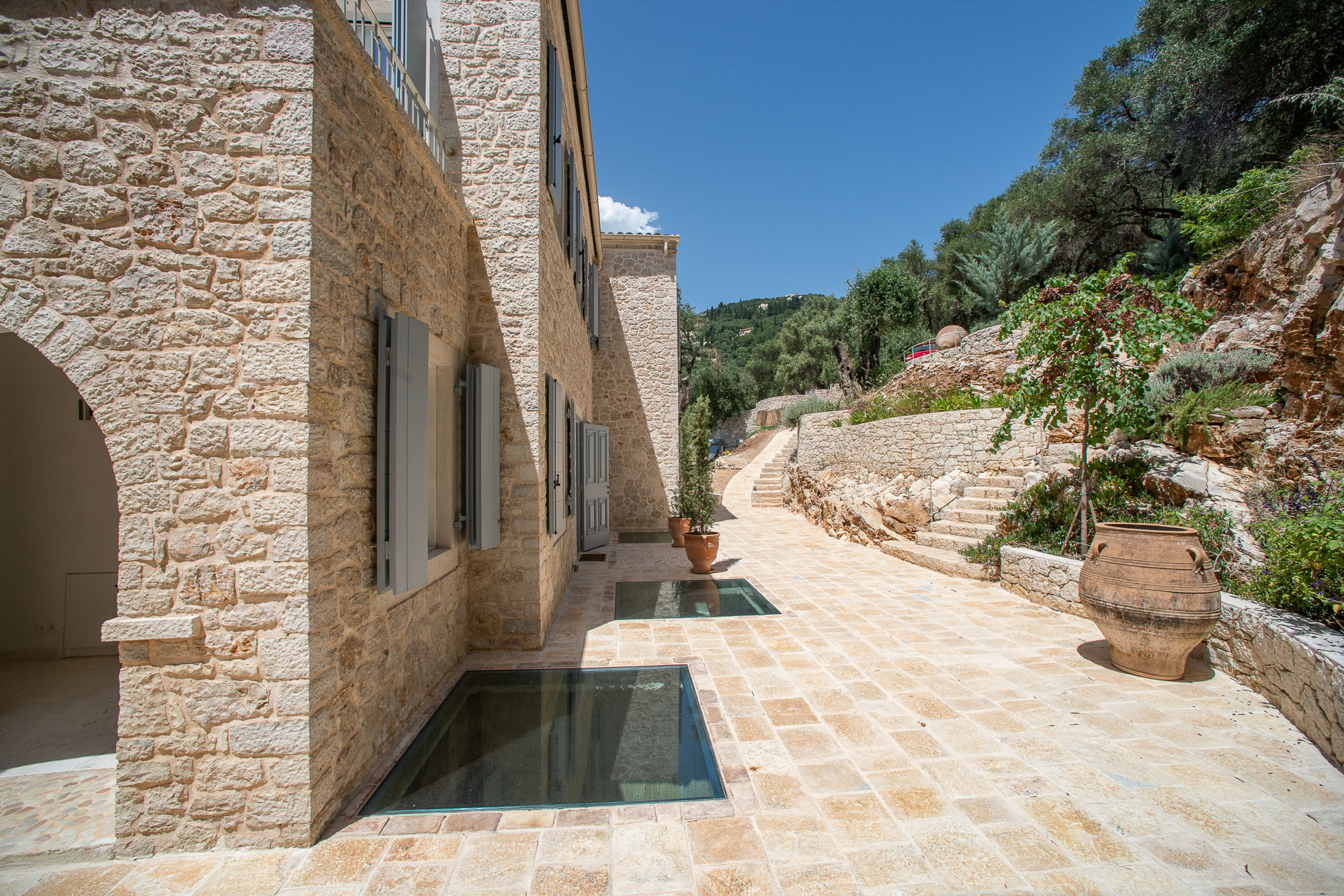 A private jetty extends into the Ionian Sea, allowing for convenient boat arrivals and departures. The expansive outdoor spaces include generous terraces—both covered and uncovered—equipped with comfortable seating and a dining area featuring a built-in BBQ, perfect for alfresco dining while enjoying the beautiful landscape. The 12m infinity pool offers breathtaking vistas of the sea and the distant mainland.