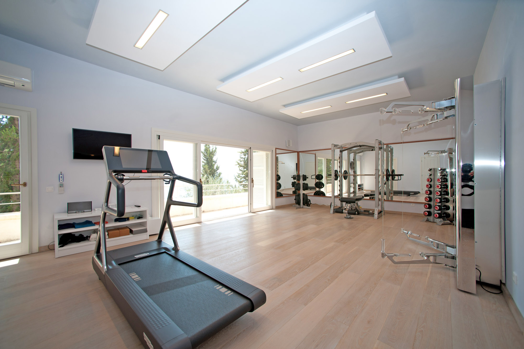 The lower ground floor forms a studio with a kitchen, dining and sitting area as well as a bedroom. The garden annexe has its own external access. There’s a large well-equipped gym, steam room and media room.