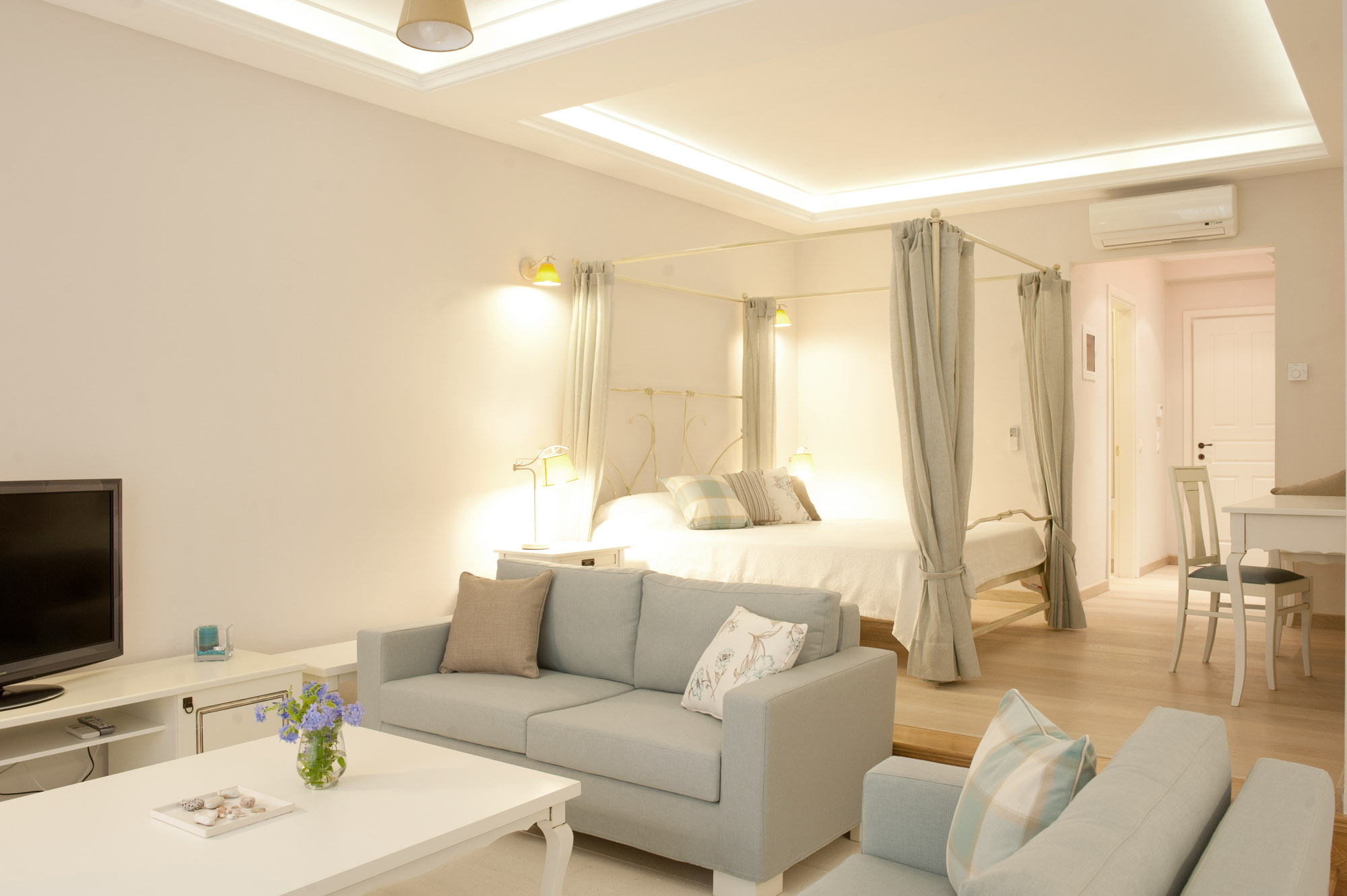 You can also hire a boat from here to explore the picturesque northeast coast. You are very close to St Arsenios stone chapel, built on the rocks at the sea's edge and dating back to before 1650. This area inspired the writing of Lawrence Durrell, who lived nearby with his wife. For watersports and restaurants, head to nearby Kalami. Kassiopi and St Stephano are approximately a 20-minute drive away.