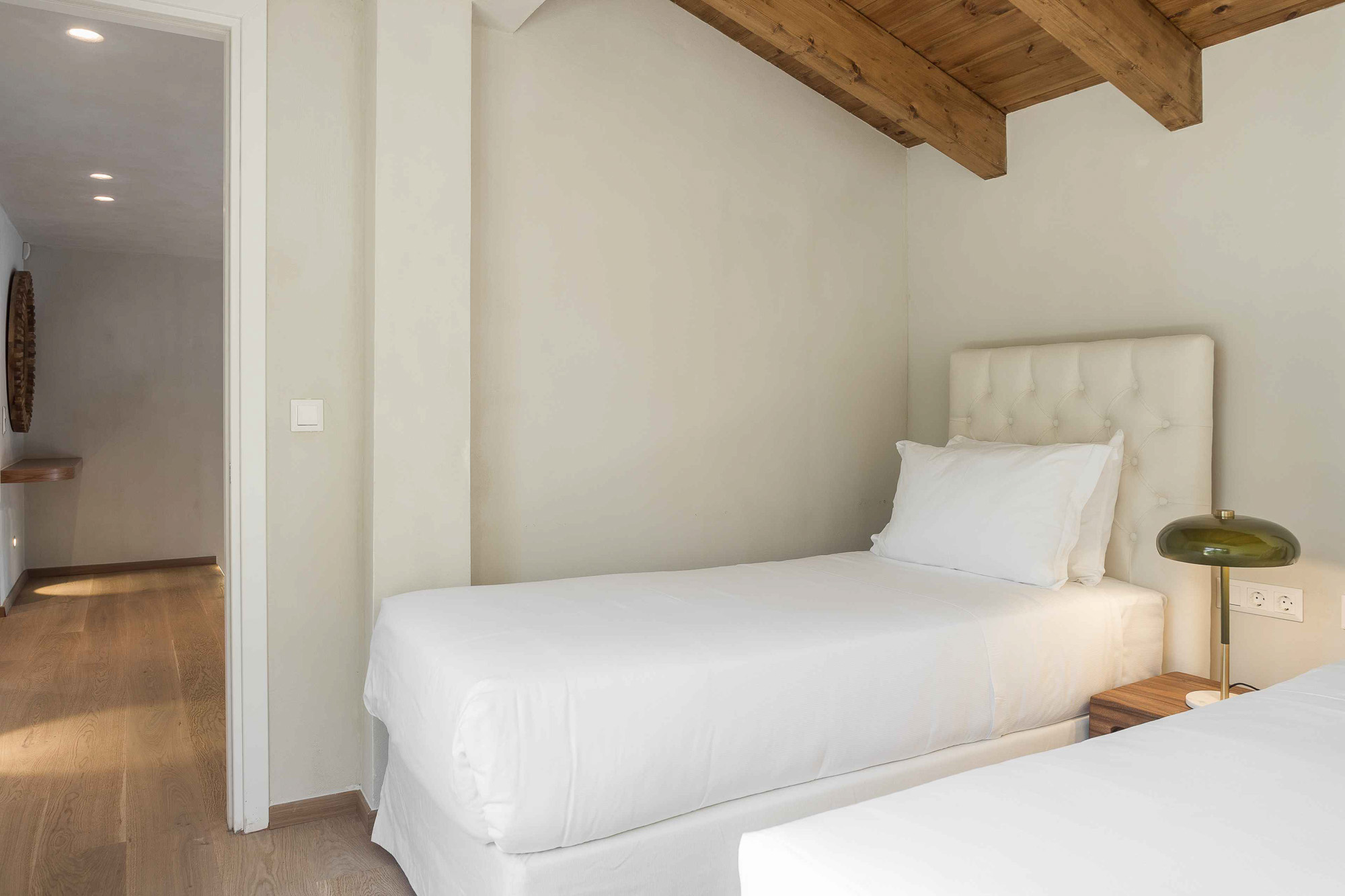 Bedrooms are split across two floors in the main house, and one in the guest house with separate garden access. The open-plan living area has a very well equipped kitchen and large floor to ceiling glass doors opening to the pool terrace, so it feels light and airy.