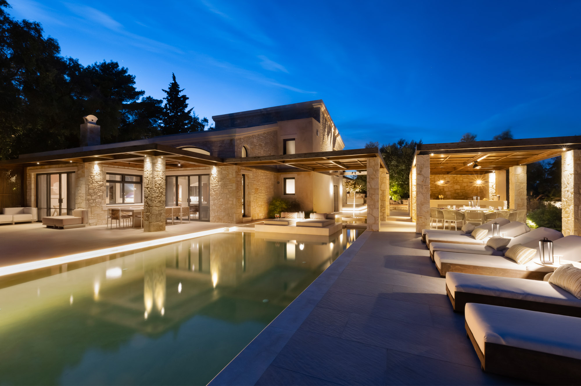 Completely redesigned in 2023, this contemporary, beautifully designed villa includes the services of a private chef and concierge, and its just a short drive to the beaches at Avlaki and Kerasia.