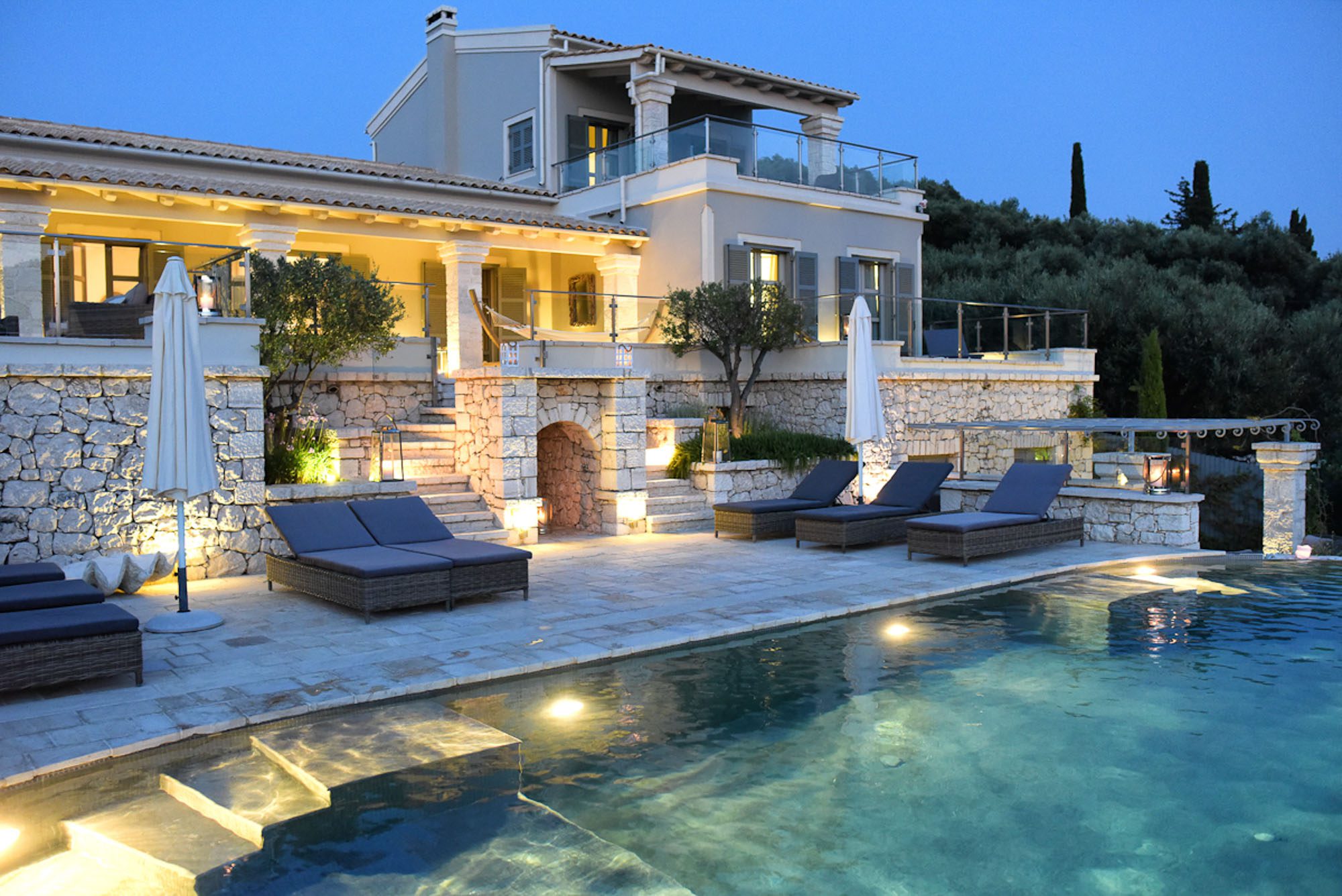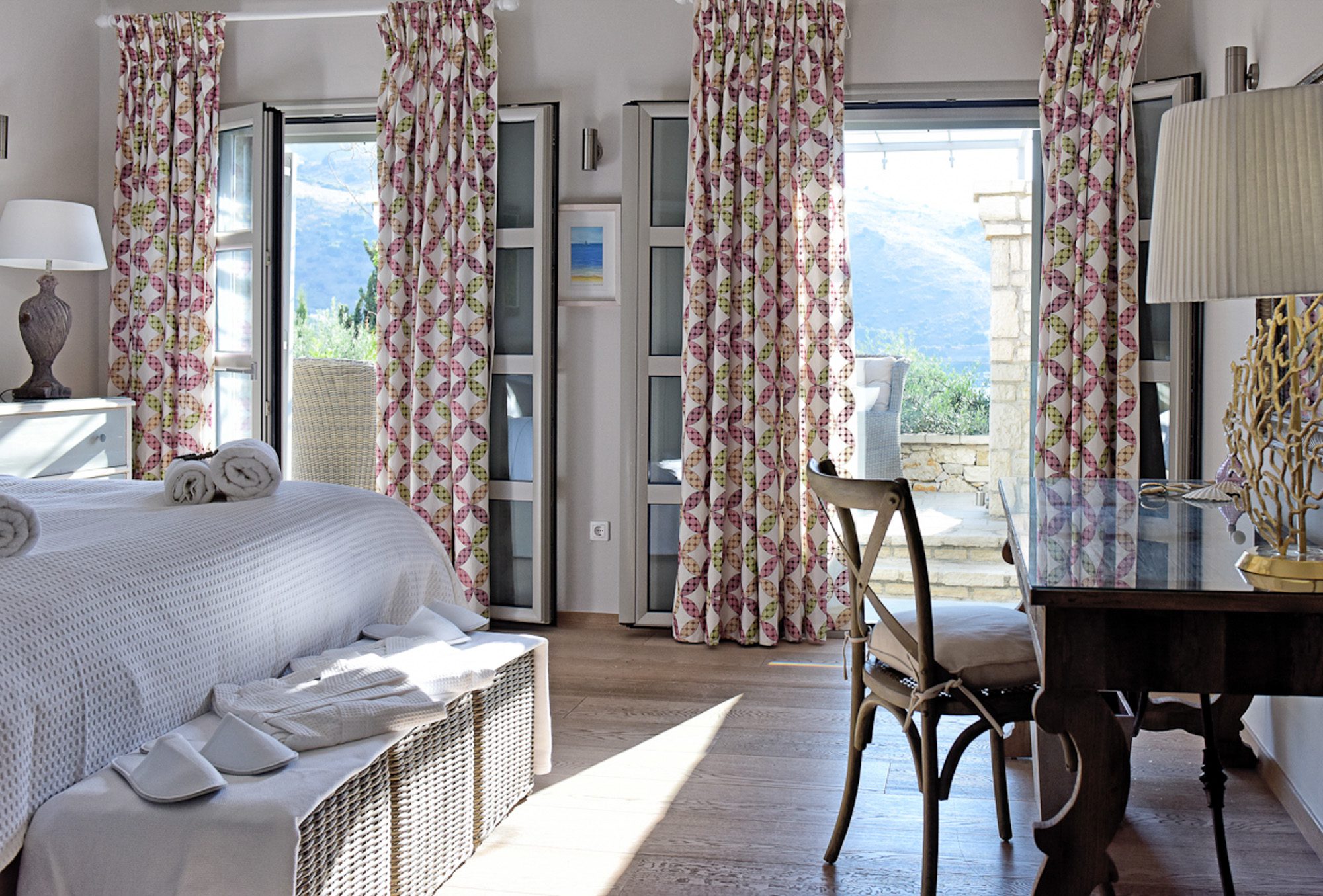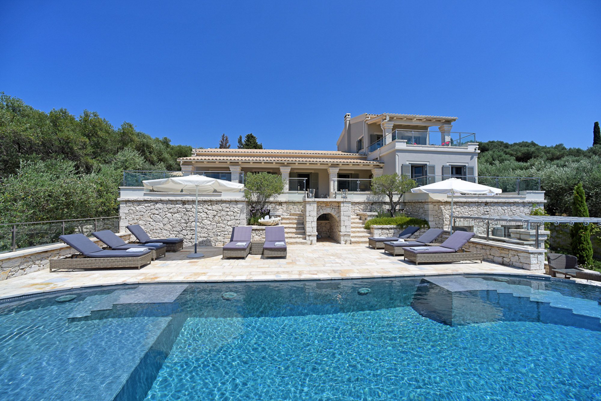 Every room has an elegant, comfortable feel, with light, matching fabrics and furnishings. There's an elegant, double-height, open-plan sitting room with an impressive stone fireplace and dining area for 10. A second sitting room with large sofas and a home cinema screen is a great place for teenagers to have their own space. Five bedrooms are in the main house and one in the annexe; the two master bedrooms have private terraces. A small gym and jacuzzi in the house are added attractions.