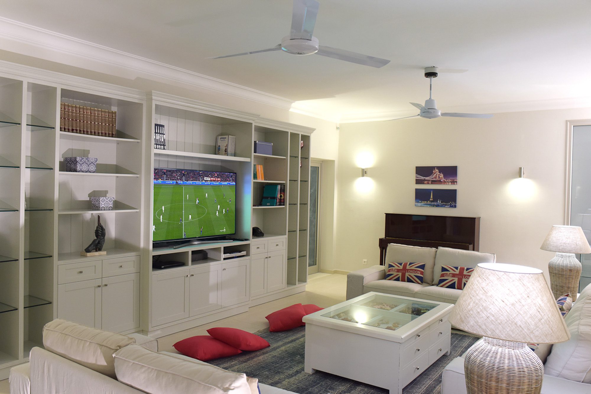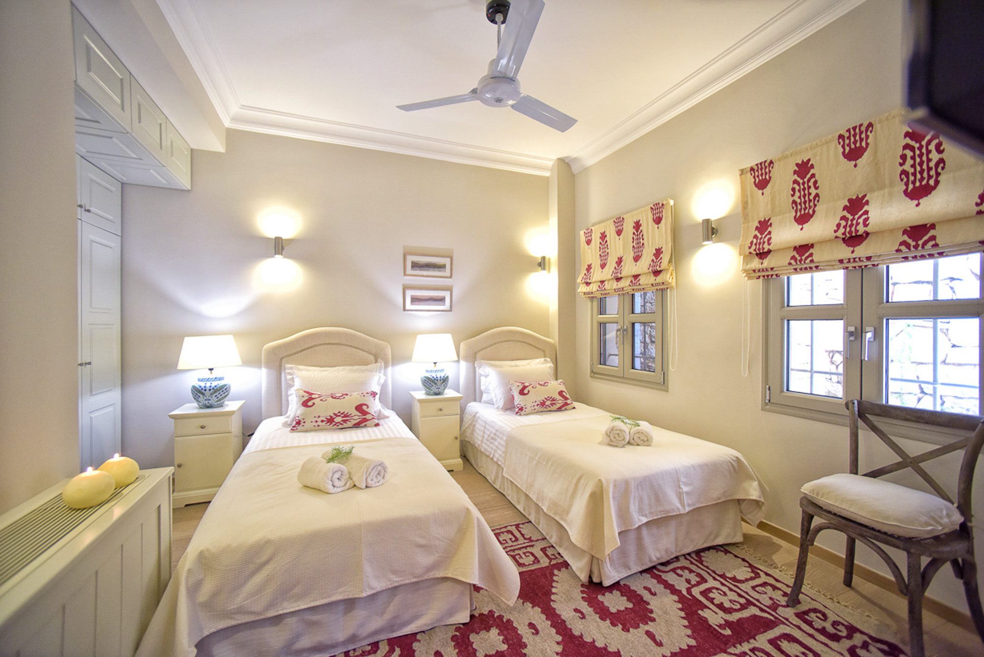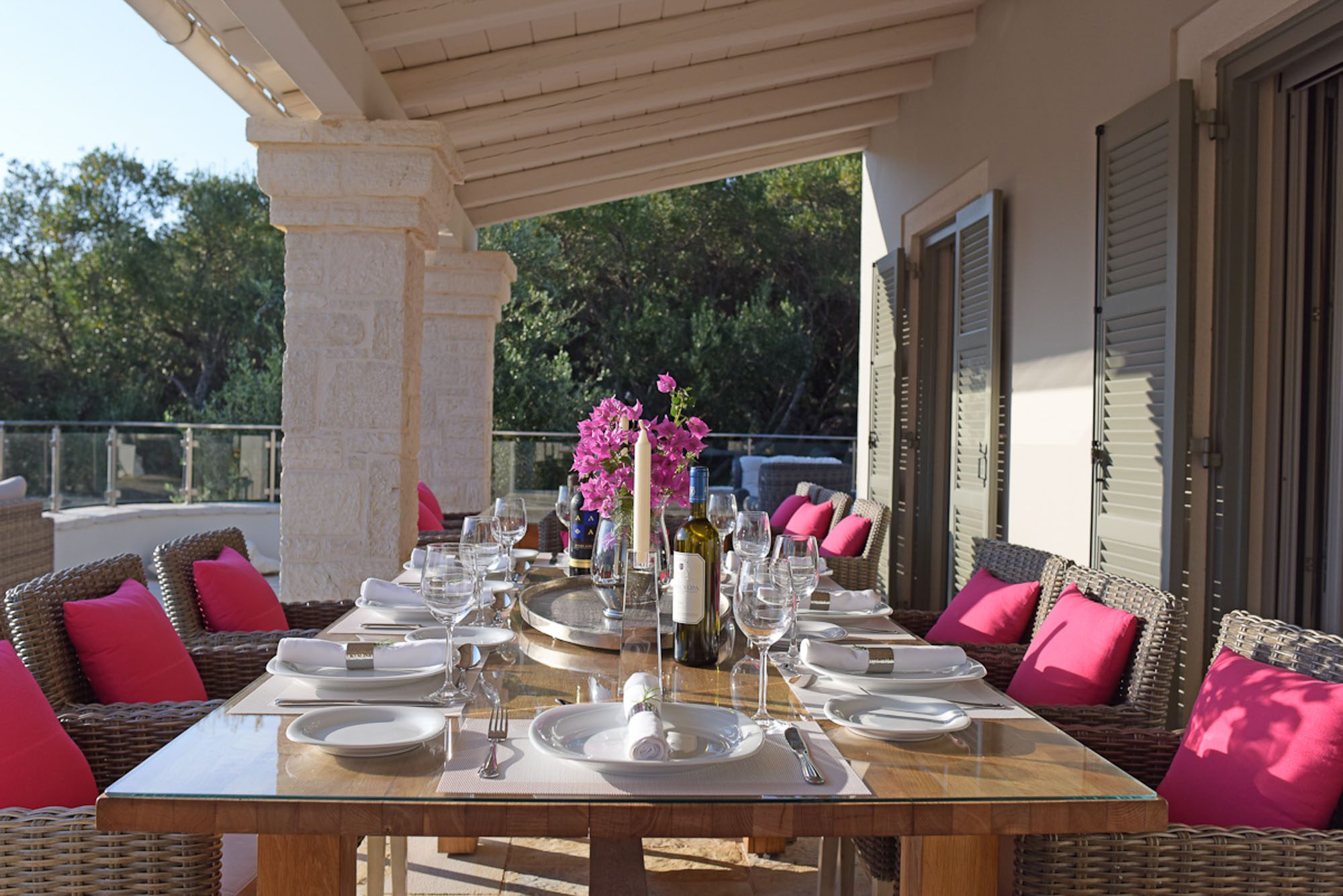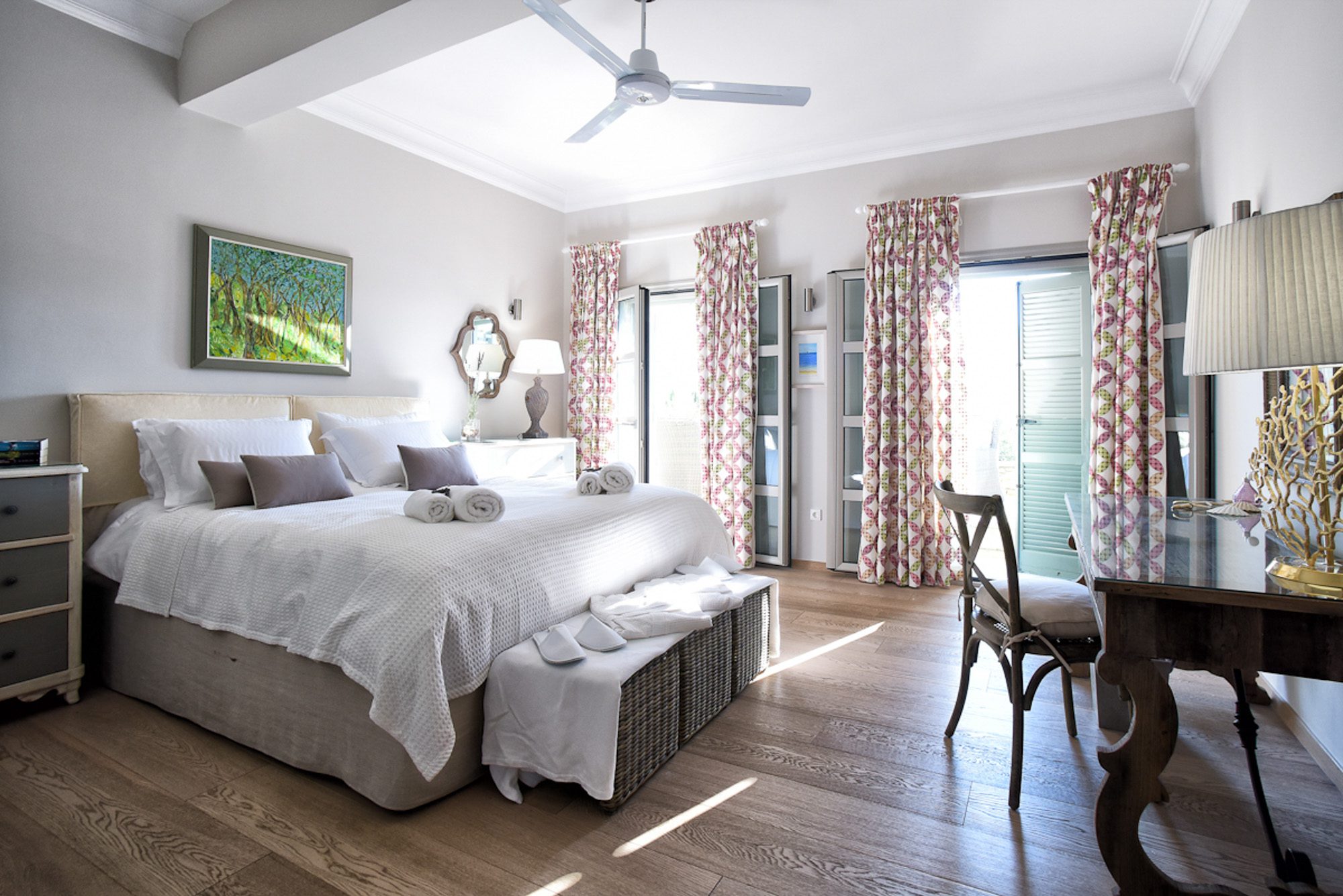 Every room has an elegant, comfortable feel, with light, matching fabrics and furnishings. There's an elegant, double-height, open-plan sitting room with an impressive stone fireplace and dining area for 10. A second sitting room with large sofas and a home cinema screen is a great place for teenagers to have their own space. Five bedrooms are in the main house and one in the annexe; the two master bedrooms have private terraces. A small gym and jacuzzi in the house are added attractions.