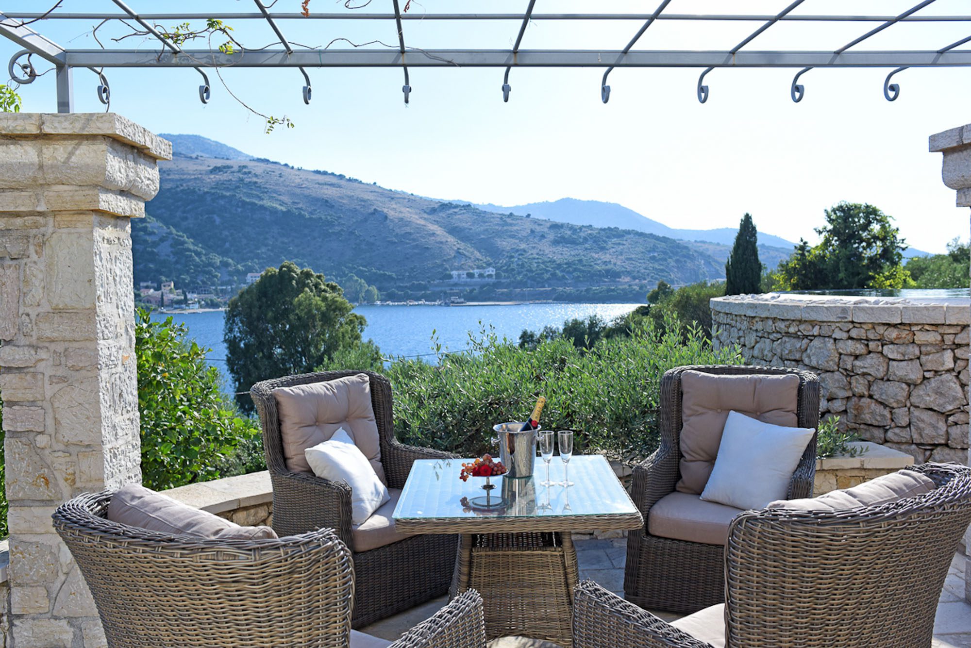 Unsurprisingly, this is one of our most popular Corfiot villas. It's just set back from the waterfront, with access from the bottom of the garden to a beach and a jetty to moor your own hire boat. In just a few minutes' walk, you can be at one of Kassiopi's finest restaurants, Trilogia, where you can enjoy delicious food and beautiful sunsets.