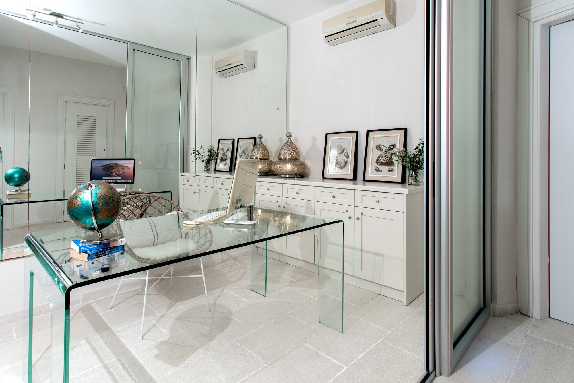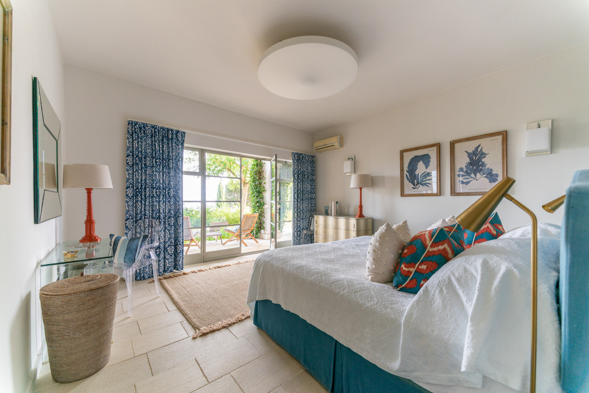 Four further en-suite bedrooms, TV/playroom, office and a utility room are located on the garden level. The bedrooms and playroom all benefit from access to a sunny terrace and views to the garden beyond. The interiors throughout are of soft chalky tones with contemporary and vintage furnishings, fabrics and artwork sourced from around the world adding touches of colour and rich texture.