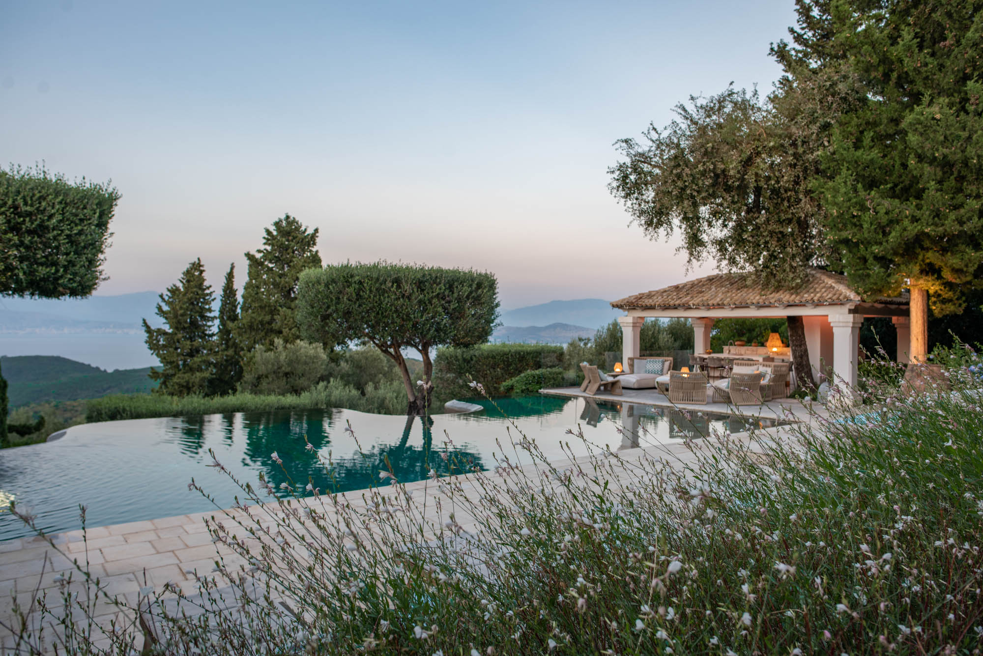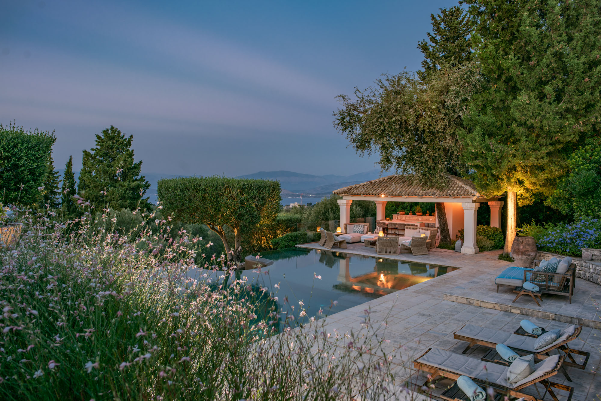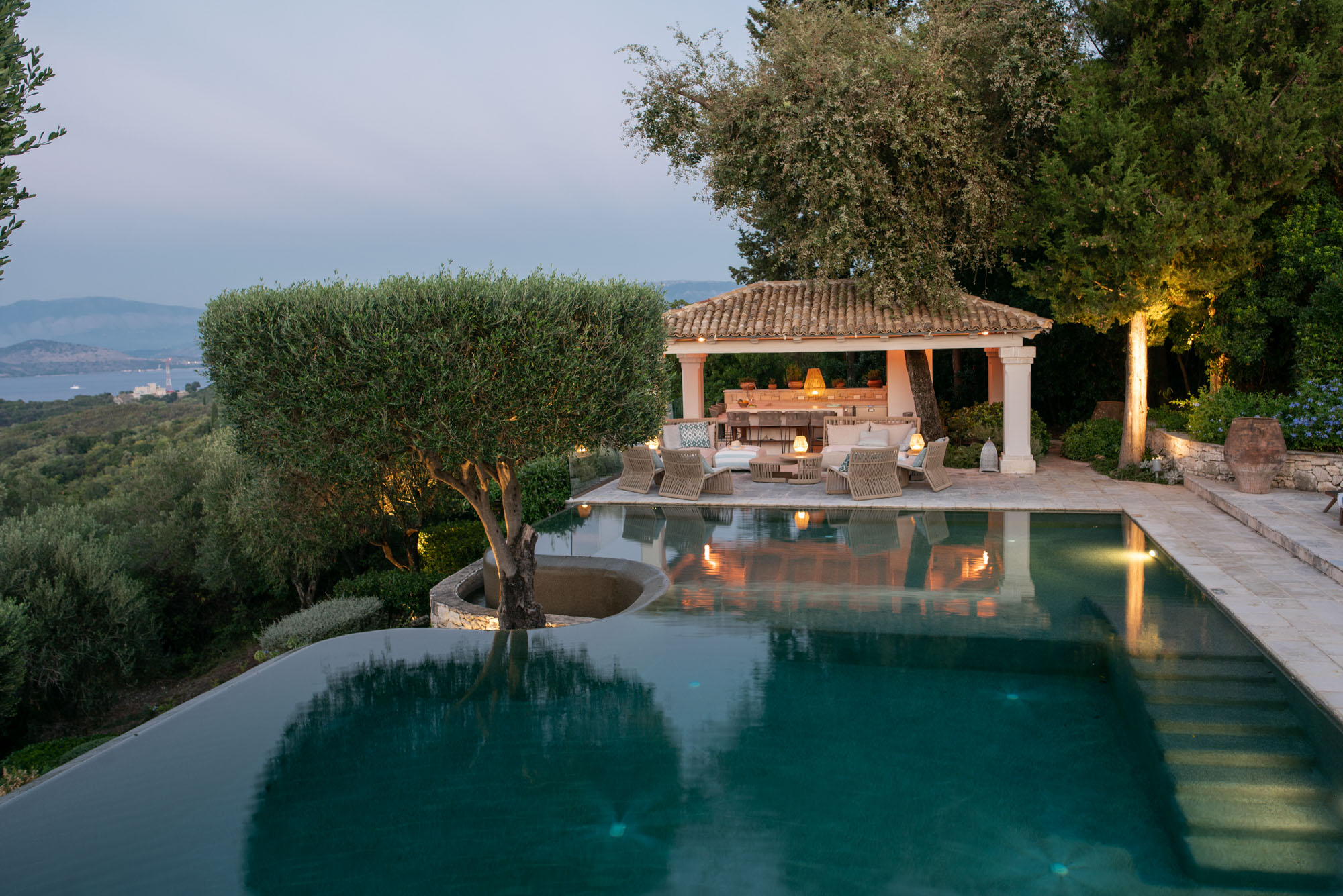 Nearby but within another 20 minute walk from the villa or short drive lies the village of Sinies where you will find a supermarket, bakery, fish shop, cafe and wine cave. The pretty harbour village of San Stephano is 5 minutes by car offering a number of restaurants, shops, bars and boat hire etc. Vibrant Kassiopi with a greater range of shops, bars, restaurants, cafes, harbour and beaches etc is approximately 10 mins drive.