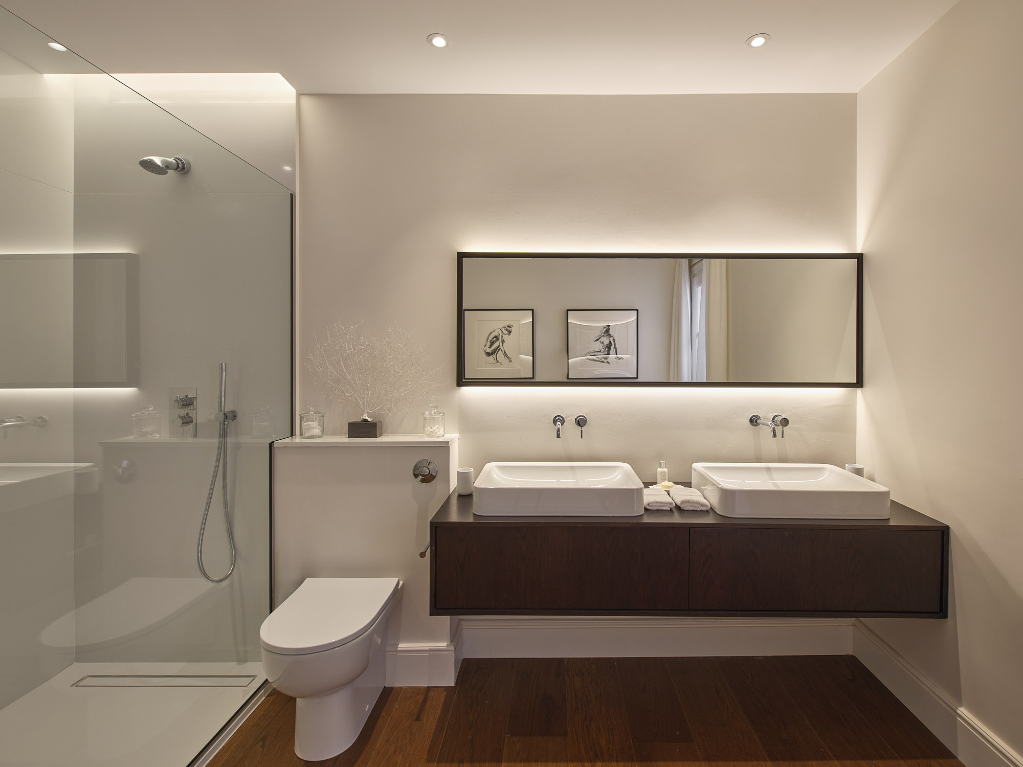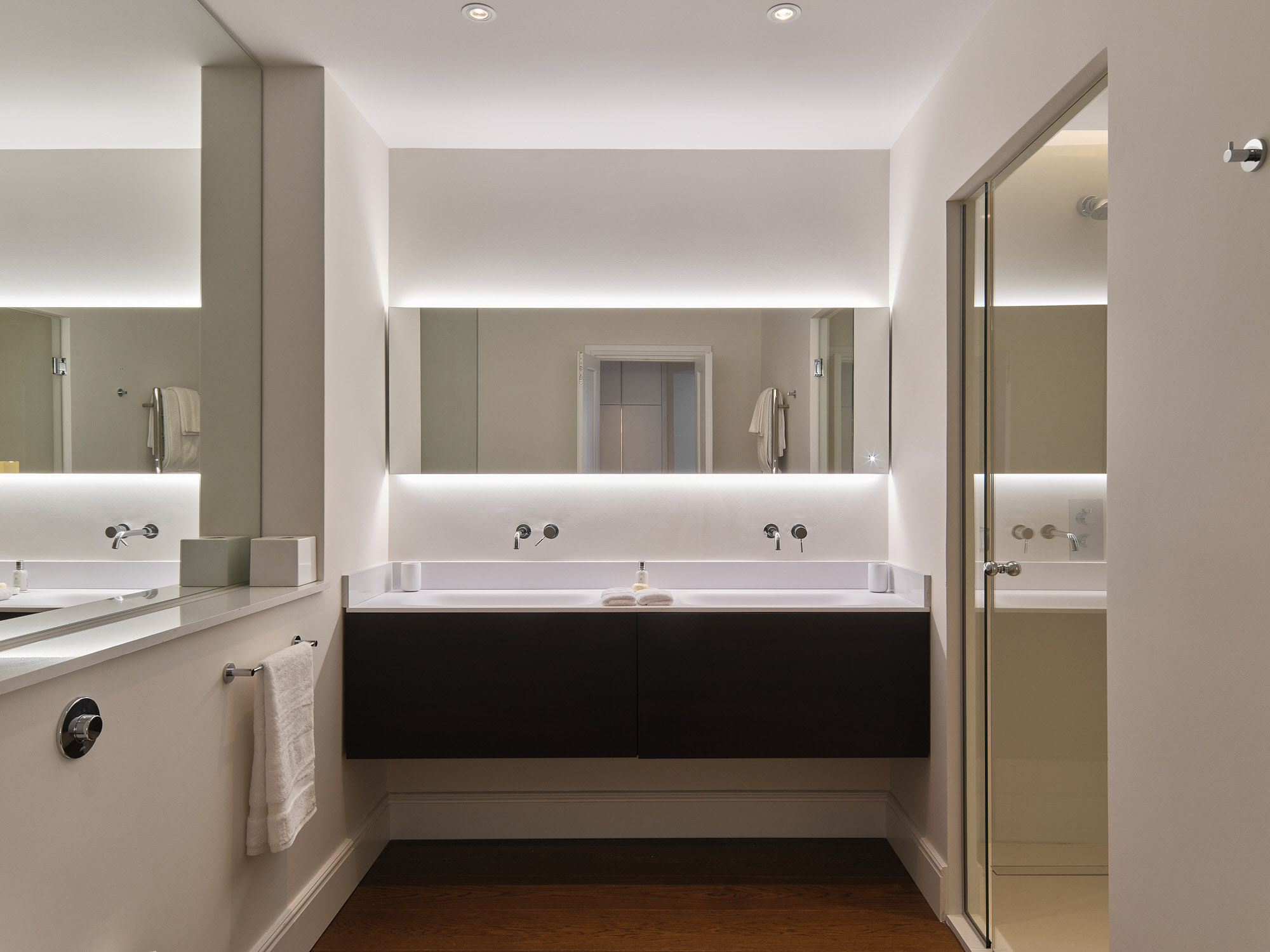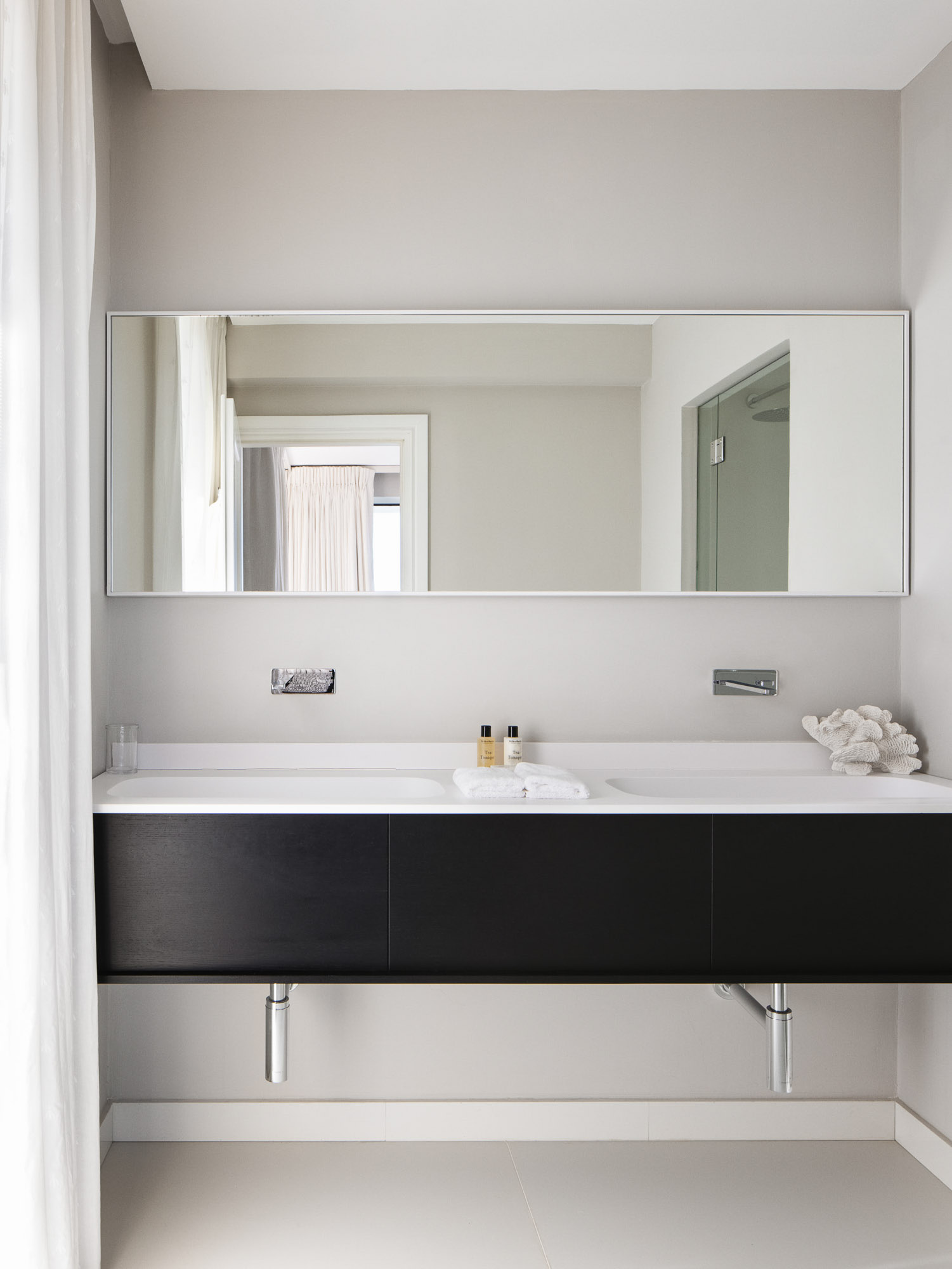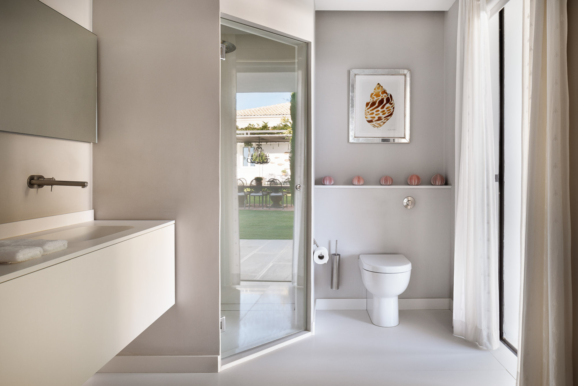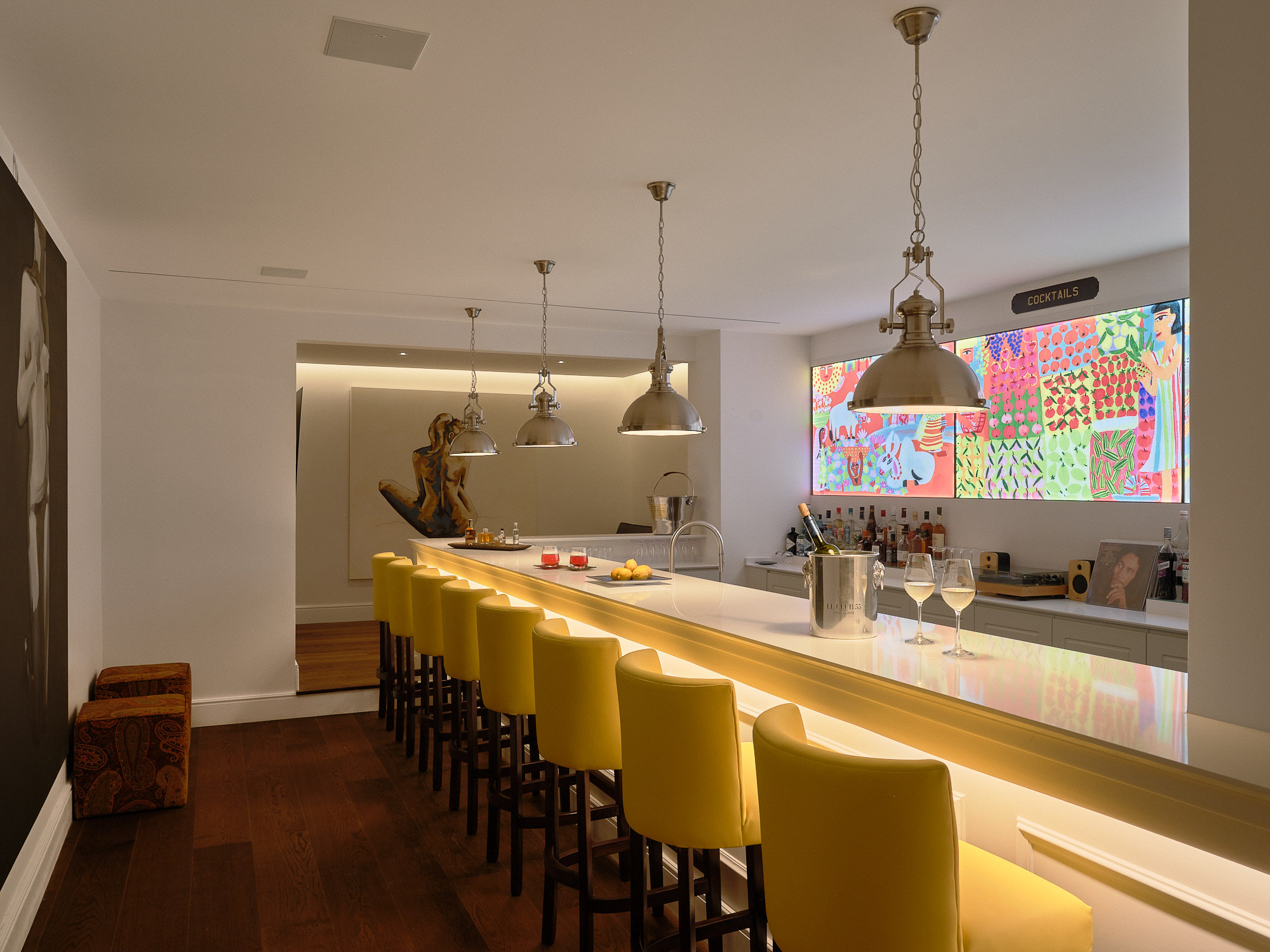The main villa houses five exquisite bedroom suites. The master bedroom occupies the ground floor, with two further suites on a mezzanine floor. On the lower ground level, two additional bedroom suites overlook the pool and enjoy beautiful sea views. This level also hosts a private cinema, a curated library, a gym, and a large indoor bar with a cosy TV snug. The separate guest house comprises three further en suite bedrooms, a spacious open-plan living/dining space, and a sleek, modern kitchen — all flowing seamlessly onto a panoramic south-facing terrace.