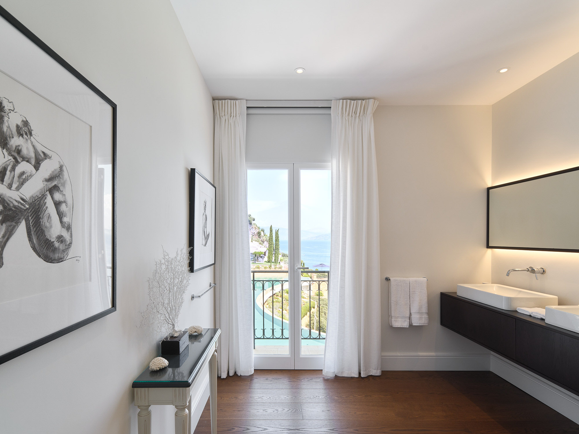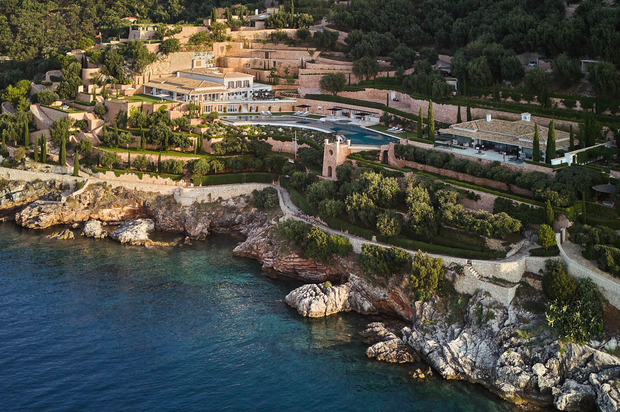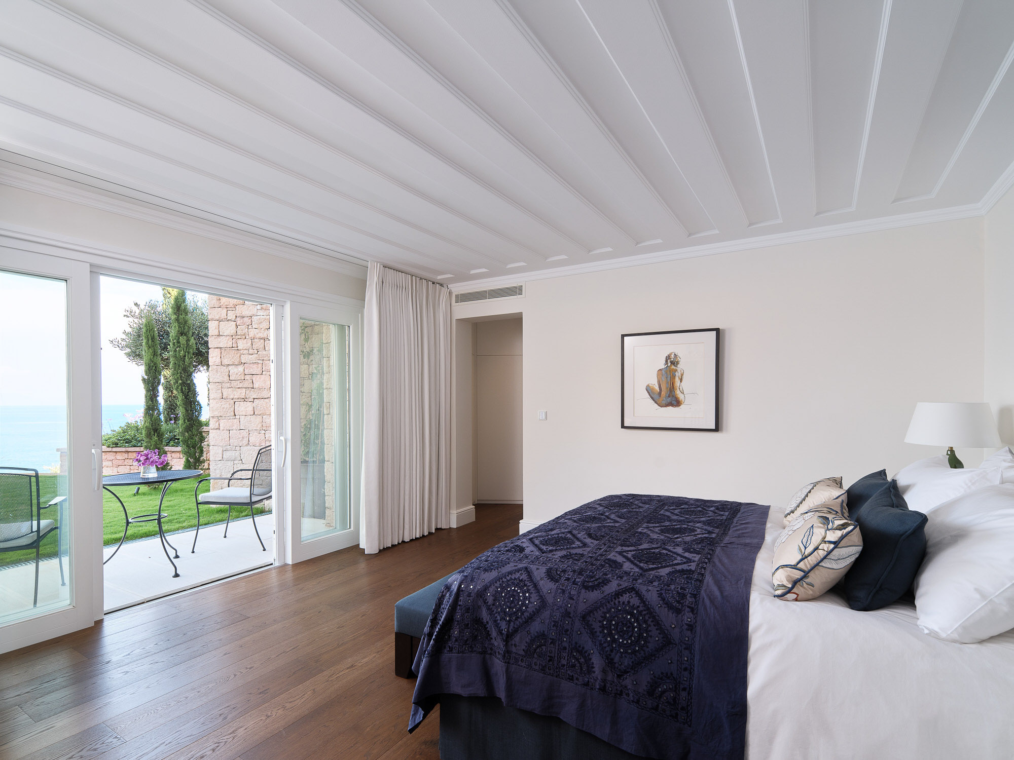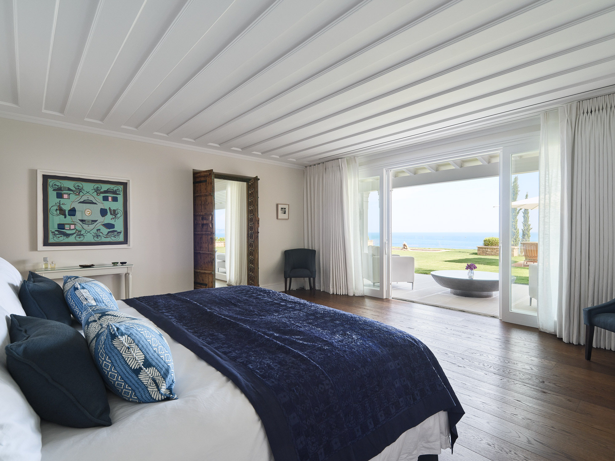 Welcoming up to twelve guests across eight sumptuous bedroom suites, the property consists of a spectacular main villa and an elegant guest house. From the moment you step through the villa’s carved Indian doors, framed by water features and natural stone walls, a sense of calm envelopes you. With direct sea access, a private jetty, and world-class facilities including an extraordinary 65m infinity pool, this is a rare escape that pairs Mediterranean beauty with considered architectural grace.