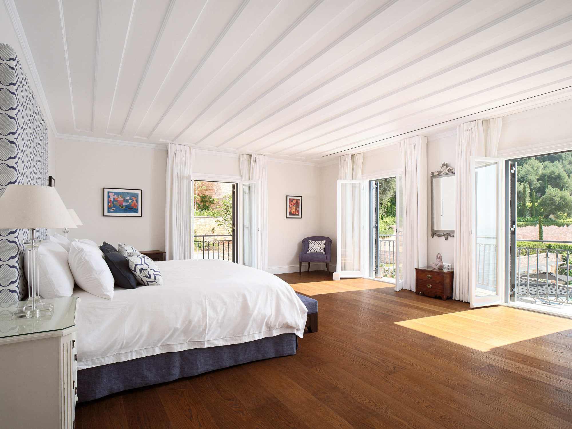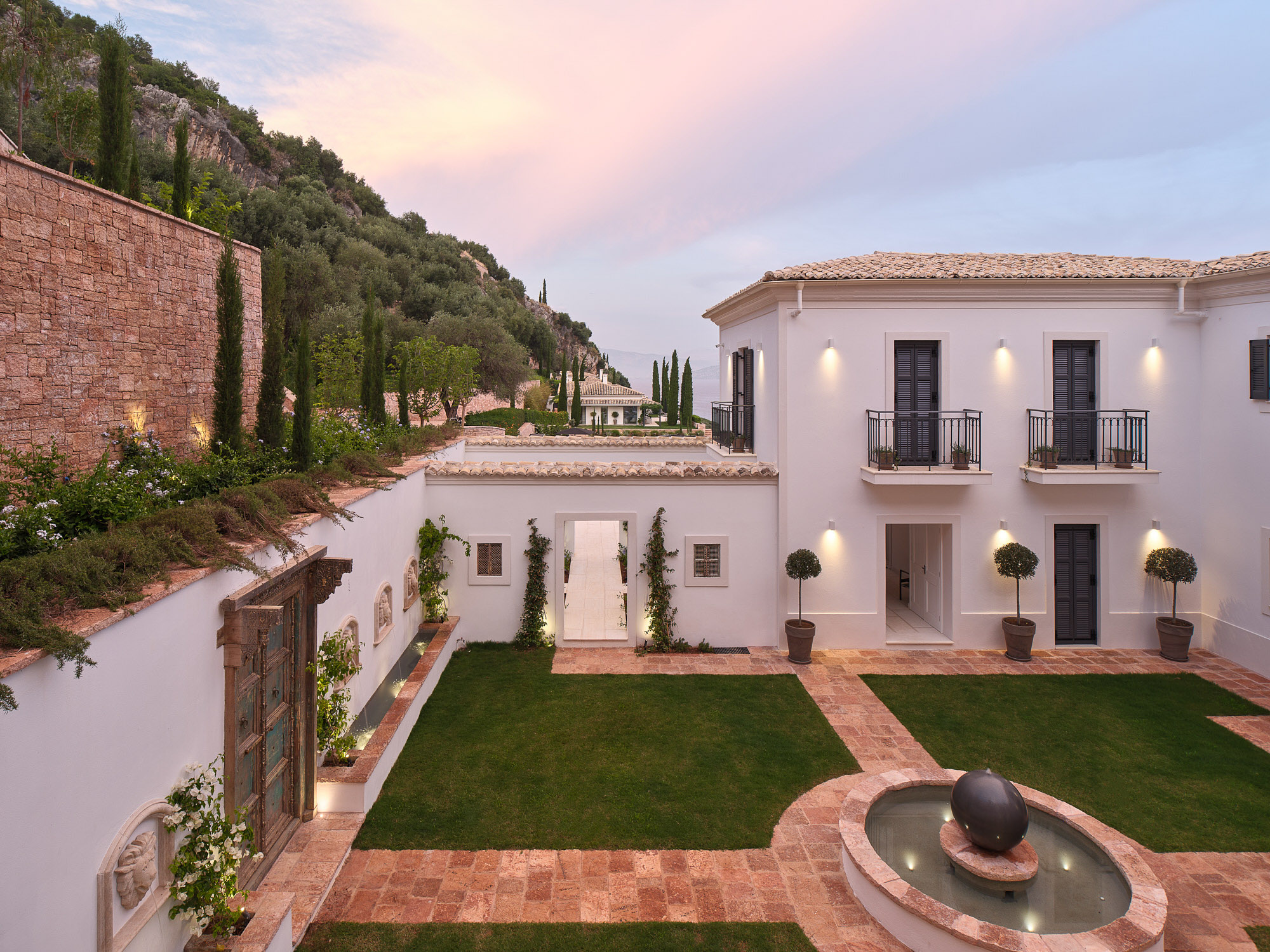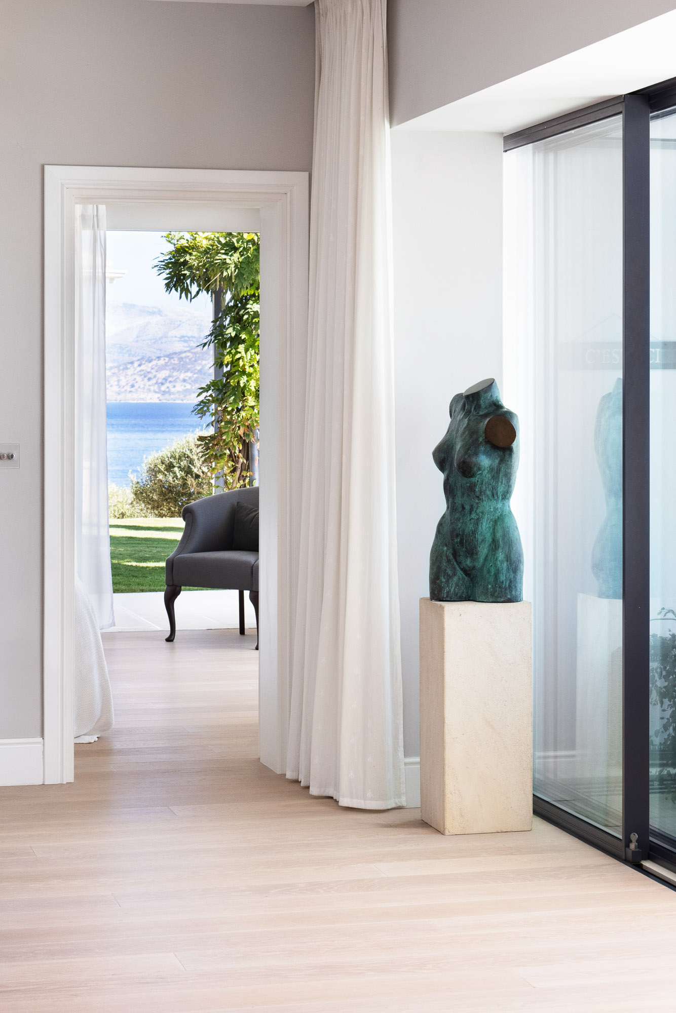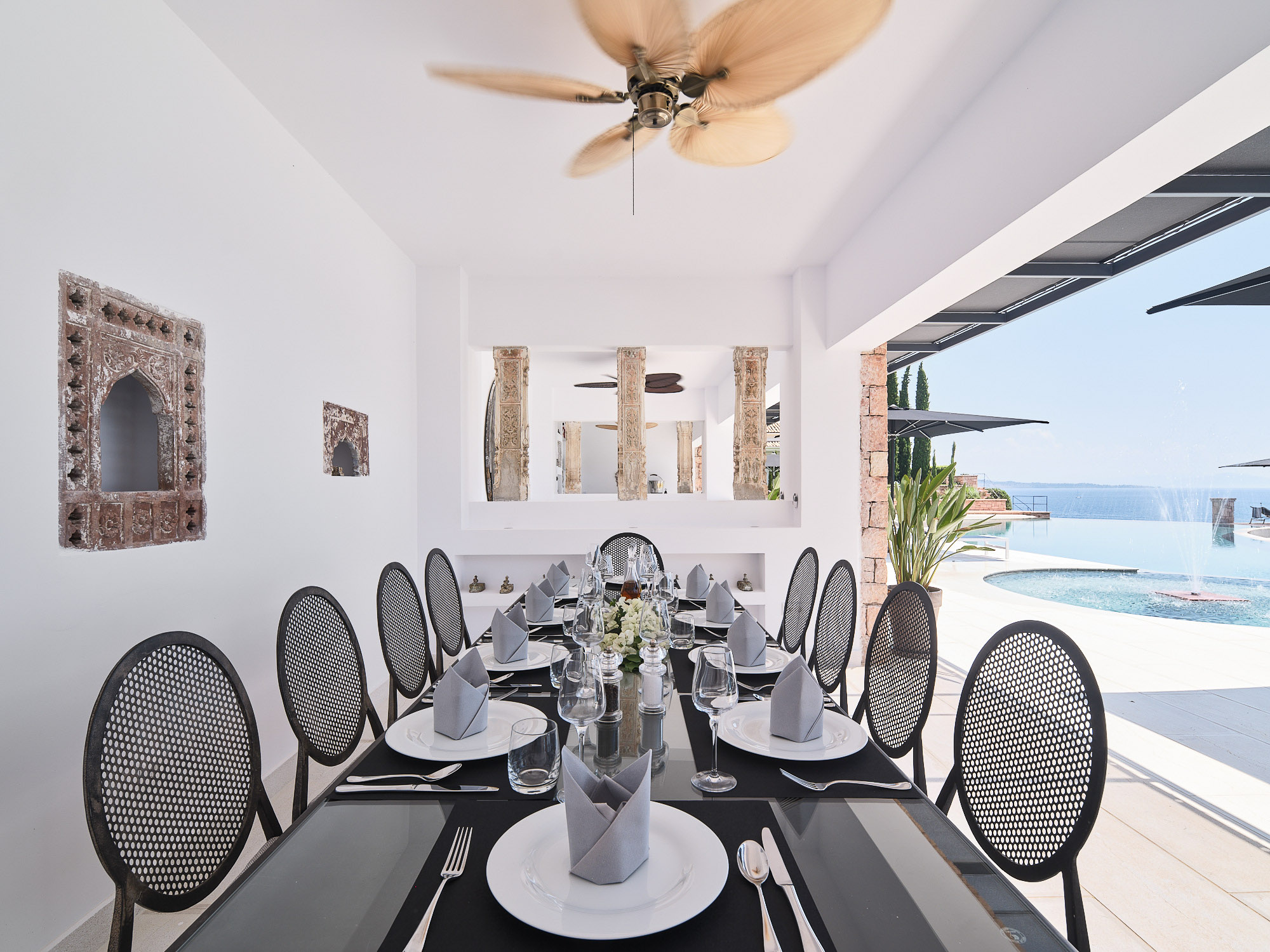 Welcoming up to twelve guests across eight sumptuous bedroom suites, the property consists of a spectacular main villa and an elegant guest house. From the moment you step through the villa’s carved Indian doors, framed by water features and natural stone walls, a sense of calm envelopes you. With direct sea access, a private jetty, and world-class facilities including an extraordinary 65m infinity pool, this is a rare escape that pairs Mediterranean beauty with considered architectural grace.