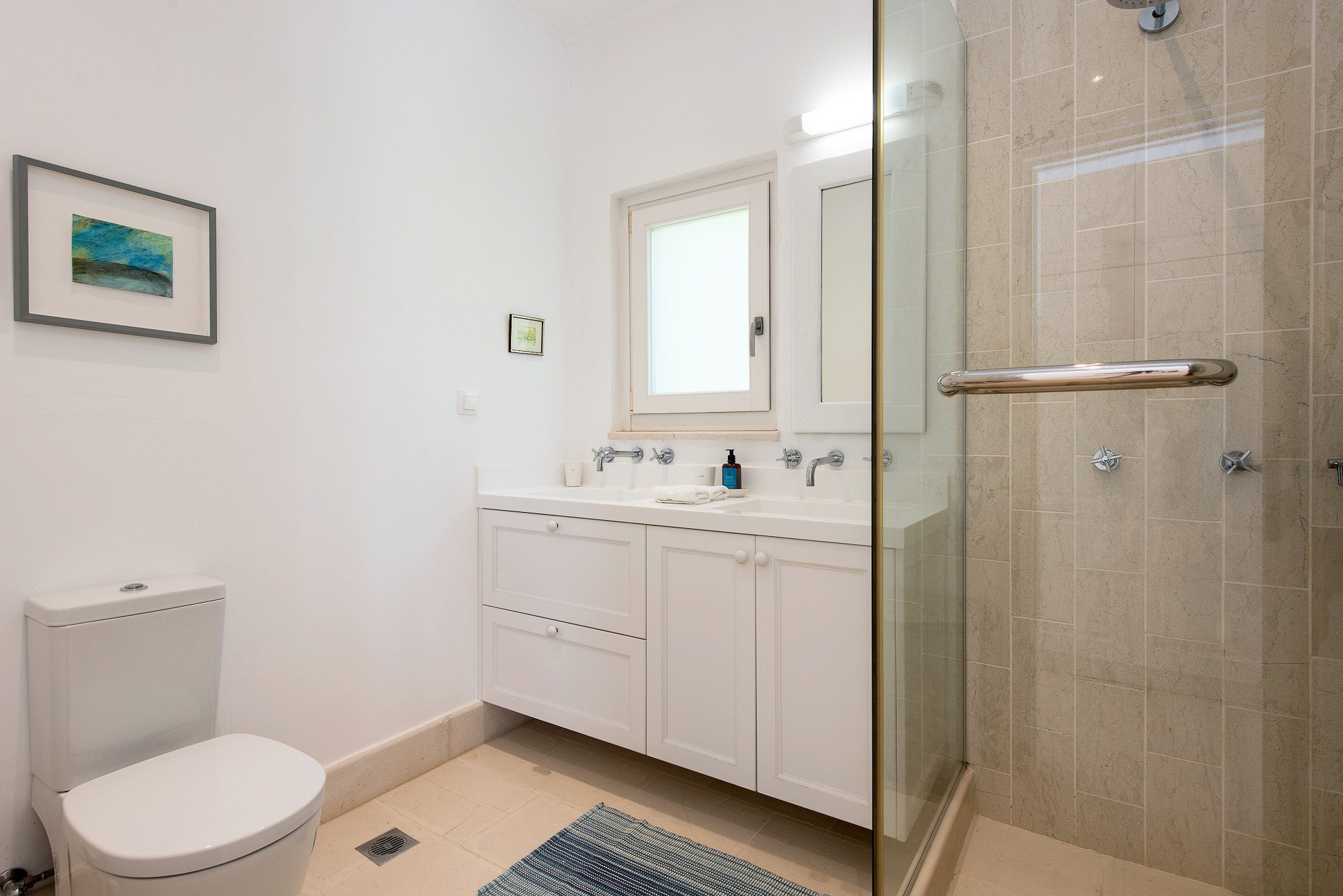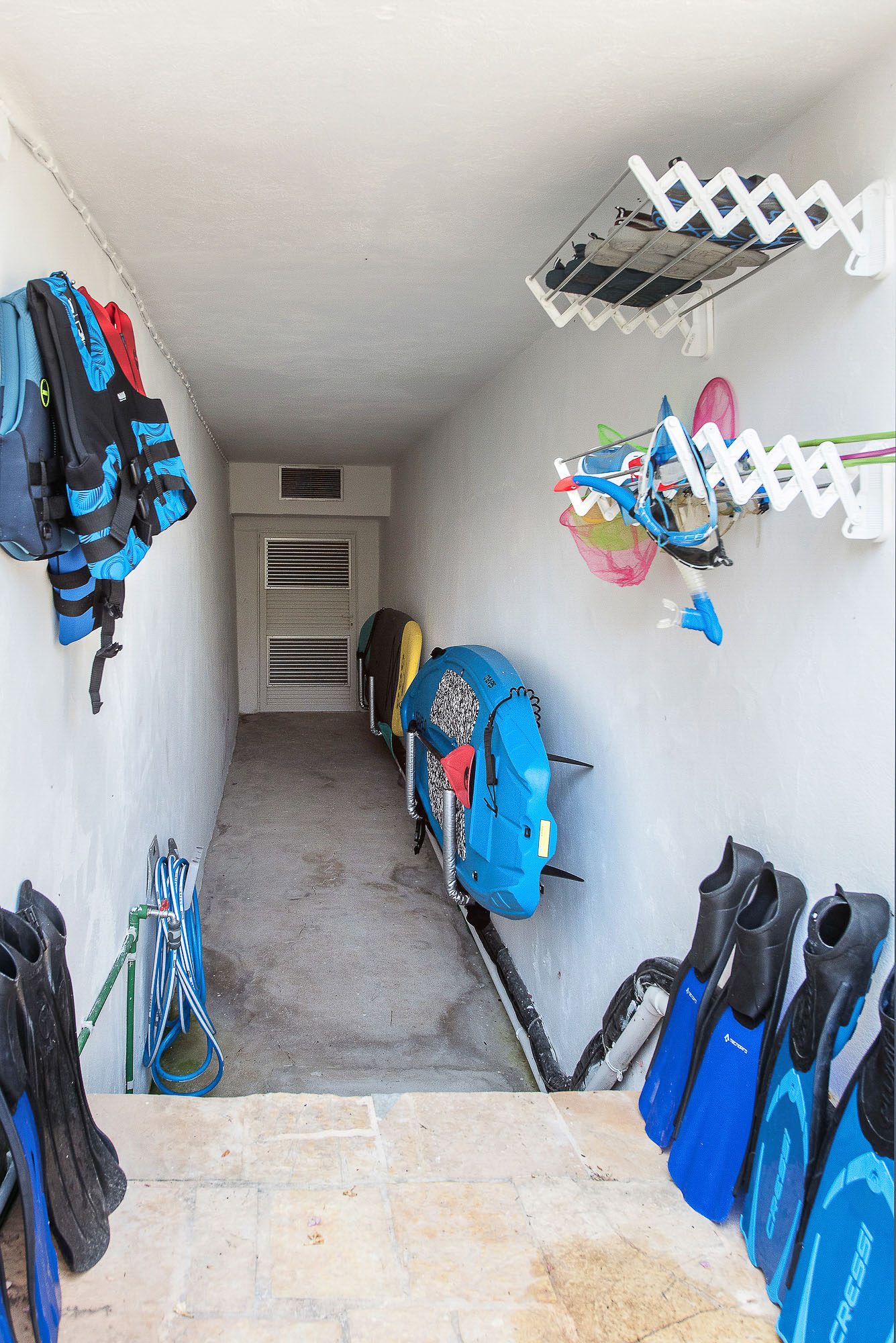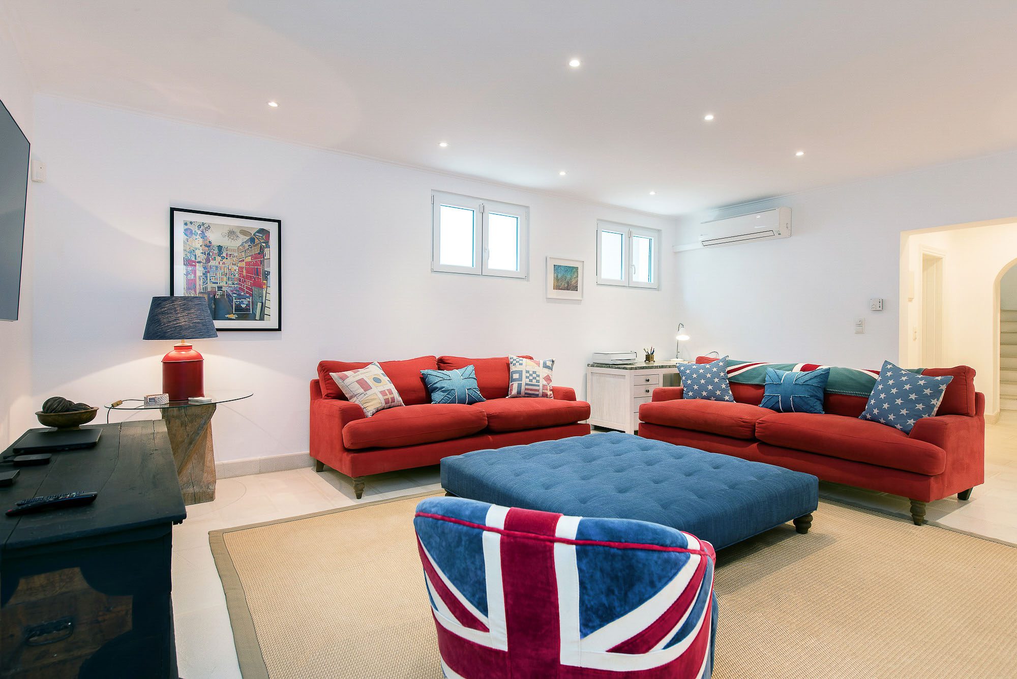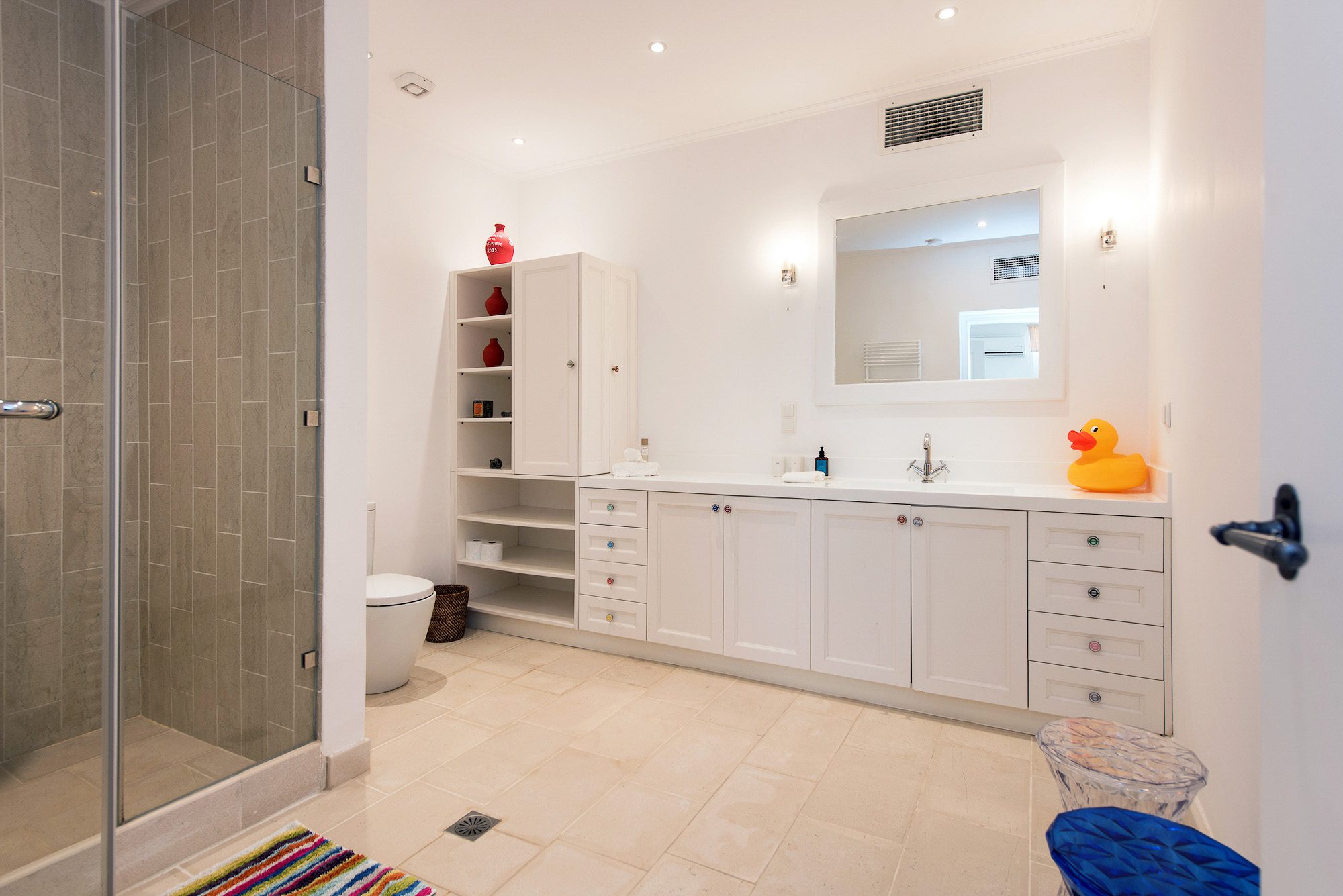 There are five good-sized en suite bedrooms, all with air conditioning and en suite bathrooms. The lower ground floor is great for kids or teens, housing a media room, one of the bedrooms, a large family bathroom and a small gym.