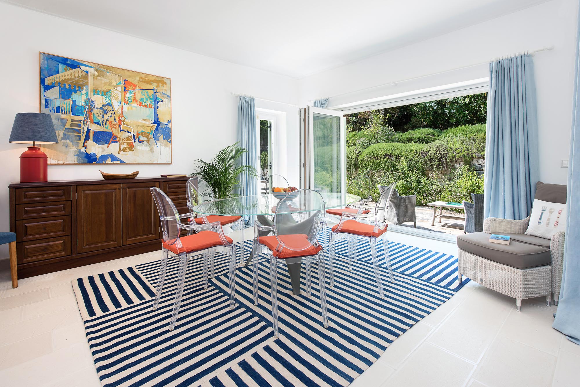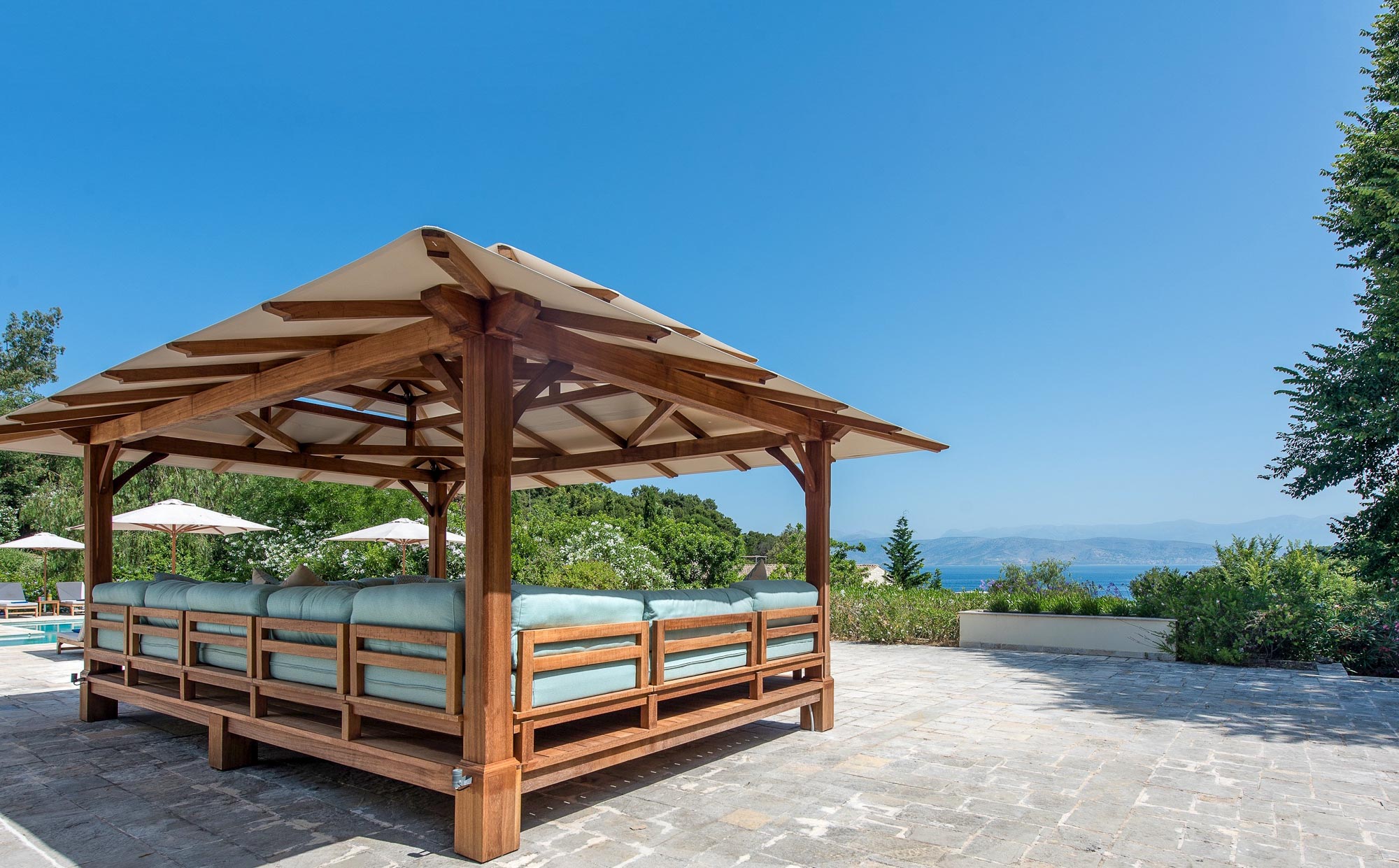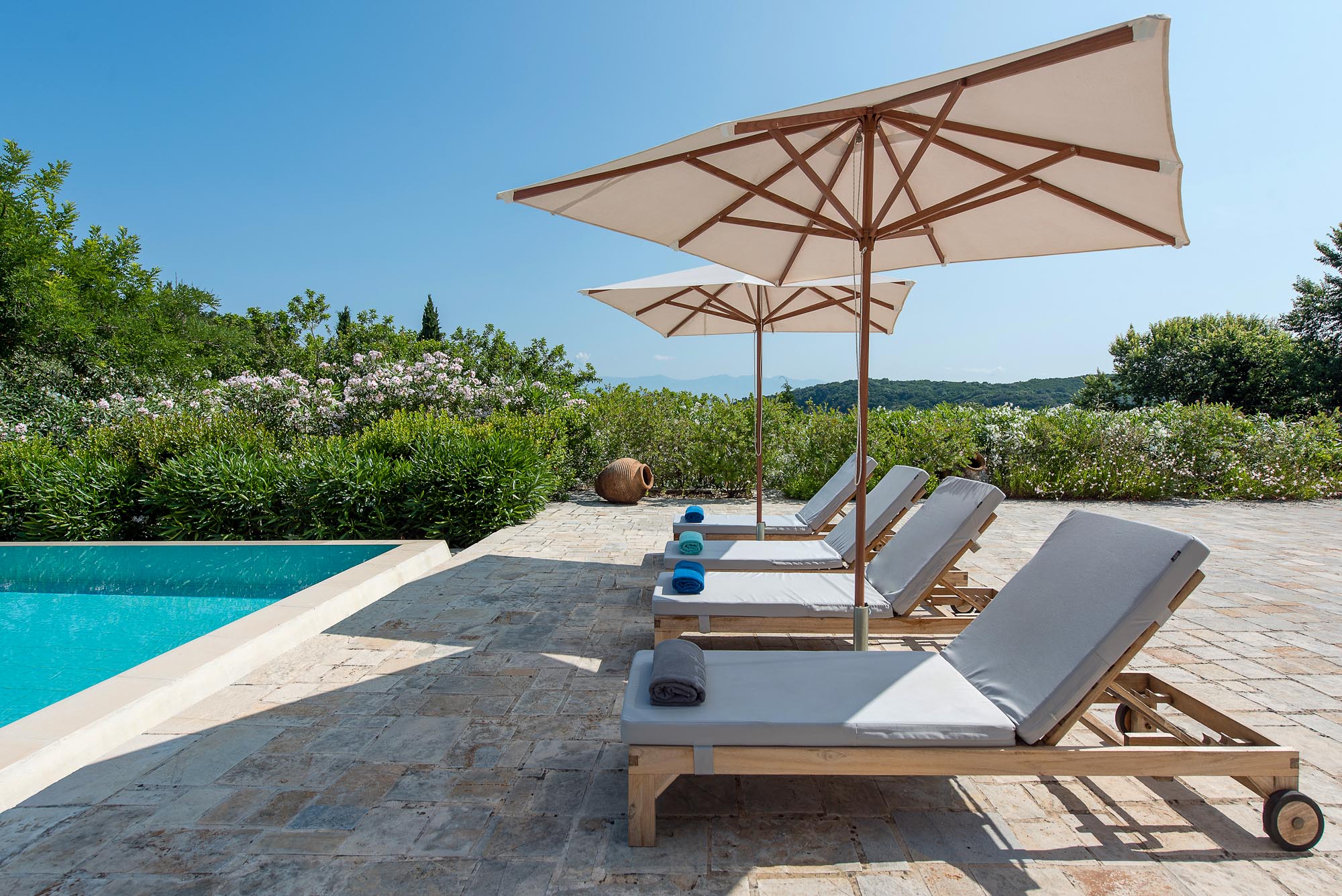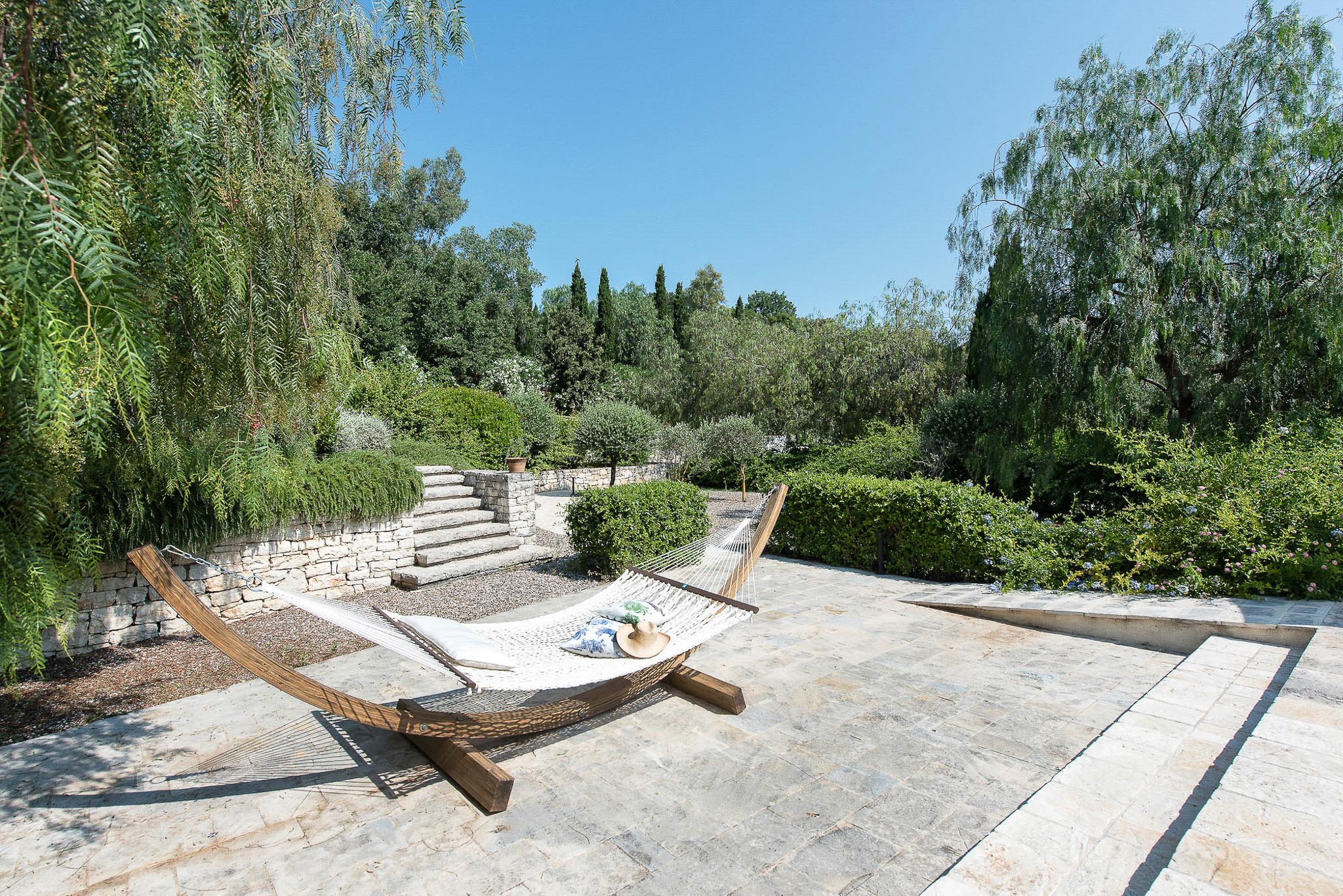 There are plenty of seating options, including a spectacular new raised covered seating platform, with views of the sea close by. Sun loungers around the pool, sofas, a freestanding hammock and a swing seat offer additional seating. The pool is L-shaped with gently descending steps. There is also a table tennis set and paddle boards to keep the active happy.