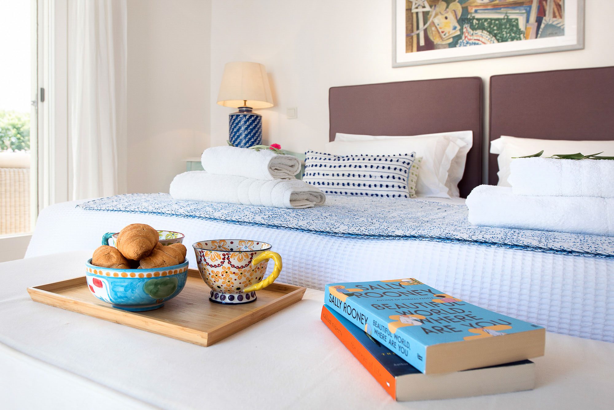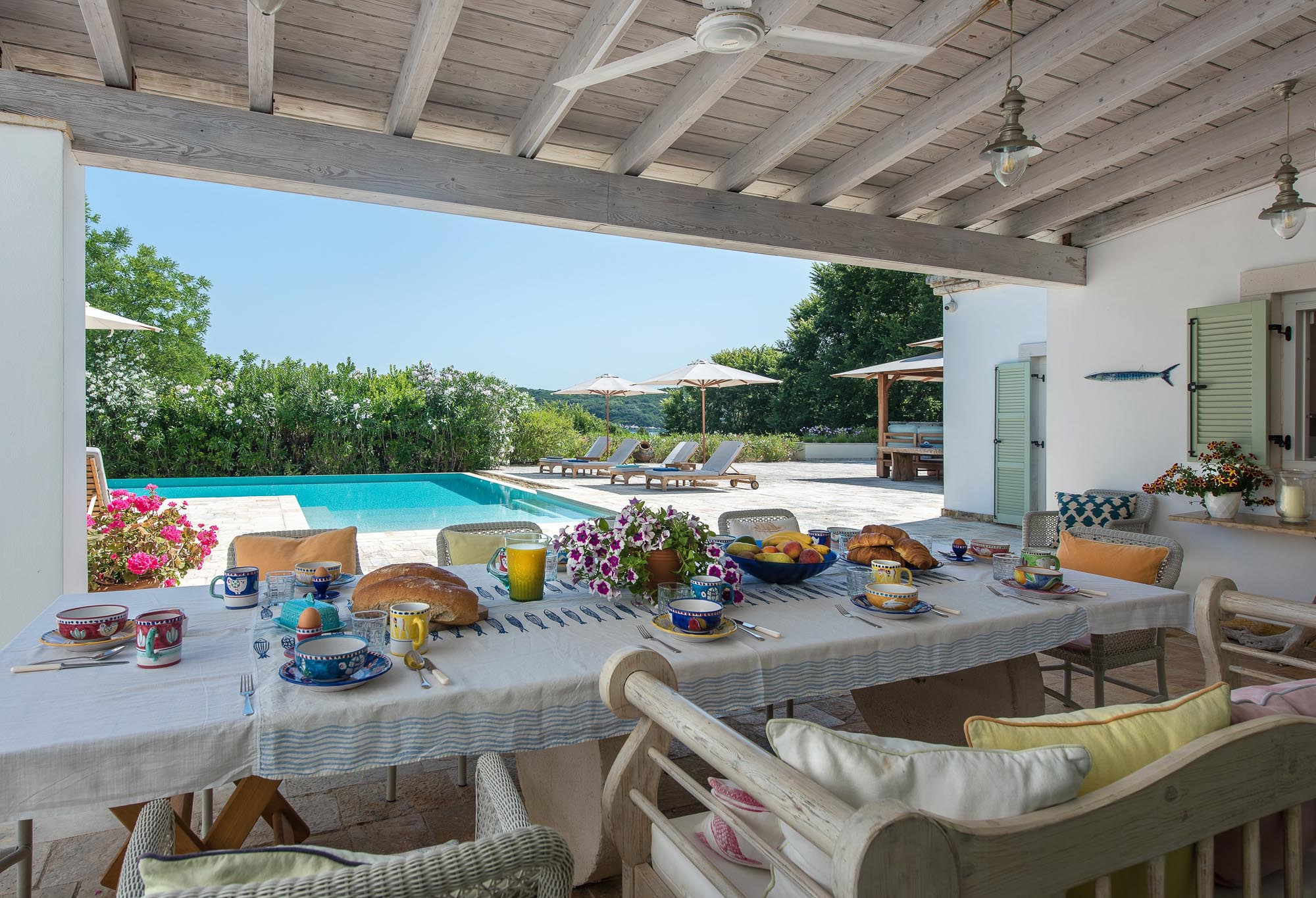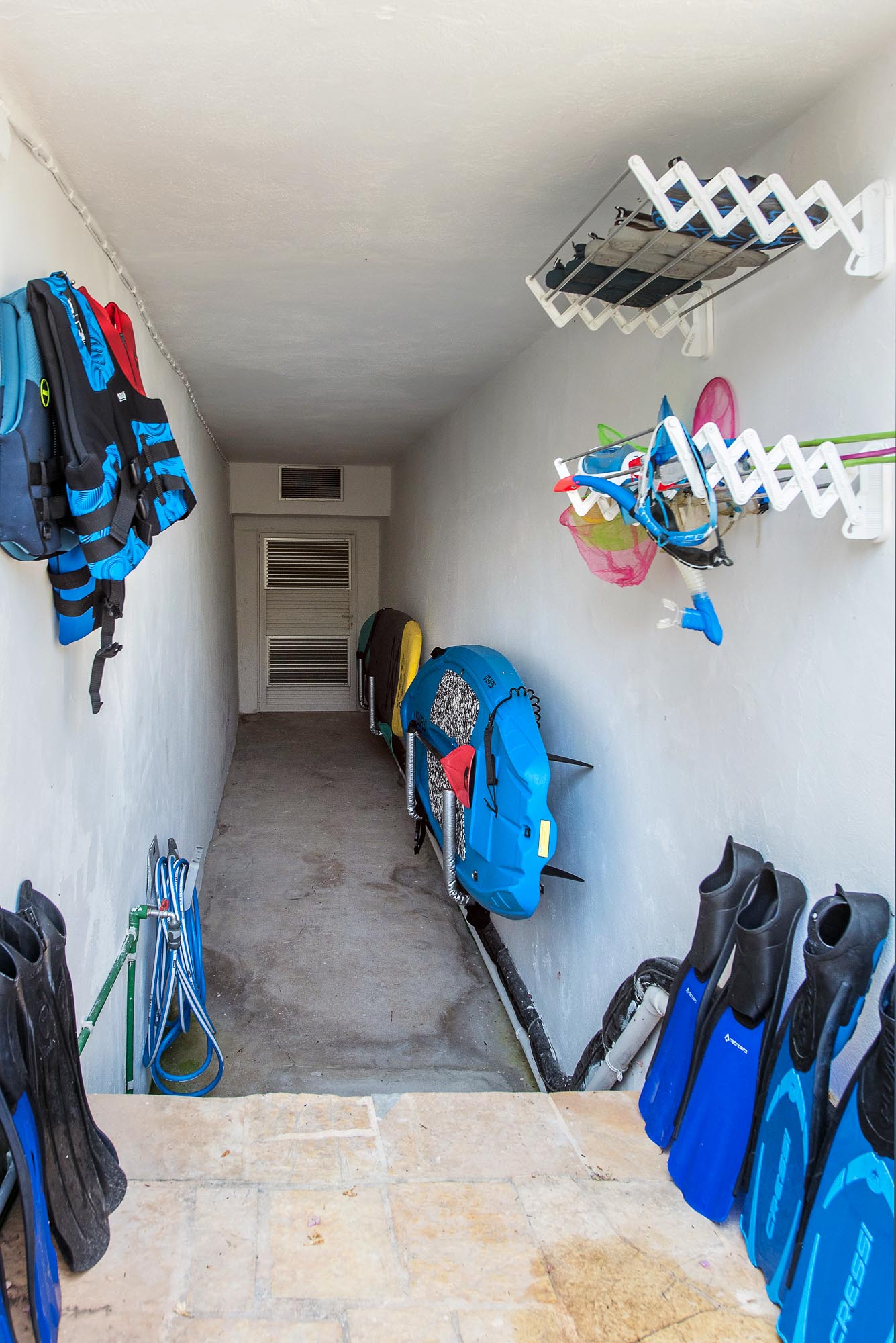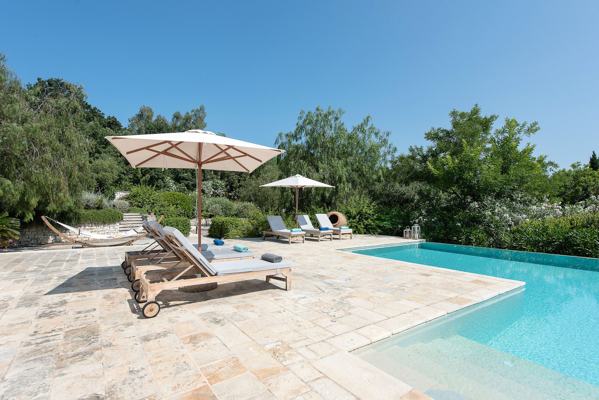 There are plenty of seating options, including a spectacular new raised covered seating platform, with views of the sea close by. Sun loungers around the pool, sofas, a freestanding hammock and a swing seat offer additional seating. The pool is L-shaped with gently descending steps. There is also a table tennis set and paddle boards to keep the active happy.