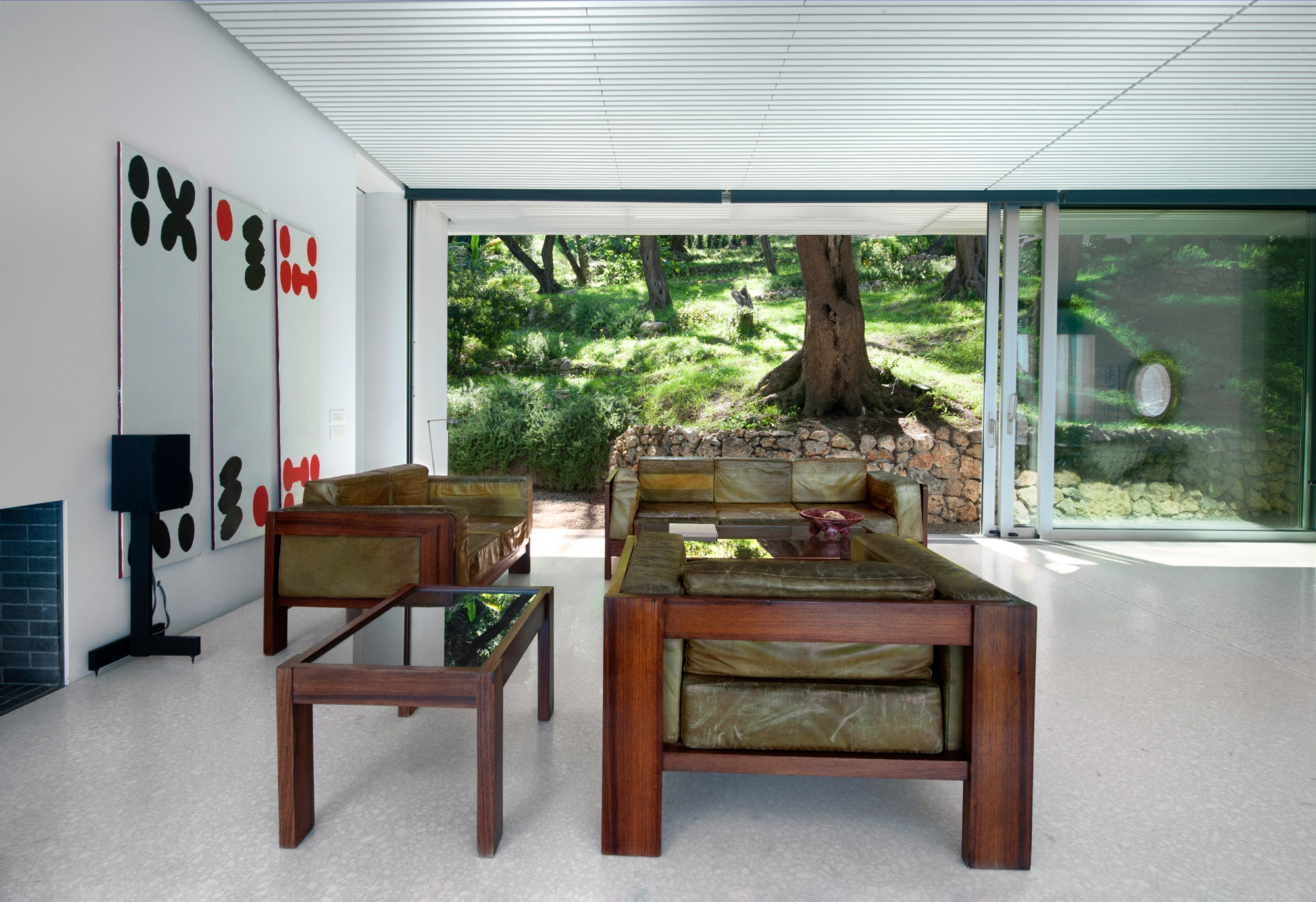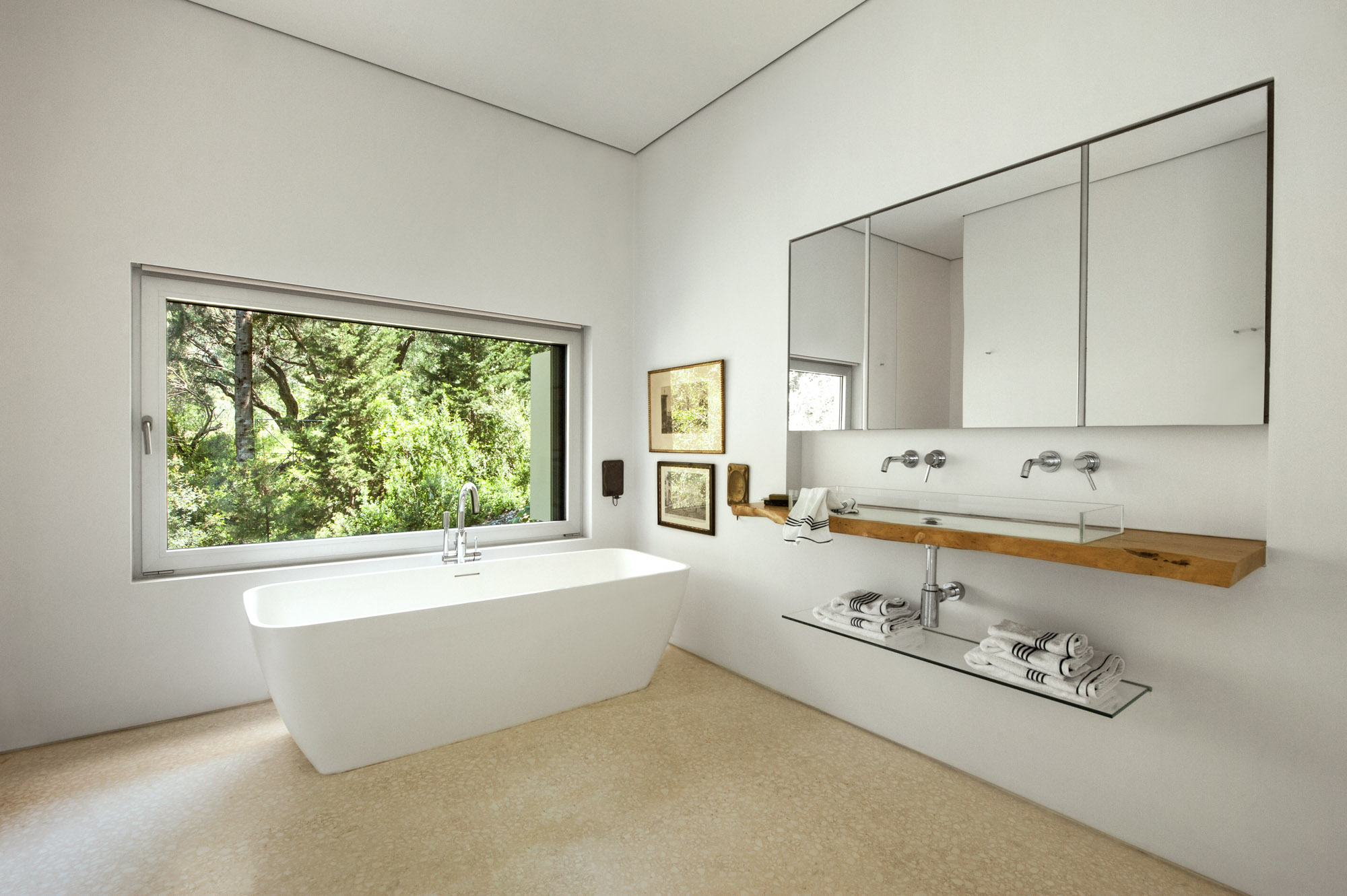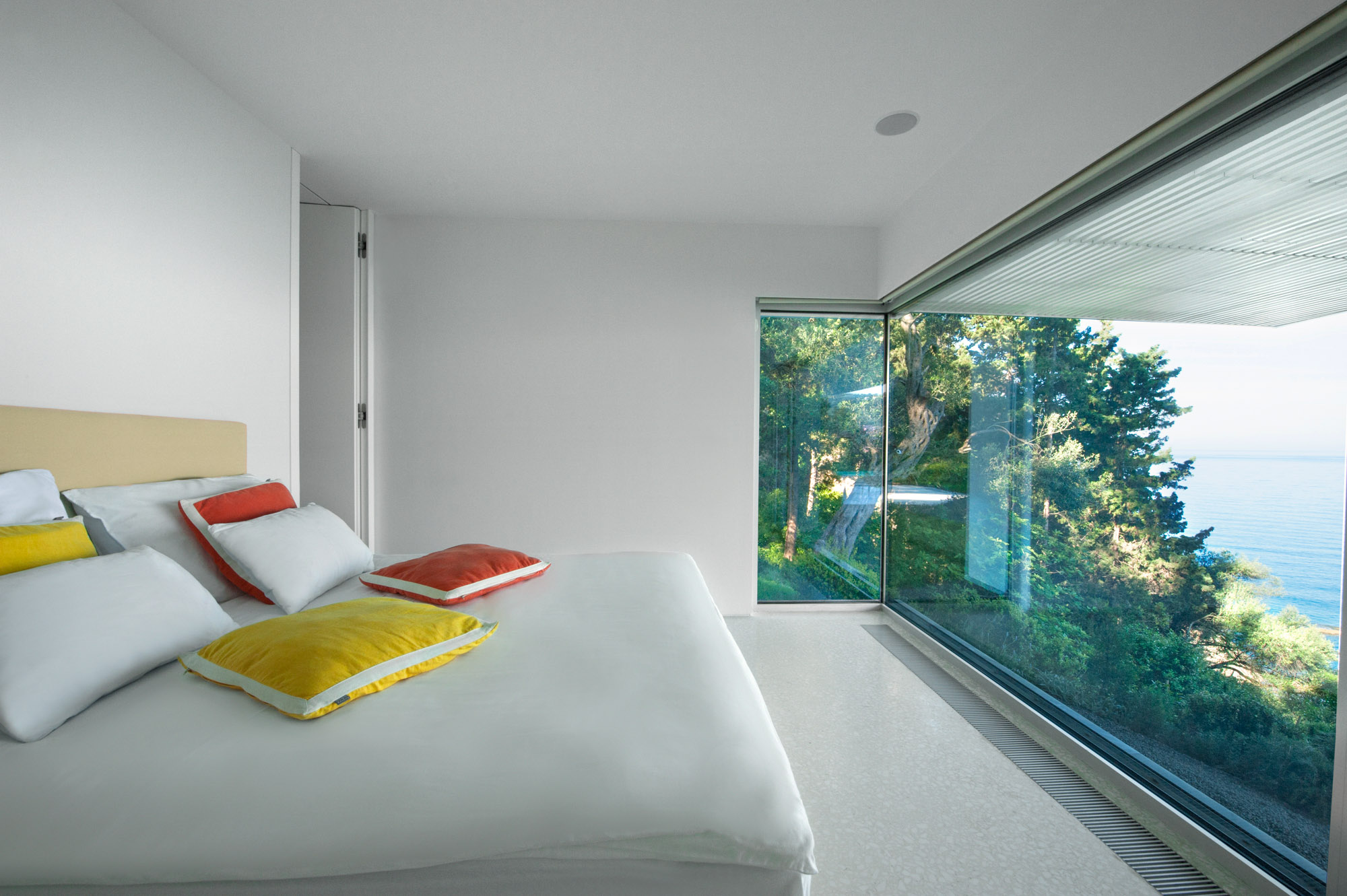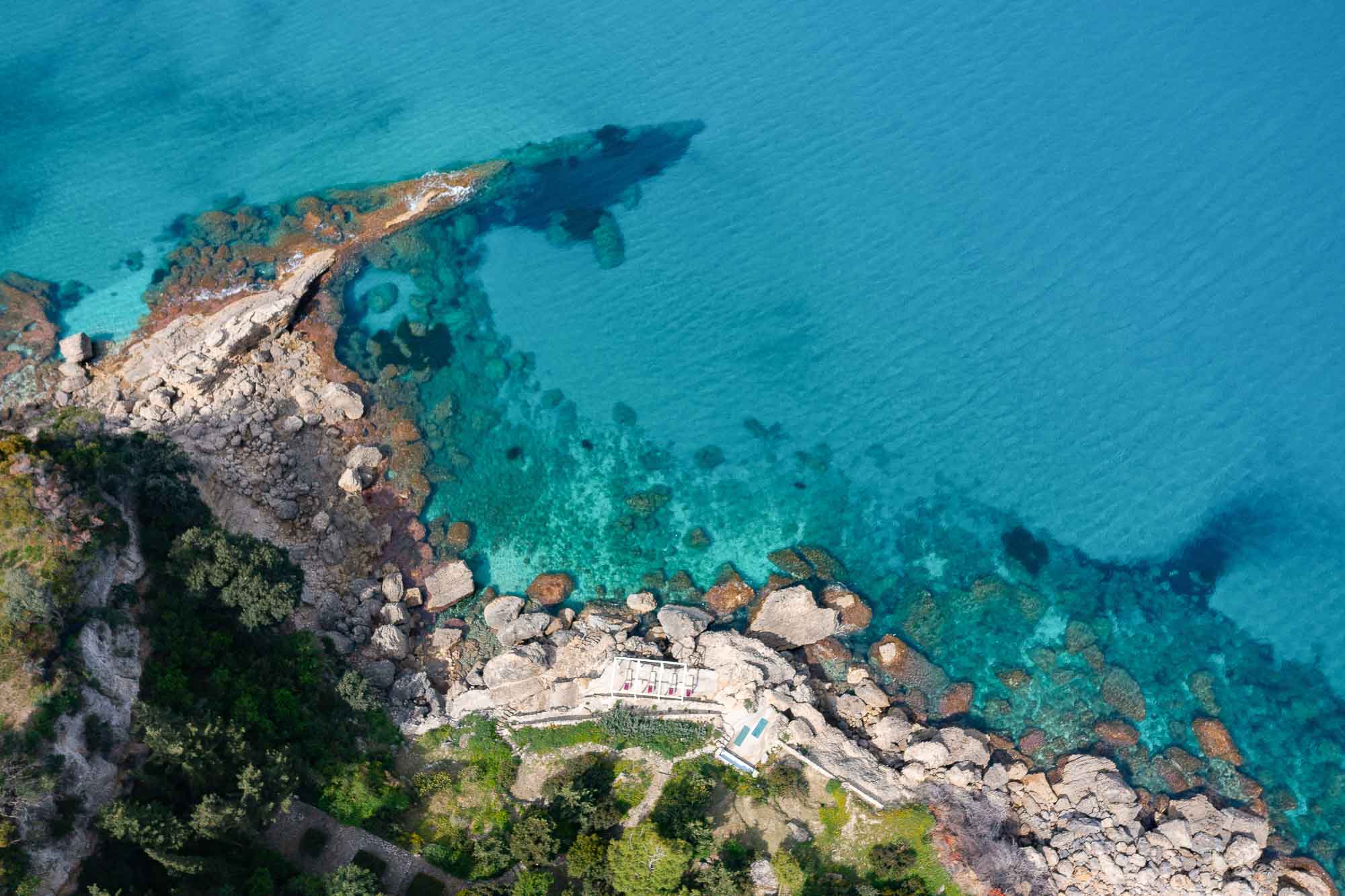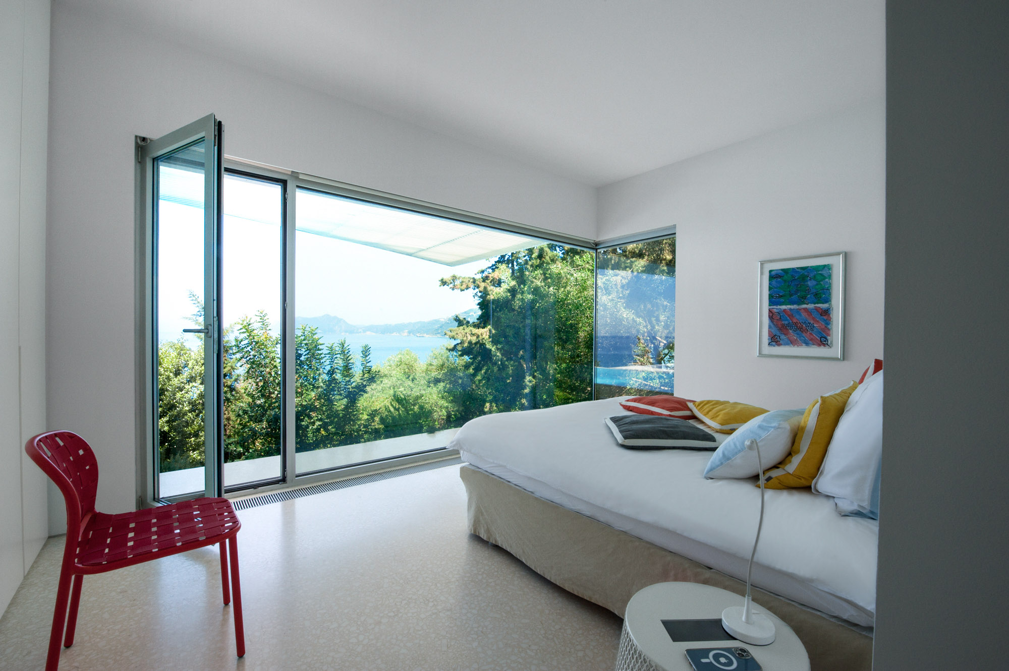 Featuring a striking cantilevered pool that seemingly floats above the landscape, the expansive terrace is framed by majestic olive trees, their ancient trunks rising elegantly through the roof. A peaceful waterfront pavilion completes the experience, providing an idyllic retreat with sweeping views of the sparkling sea.
