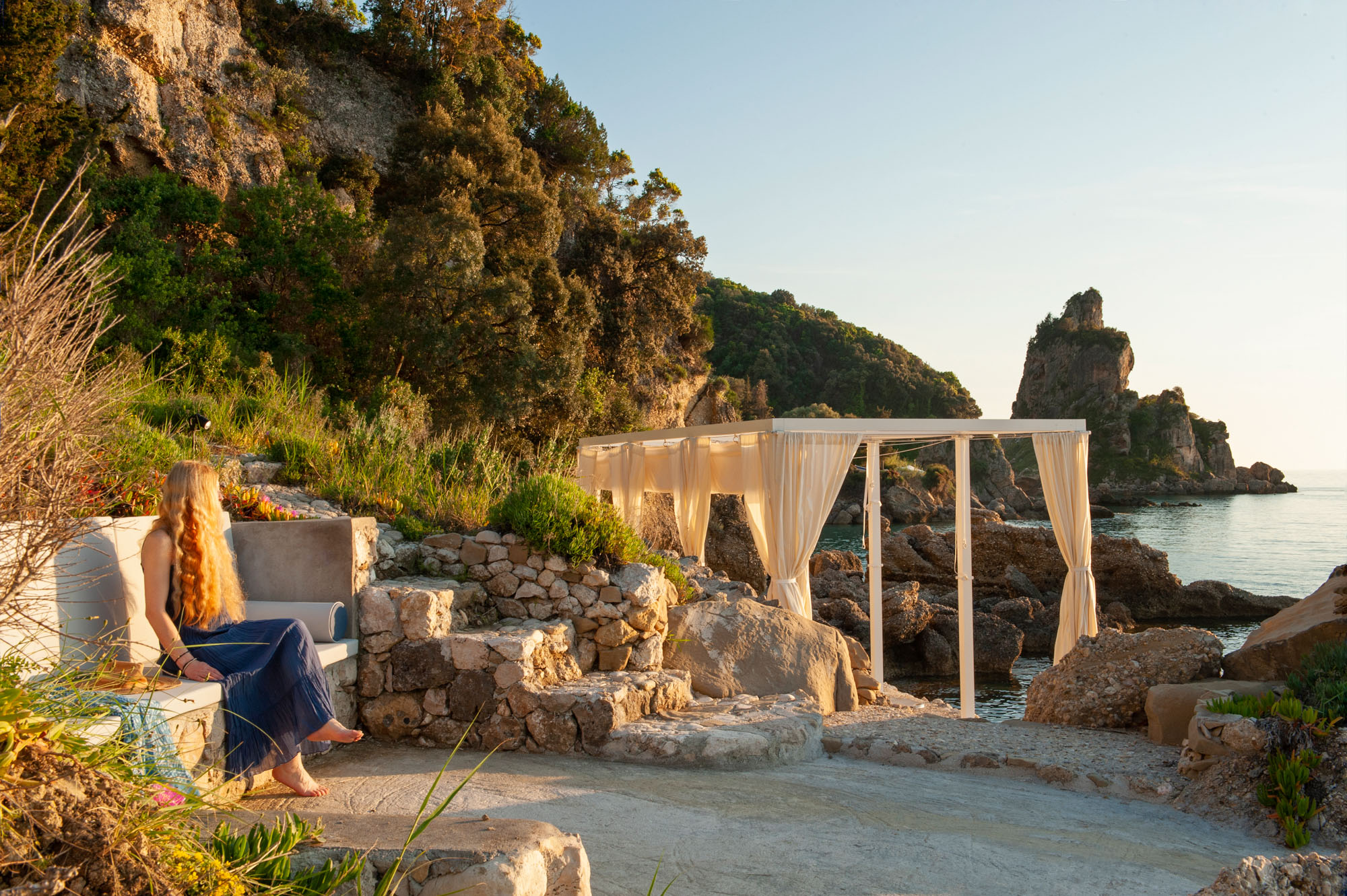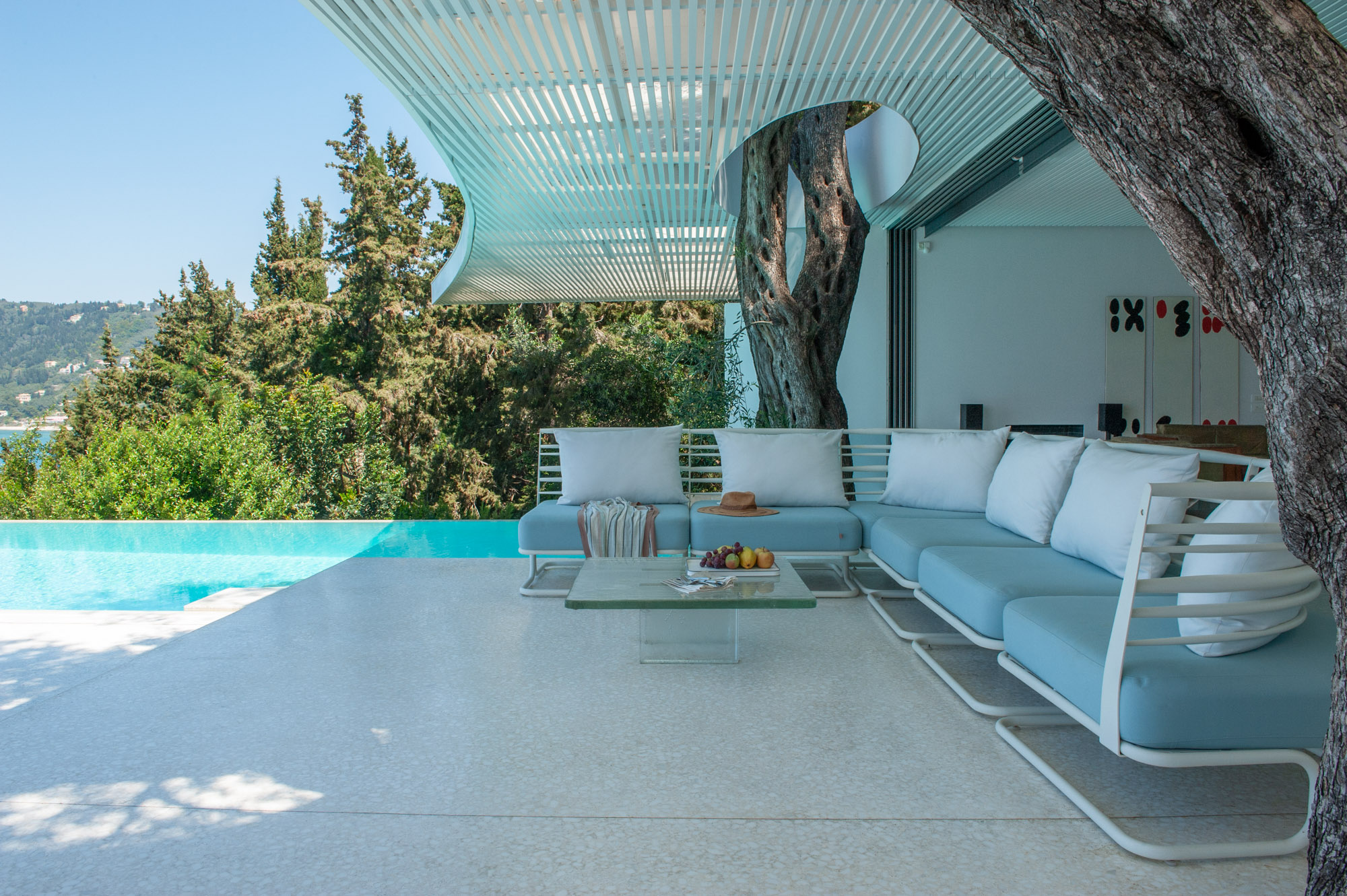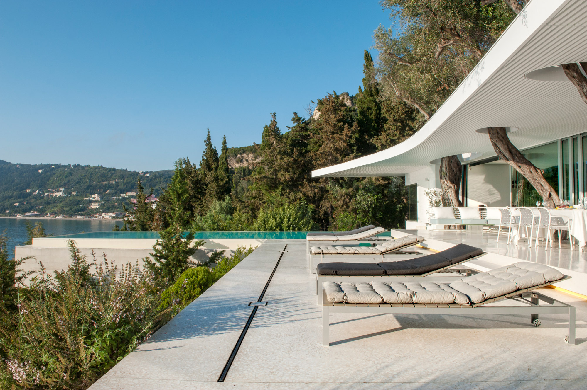 Here is the perfect spot to dip into the crystal-clear turquoise waters. The open-air, sea-level pavilion was created to capture Corfu’s stunning sunsets. A third expansive terrace, The Belvedere, offers both lounge and dining areas, creating the perfect setting for alfresco living. The villa is committed to sustainability with a highly efficient low-energy cooling system and advanced heat pumps.