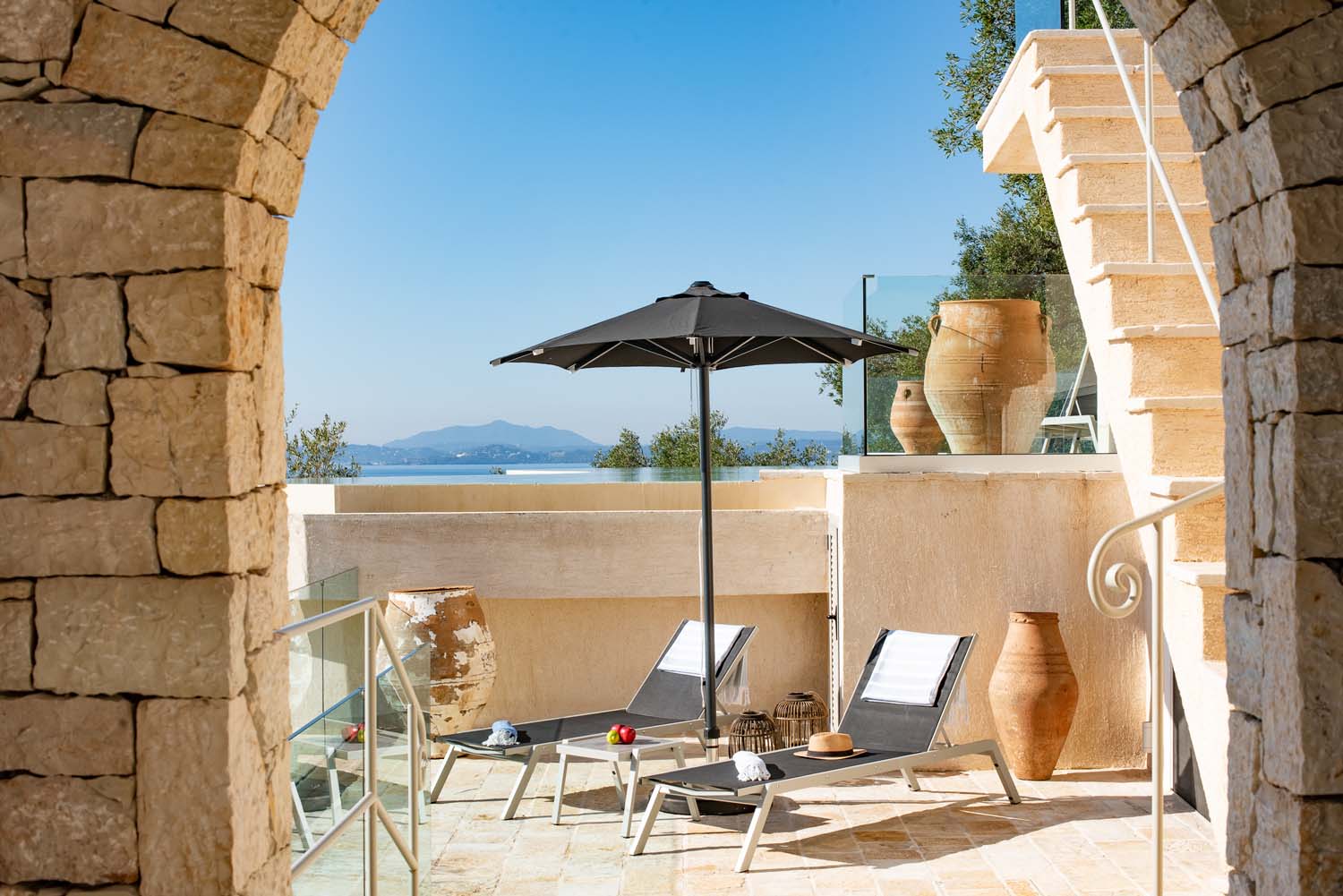 Located between Agni Bay and Krouzeri Beach, you can easily walk to several tavernas and beaches via the Corfu Trail coastal footpath which is accessed from the bottom of the garden.