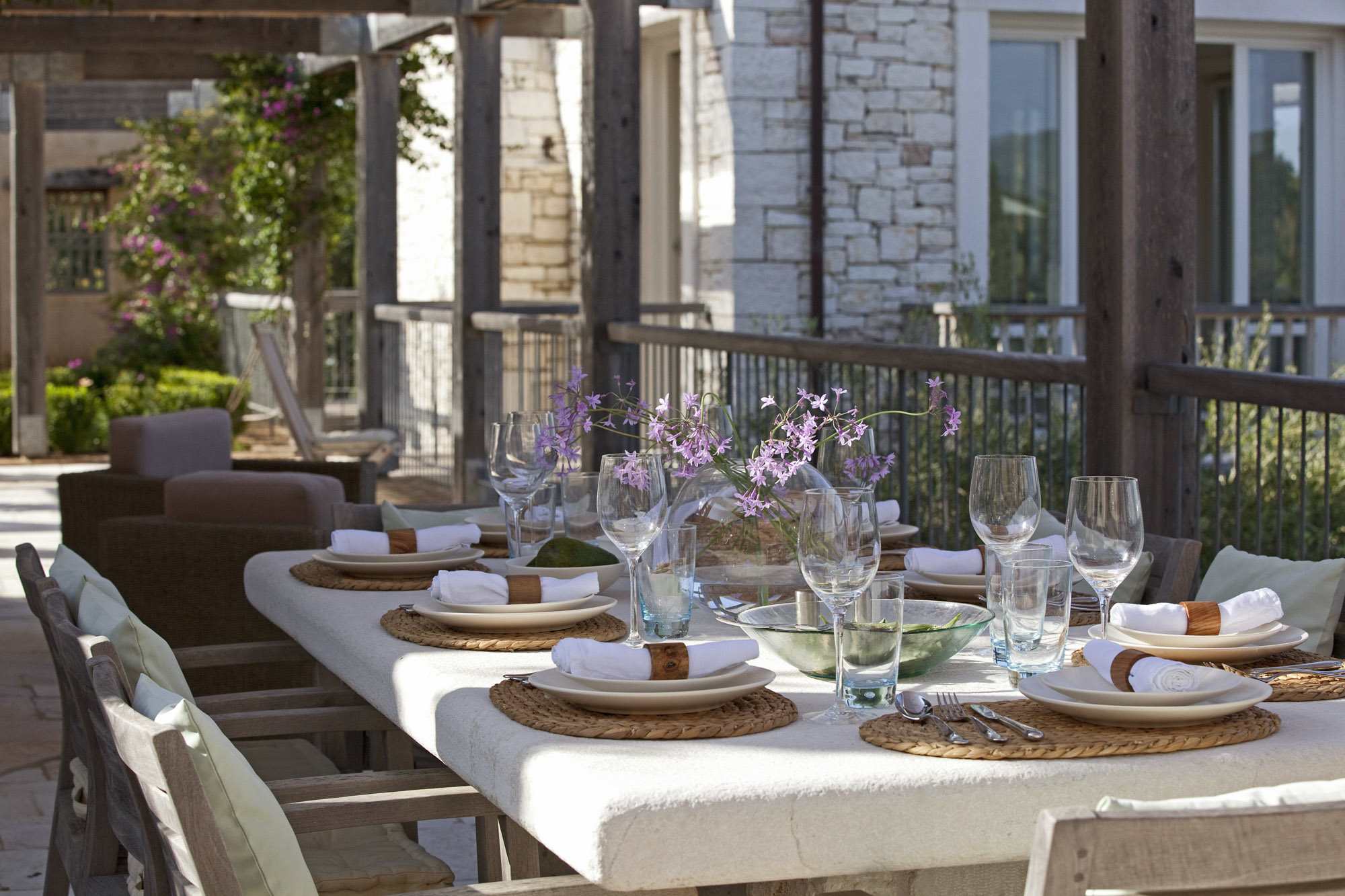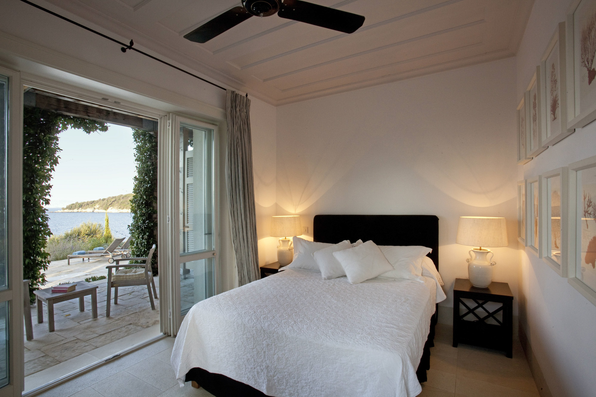 Al fresco dining is a delight, with seating for up to 10. A sparkling pool, complemented by a 4-poster day bed, offers the perfect place to lounge alongside numerous sun beds, outdoor sofas, and chairs. Guests can also enjoy a shared tennis court and table tennis. A short stroll down the path leads to the sea, where you can swim or have a boat delivered to the shared jetty for a day of coastal exploration.