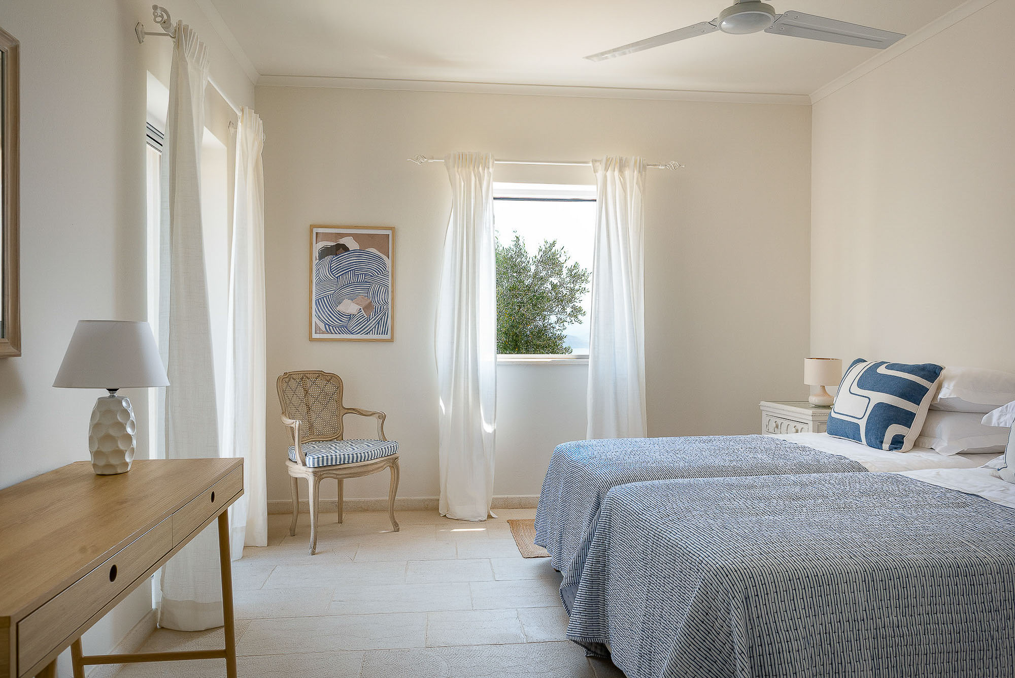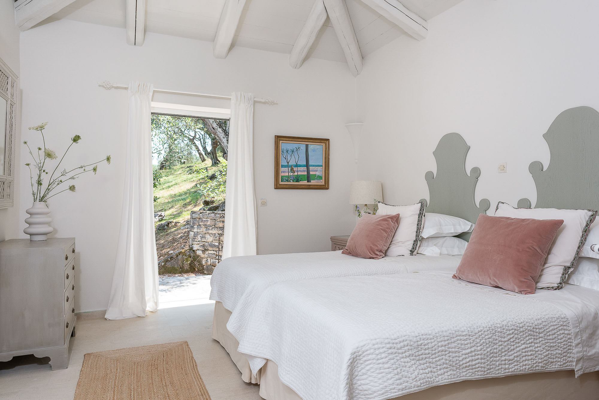 The villa accommodates up to 10 people in five beautifully appointed en-suite bedrooms, each with its own unique charm and all boasting spectacular sea views. Three of the bedrooms have direct access to their own private terraces and the guest cottage sits above the villa within its own olive grove offering privacy and independence. The main sitting room, dining room and kitchen open directly onto the generous sea facing terrace.