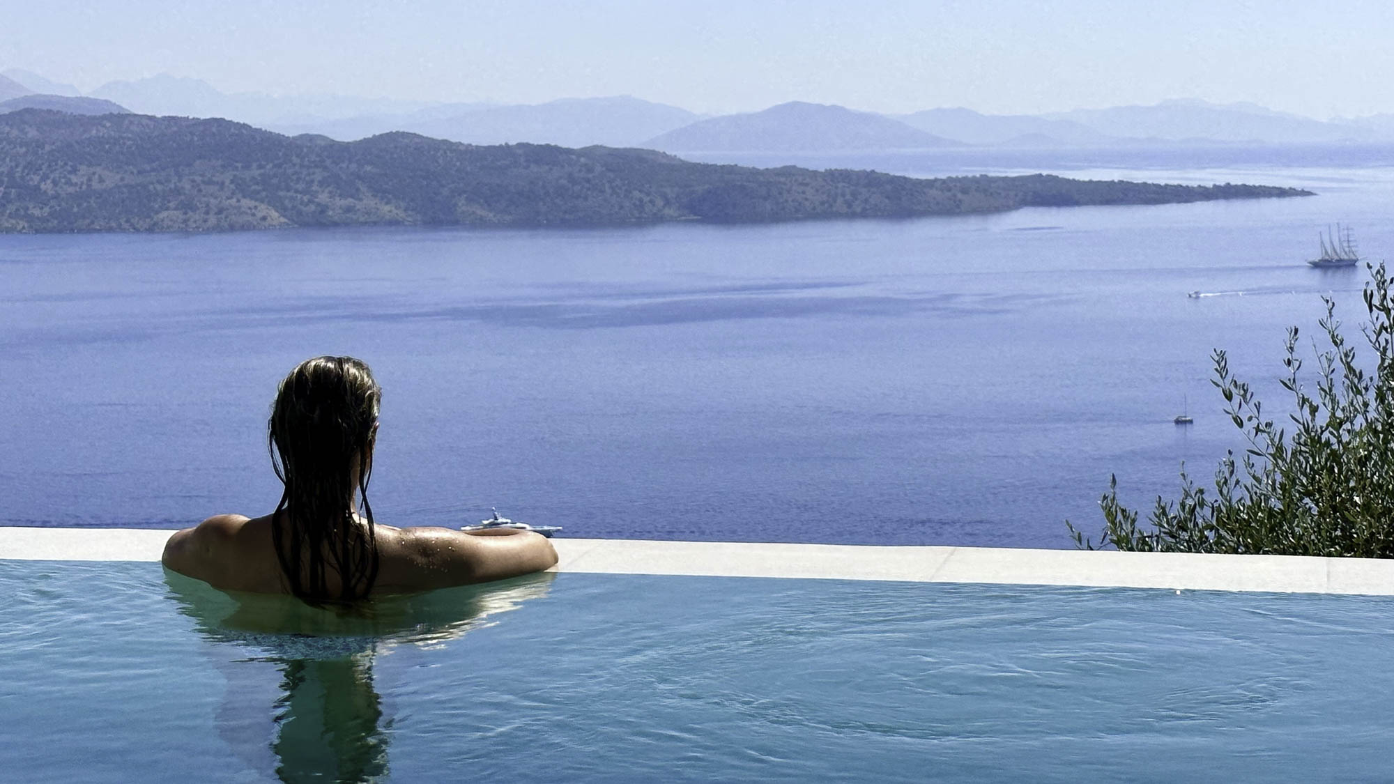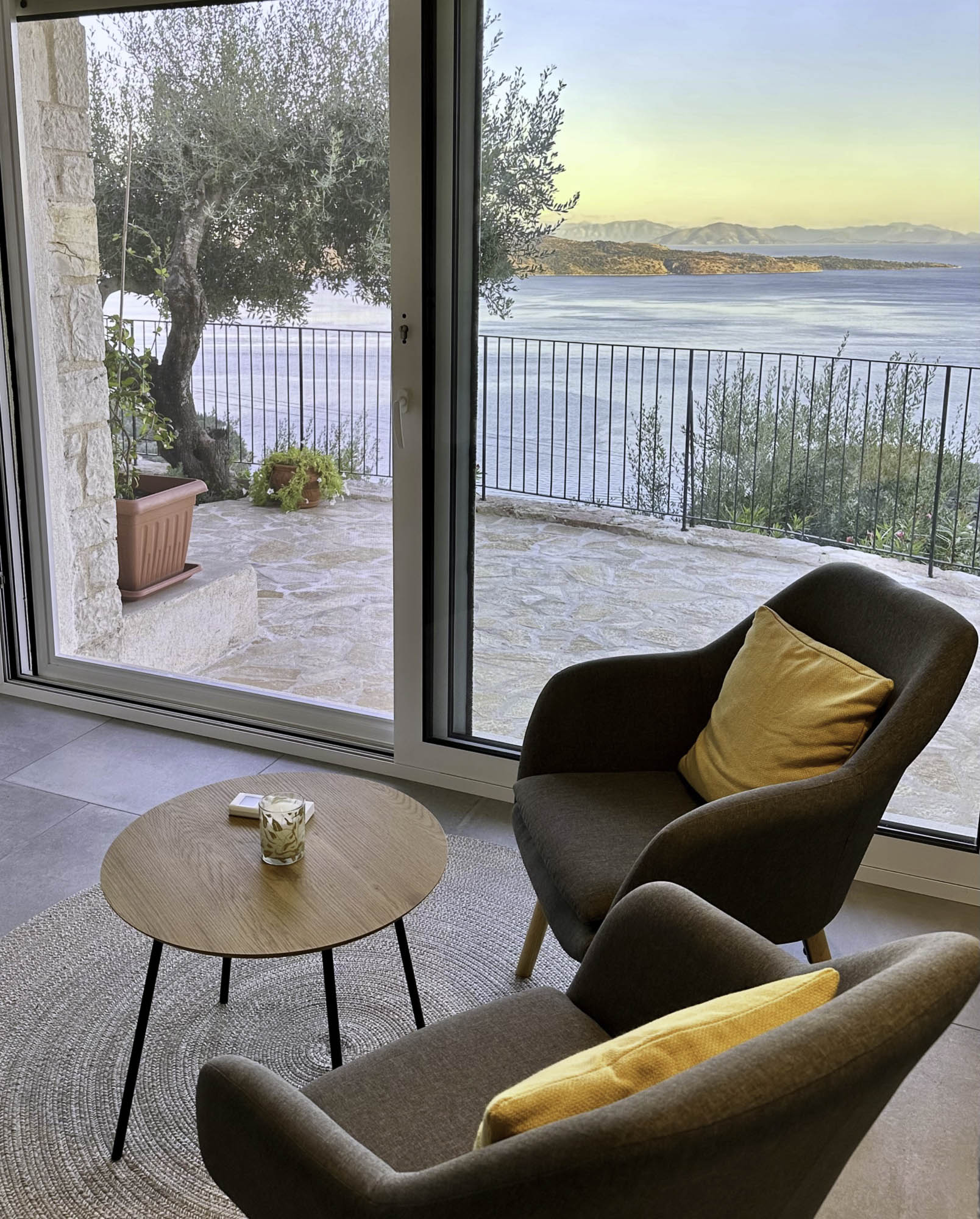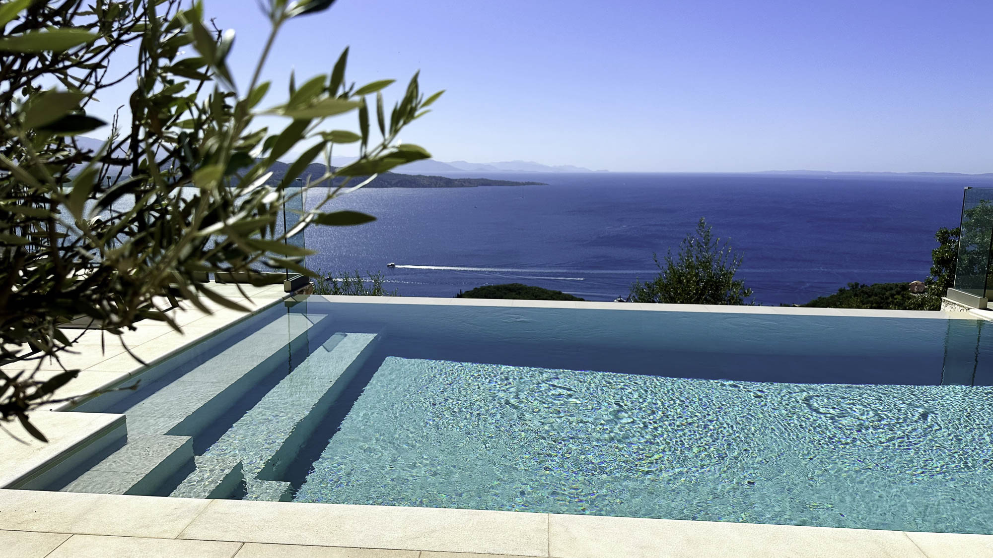 Perched among olive live trees with mesmerising views across the channel, the villa feels wonderfully secluded. Using natural honeyed stone helps the property blend into the surrounding landscape, adding to the feeling of a peaceful oasis.