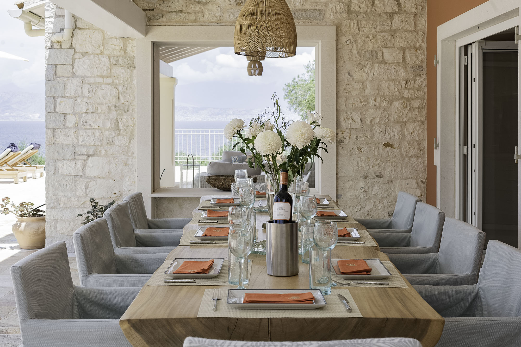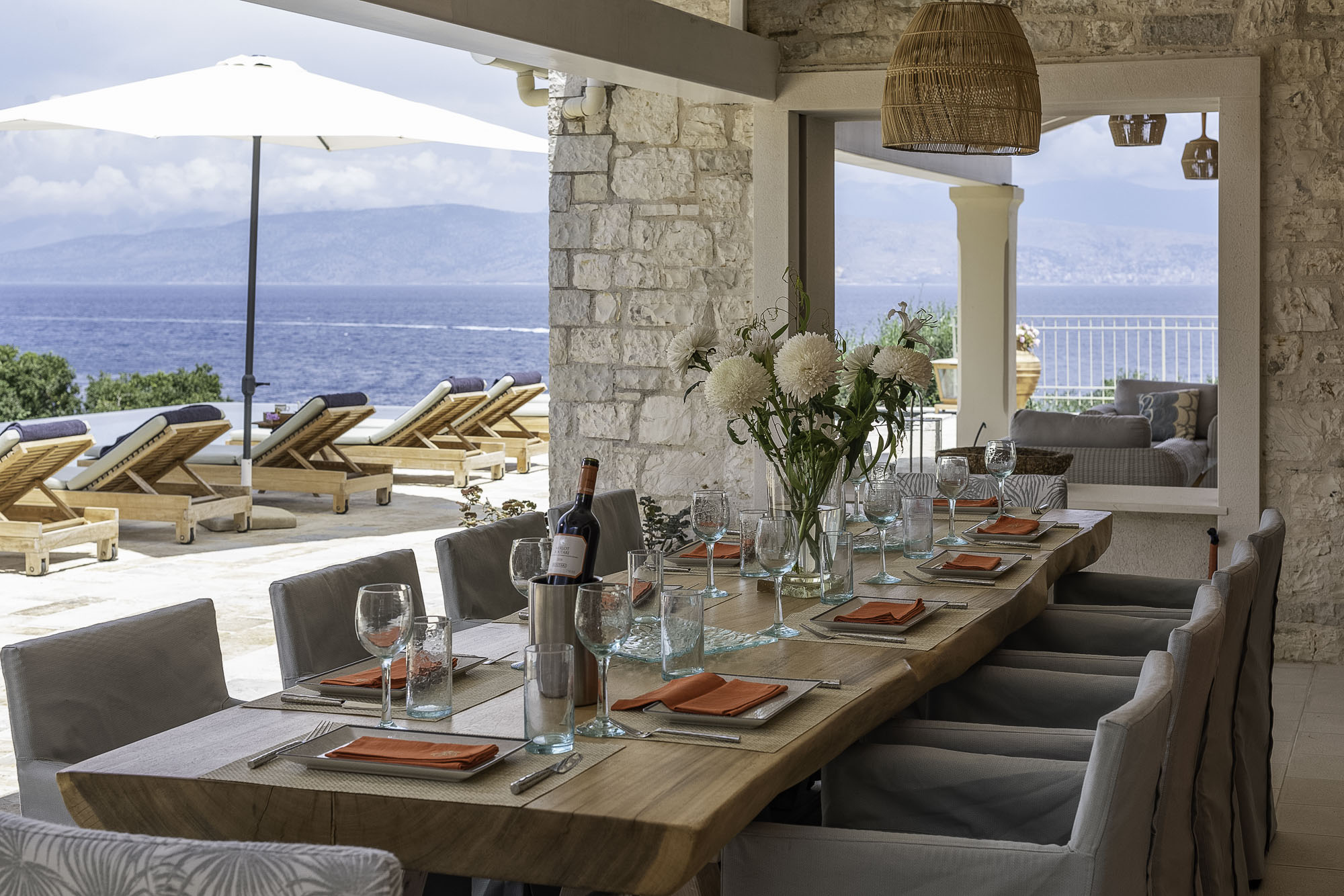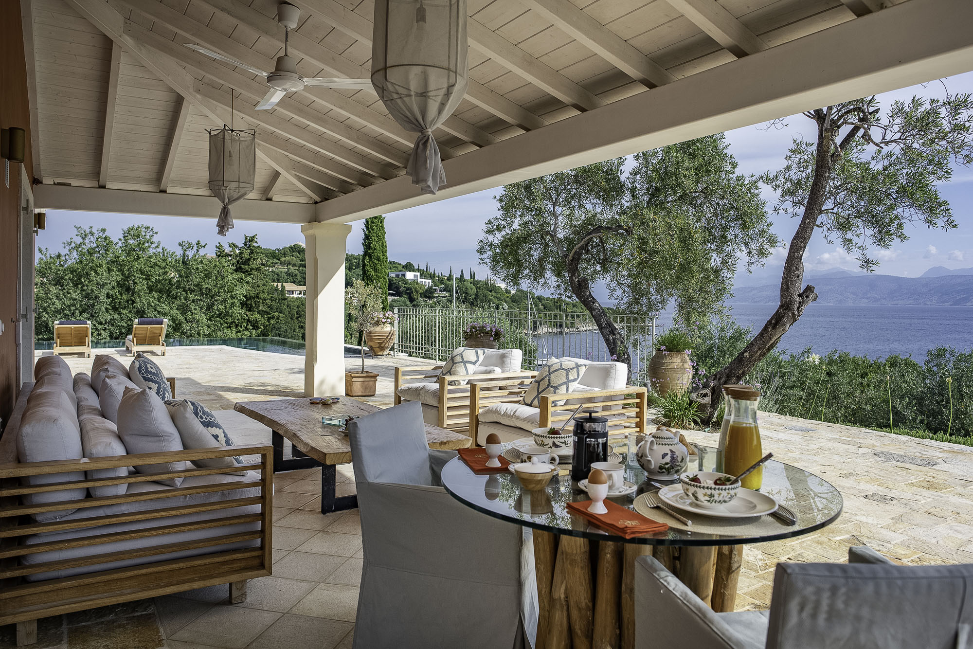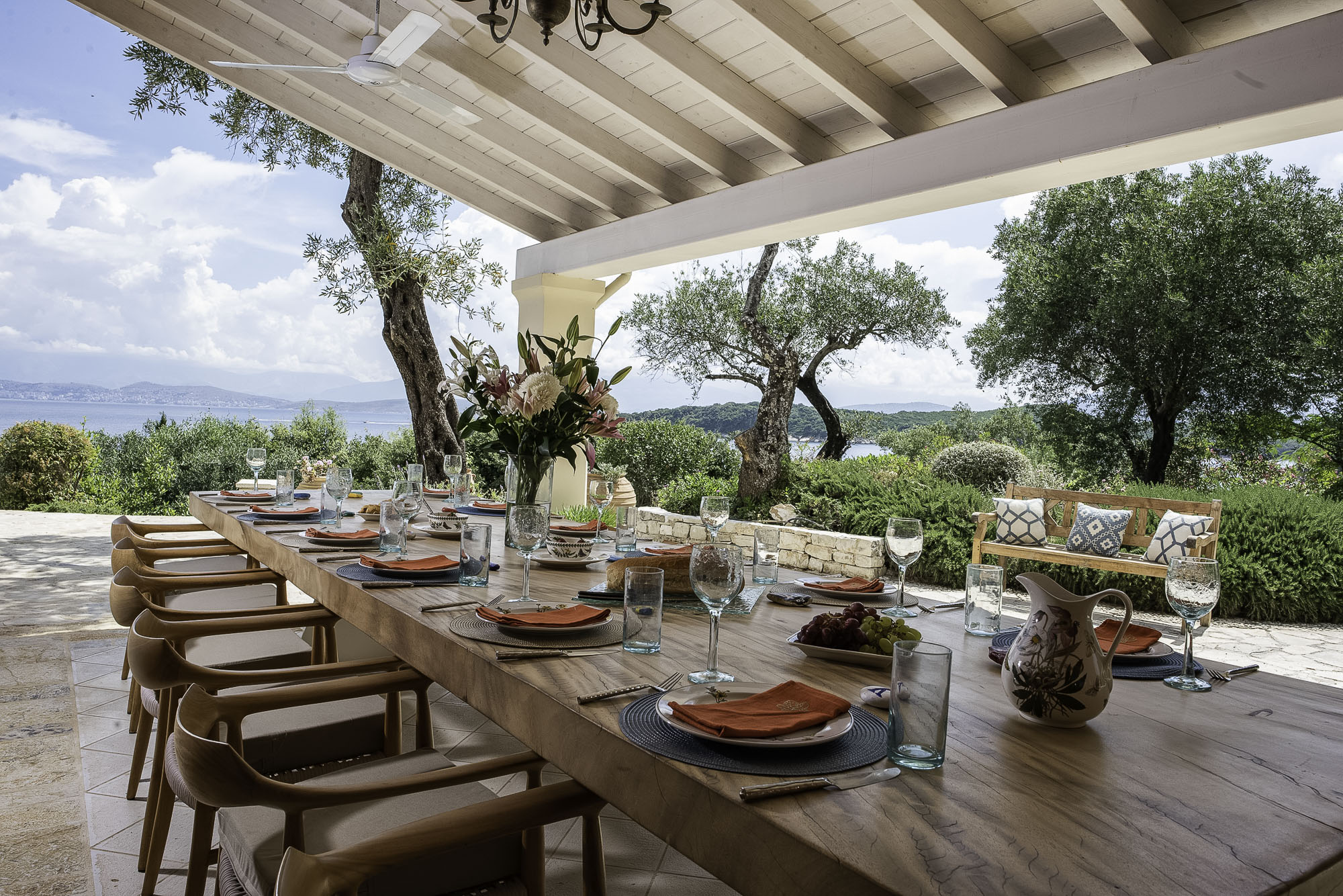 The villa sits amongst olive and cypress trees on a peninsular, with direct access to the little pebble beach of Soukia. Secluded, spacious, and with only a 10-minute stroll to the bars, restaurants, and nightlife of Kassiopi, it combines the best of both worlds. It’s an excellent base for a large gathering, particularly those with independent teenagers.