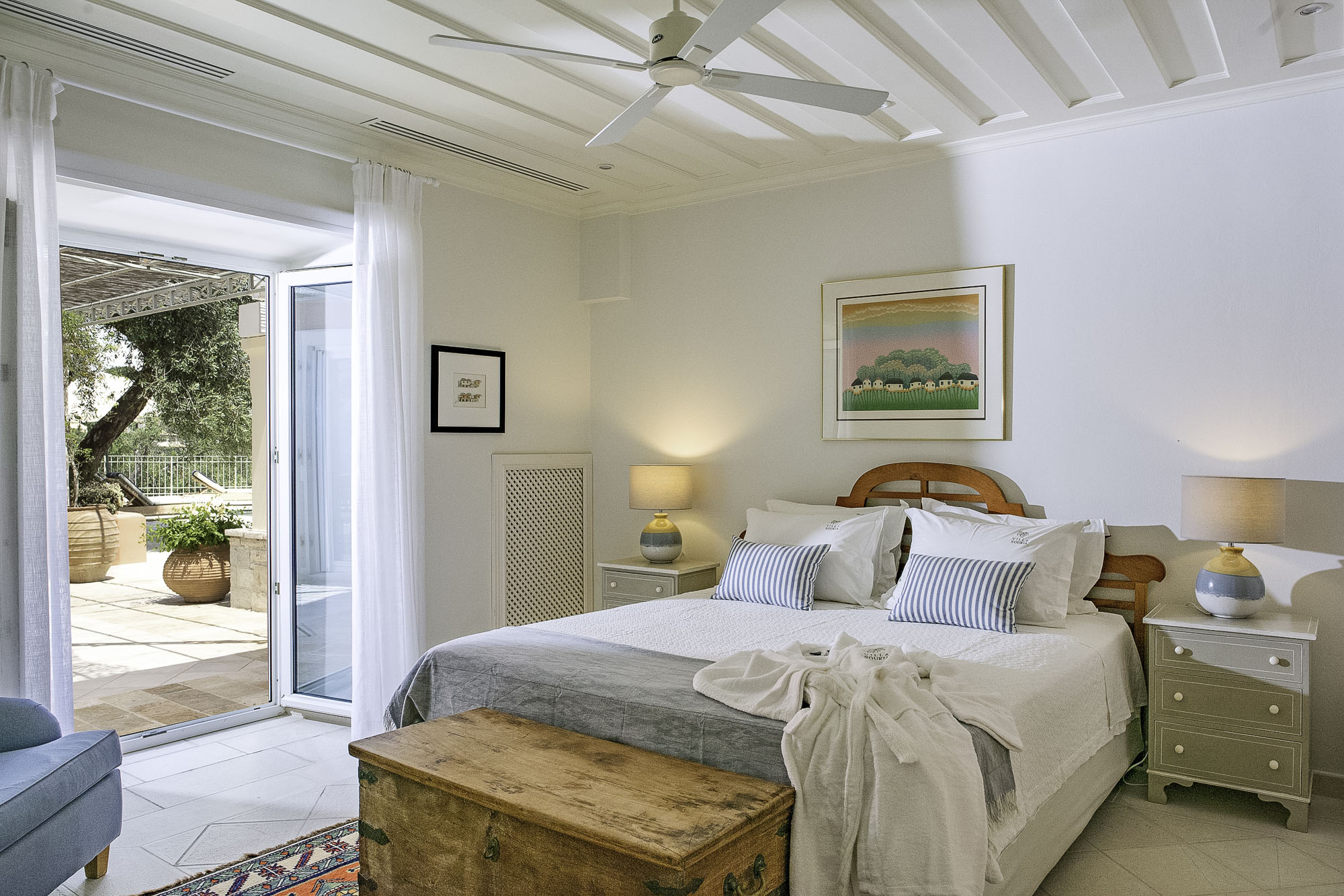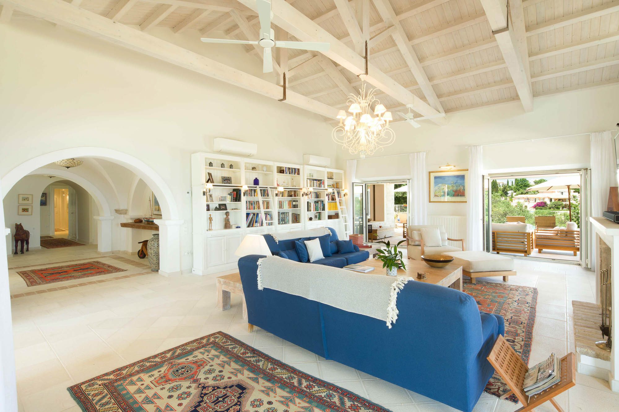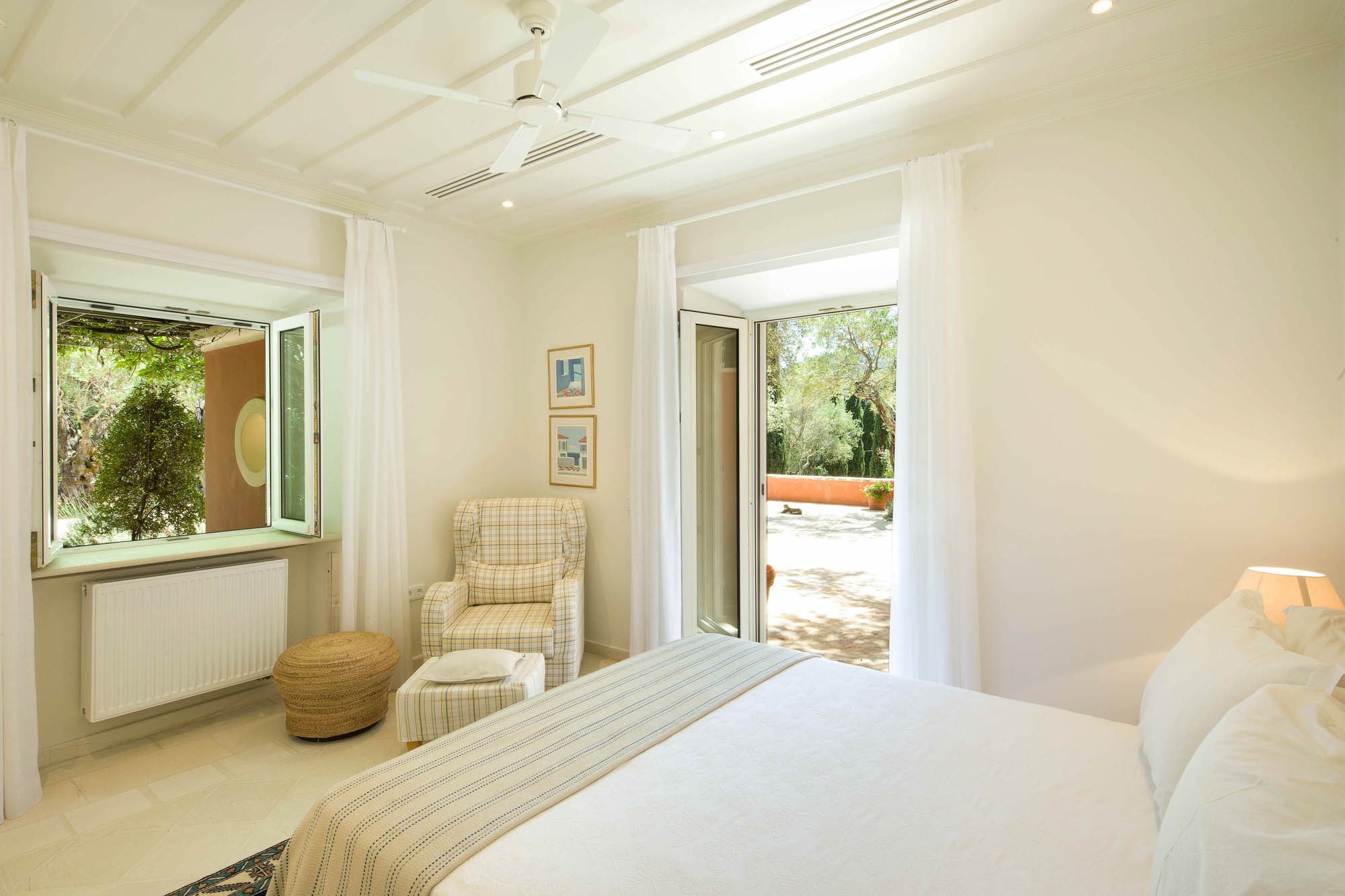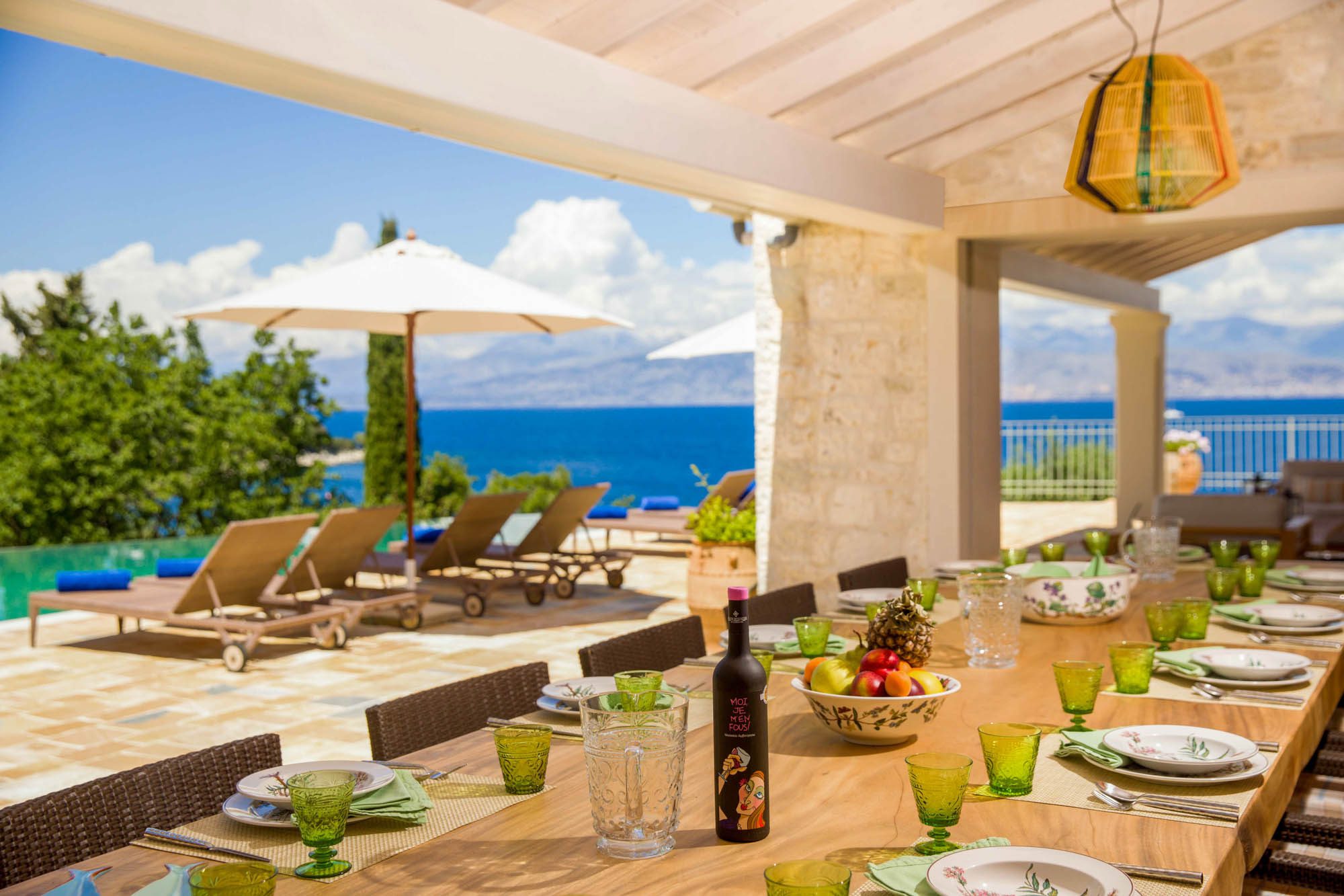 The villa sits amongst olive and cypress trees on a peninsular, with direct access to the little pebble beach of Soukia. Secluded, spacious, and with only a 10-minute stroll to the bars, restaurants, and nightlife of Kassiopi, it combines the best of both worlds. It’s an excellent base for a large gathering, particularly those with independent teenagers.