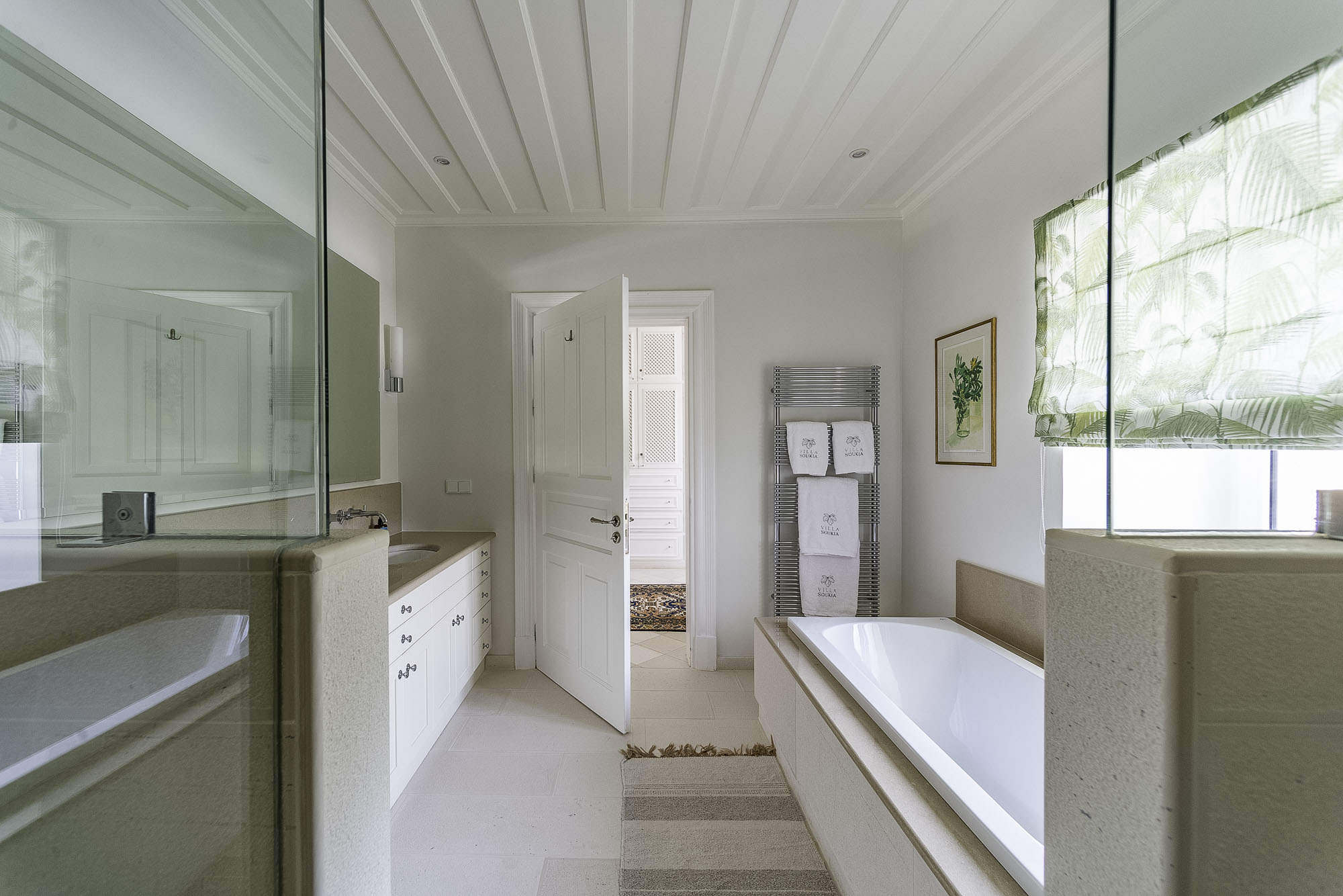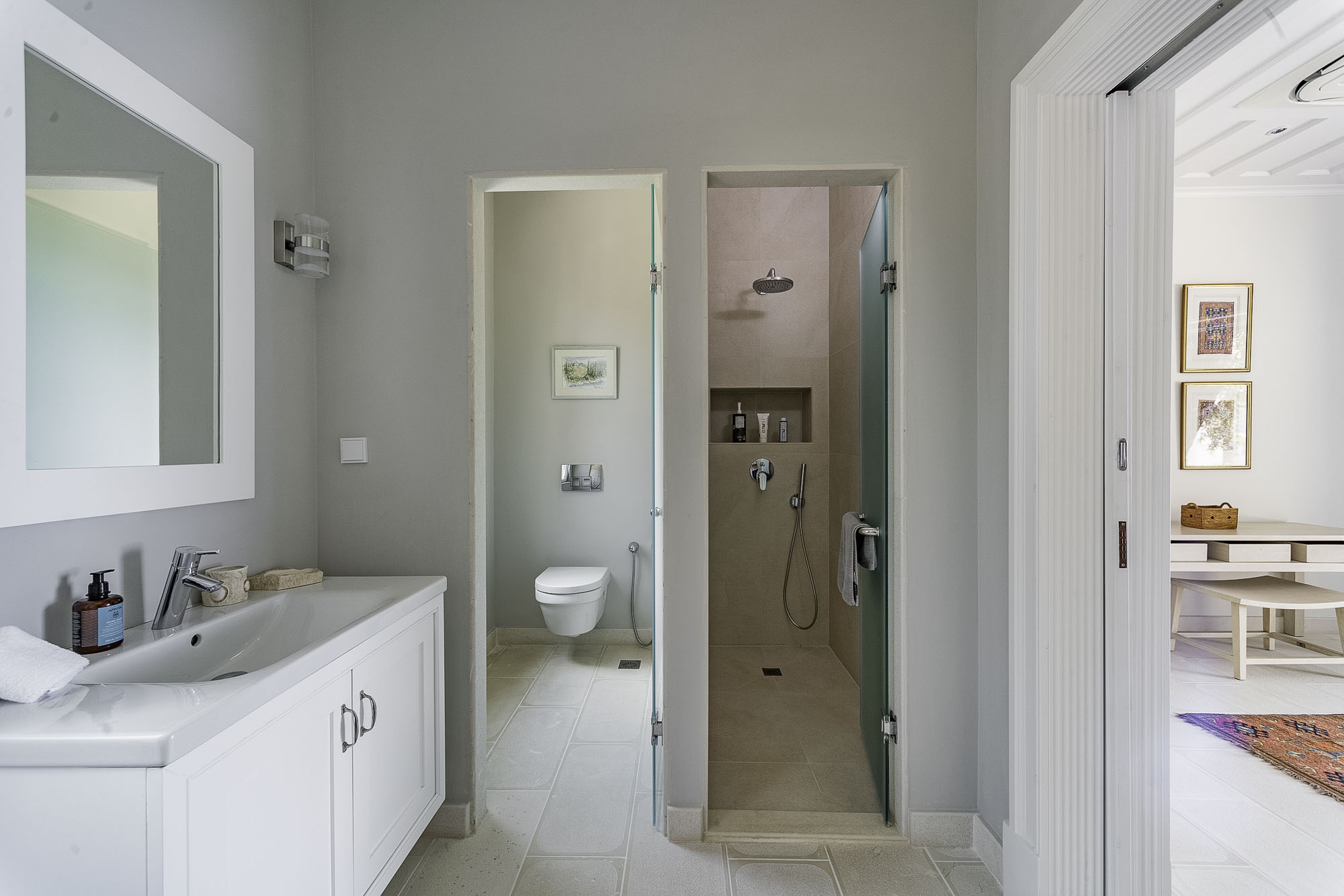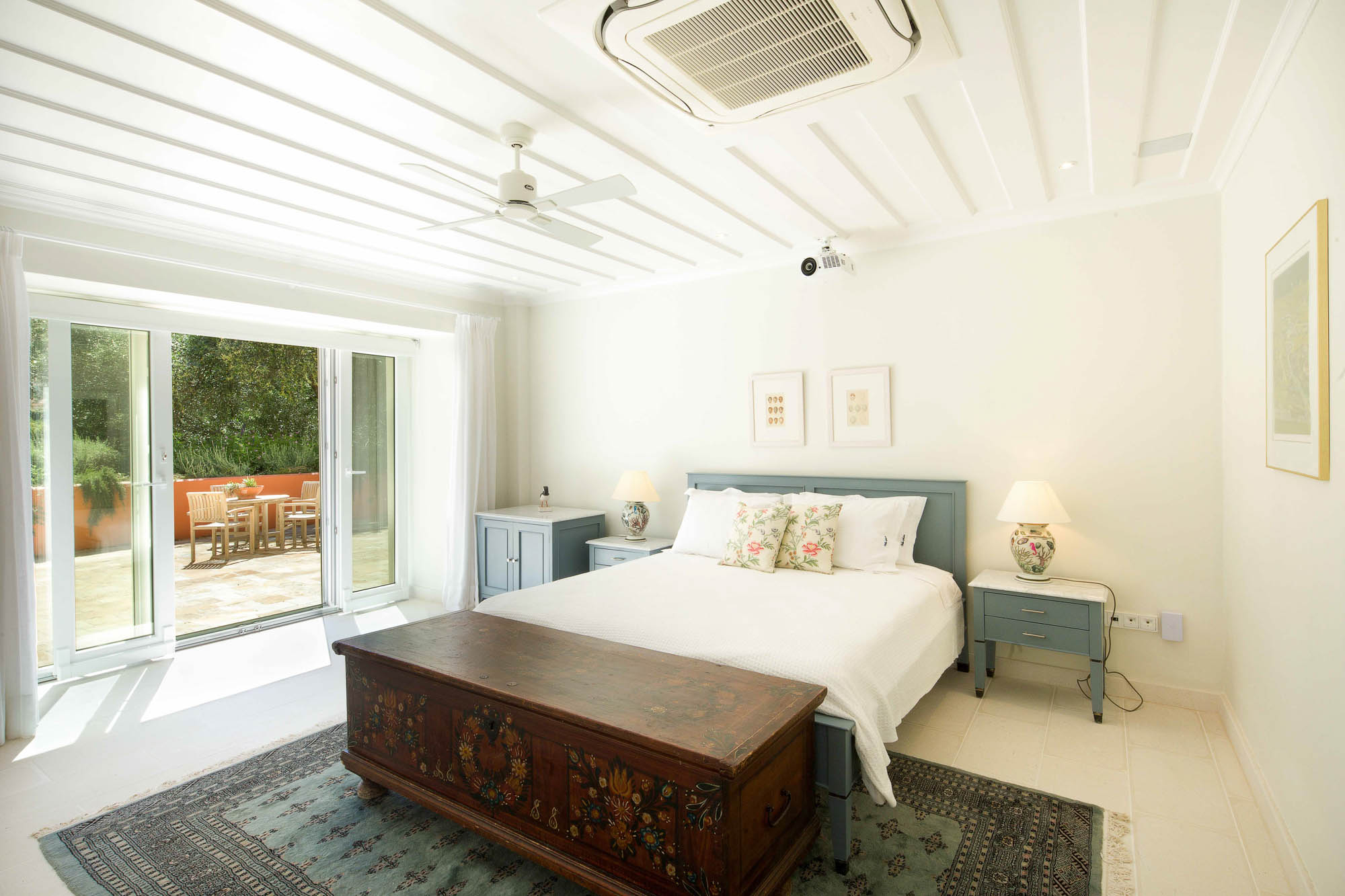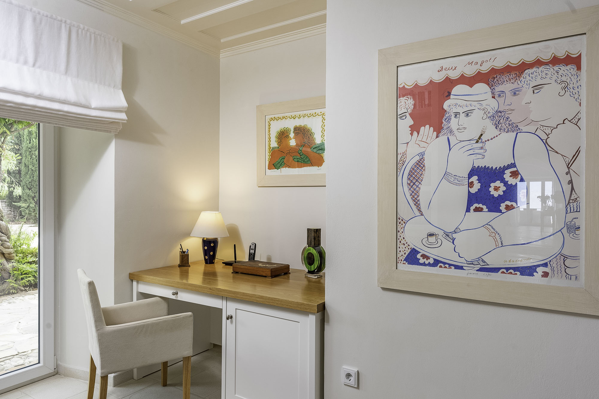Accommodation is spread across the main house, a four-bedroom guest house and a pool annexe. There’s a large, light-filled sitting room with sliding glass doors on two sides opening to the terrace and a spacious fitted kitchen. All bedrooms are beautifully furnished and ensuite. The master first-floor bedroom also has a dressing room and private balcony; two of the ground-floor bedrooms also have private terraces, one with an outdoor shower.