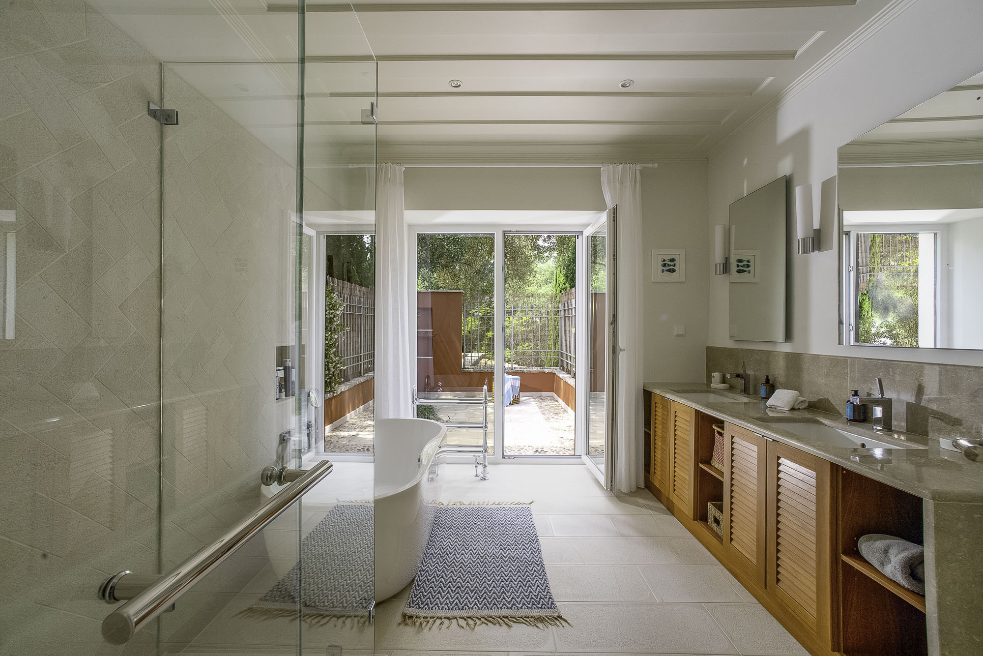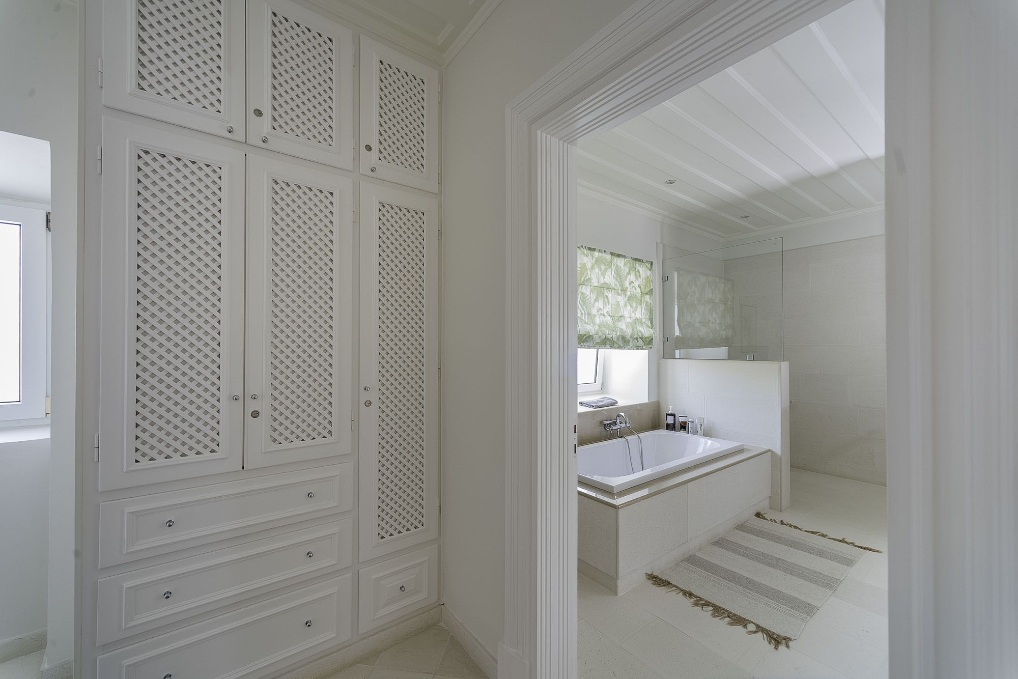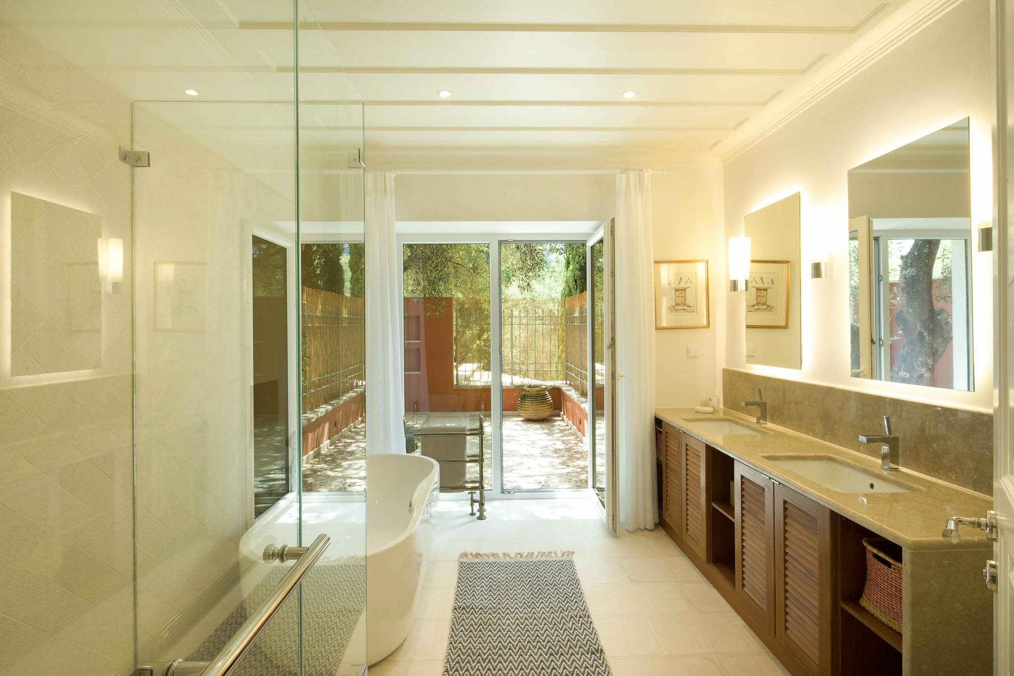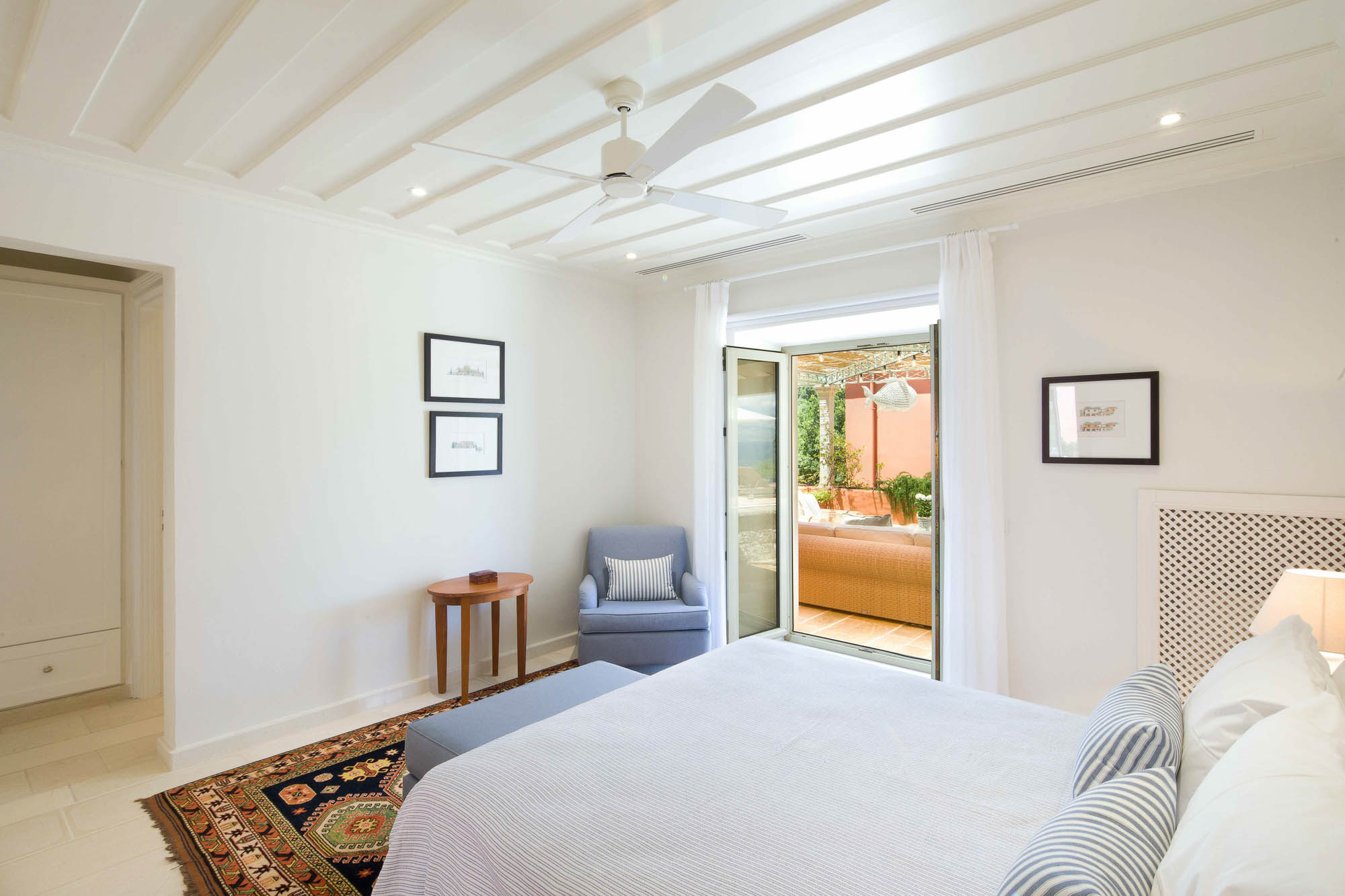 Accommodation is spread across the main house, a four-bedroom guest house and a pool annexe. There’s a large, light-filled sitting room with sliding glass doors on two sides opening to the terrace and a spacious fitted kitchen. All bedrooms are beautifully furnished and ensuite. The master first-floor bedroom also has a dressing room and private balcony; two of the ground-floor bedrooms also have private terraces, one with an outdoor shower.