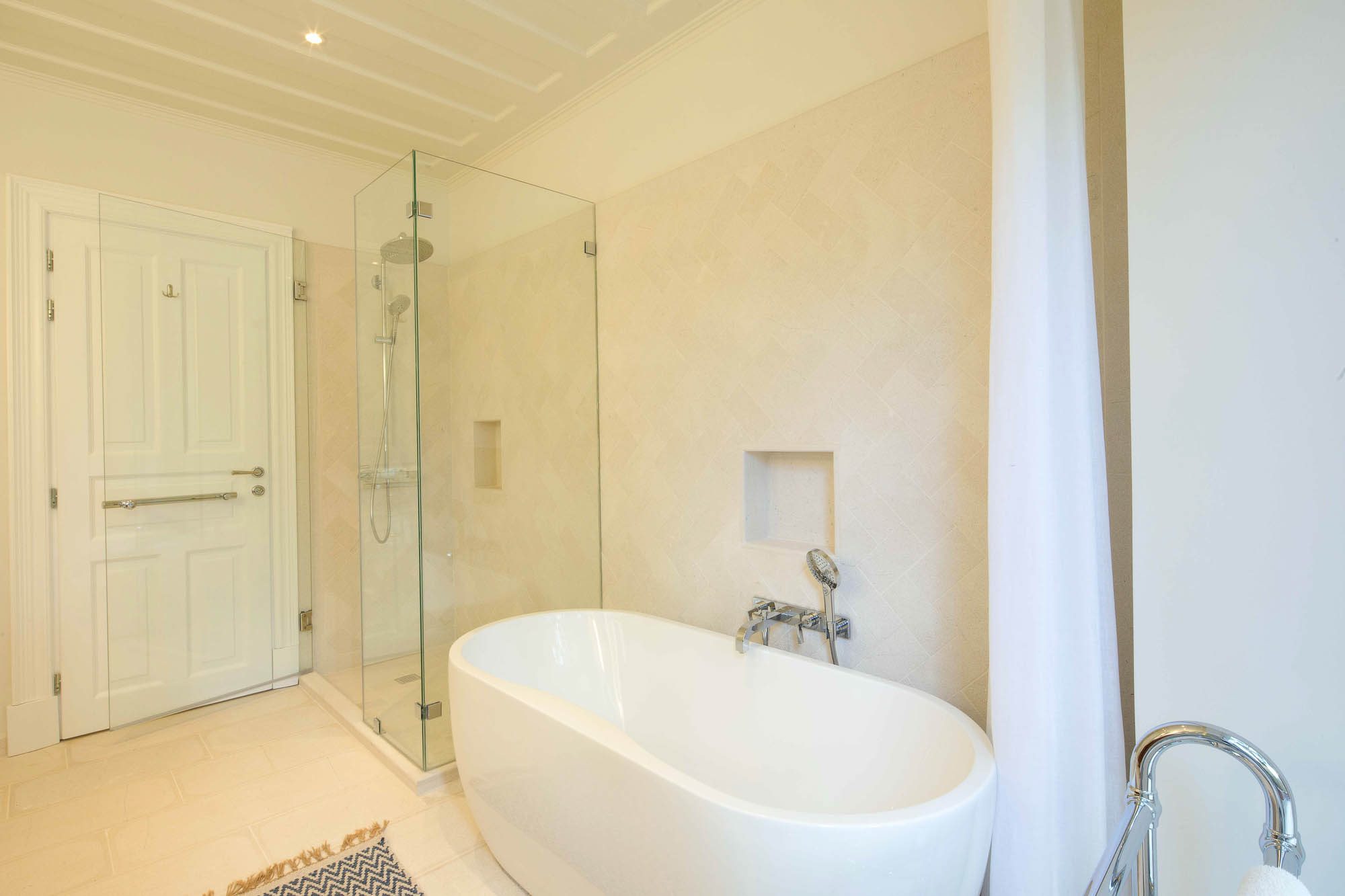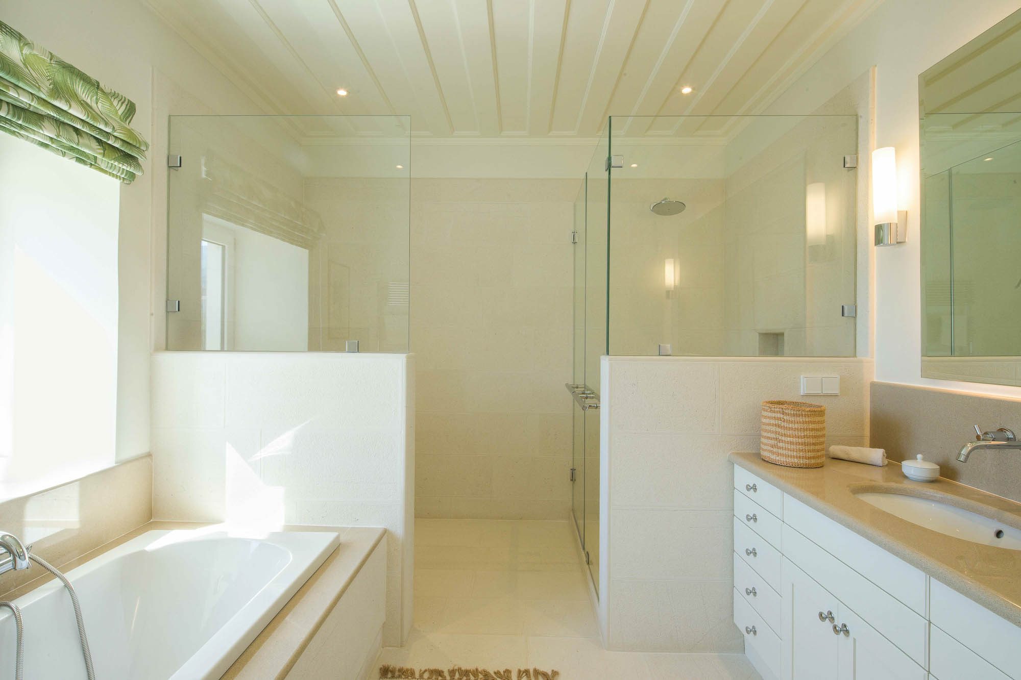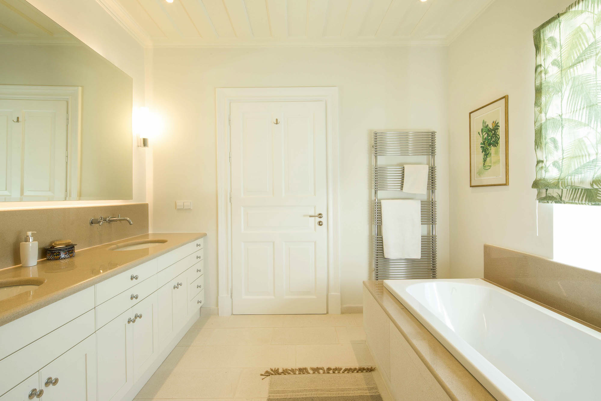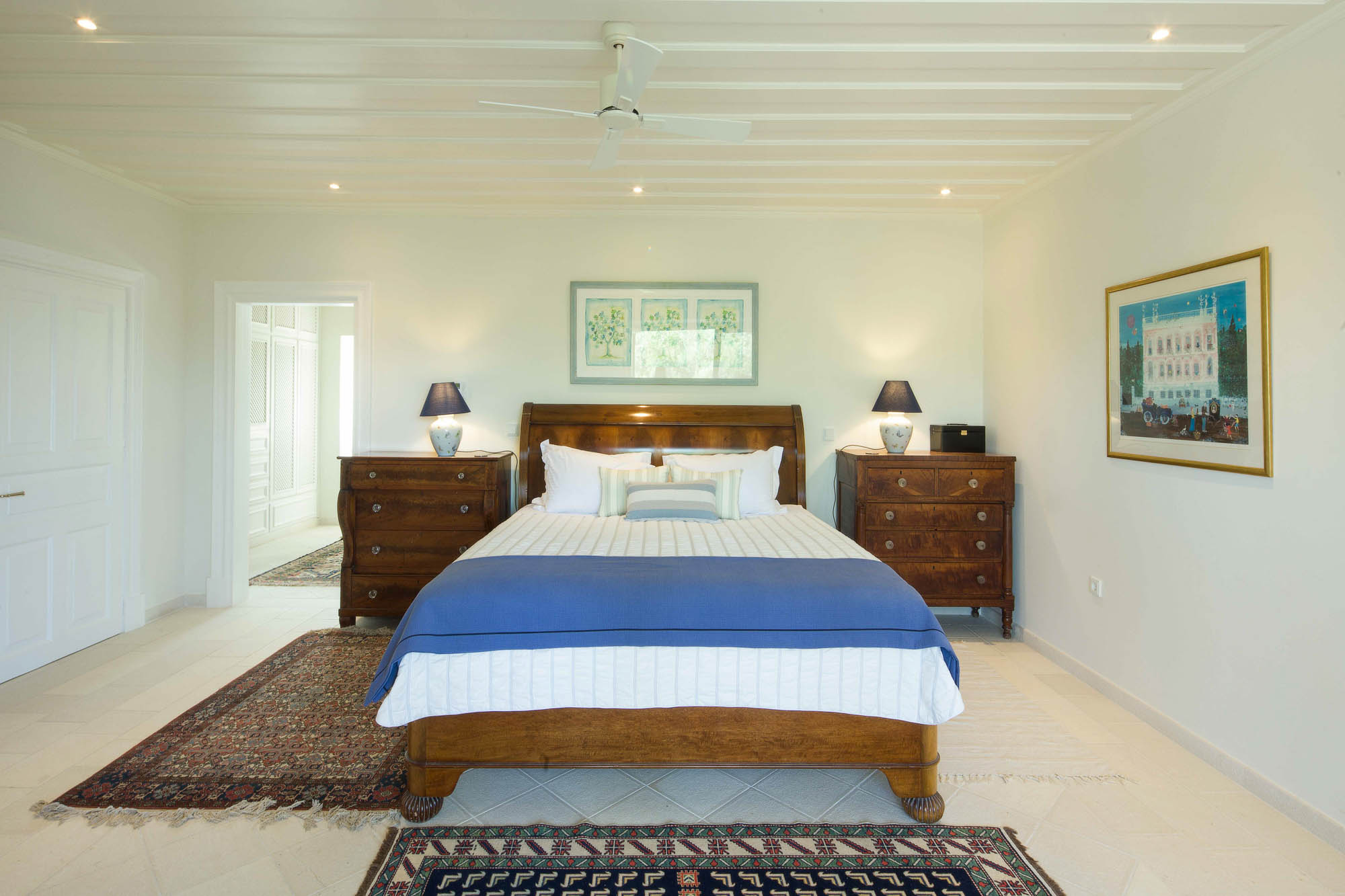 Accommodation is spread across the main house, a four-bedroom guest house and a pool annexe. There’s a large, light-filled sitting room with sliding glass doors on two sides opening to the terrace and a spacious fitted kitchen. All bedrooms are beautifully furnished and ensuite. The master first-floor bedroom also has a dressing room and private balcony; two of the ground-floor bedrooms also have private terraces, one with an outdoor shower.